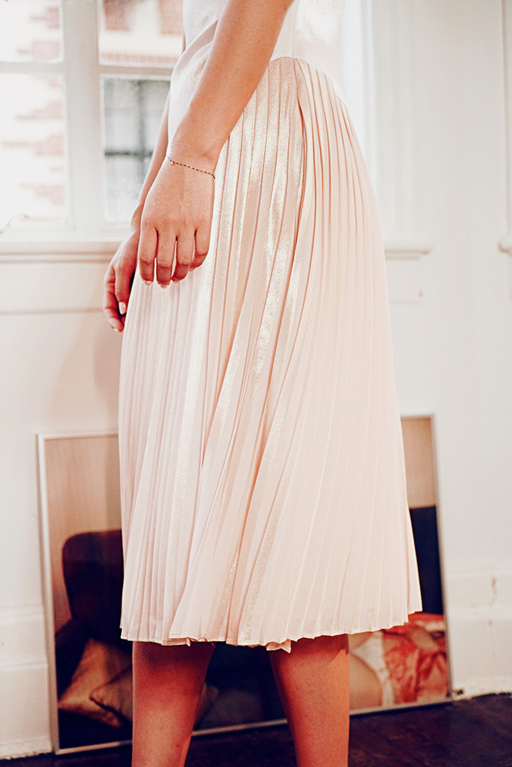 AtelierMissLu / Ursula 裸粉拼白褶皱裙