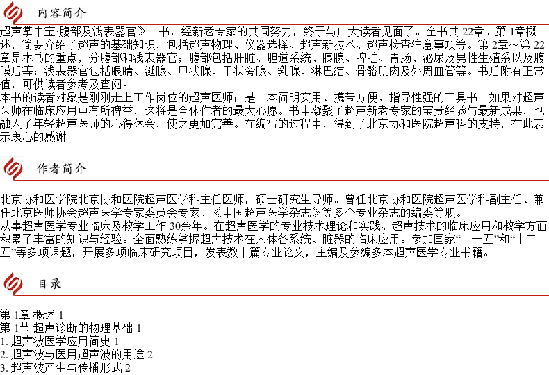 正版包邮超声掌中宝腹部及浅表器官第二版2腹腔疾病超声波诊断人体组织学超声诊断医学医生入门工具书科学技