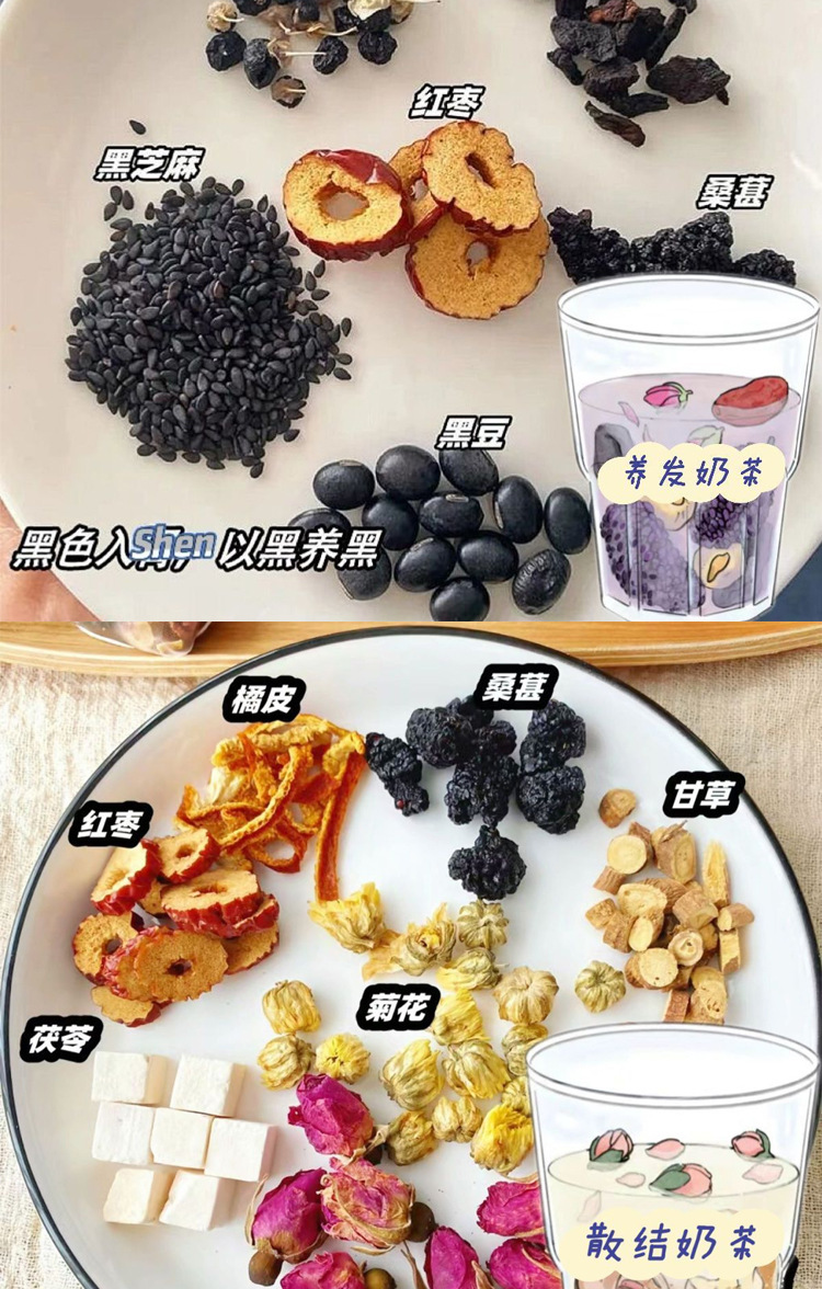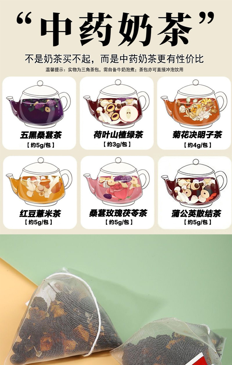【中式奶茶组合】茶五黑茶菊花决明子茶 红豆薏米桑葚玫瑰茯苓养生茶包