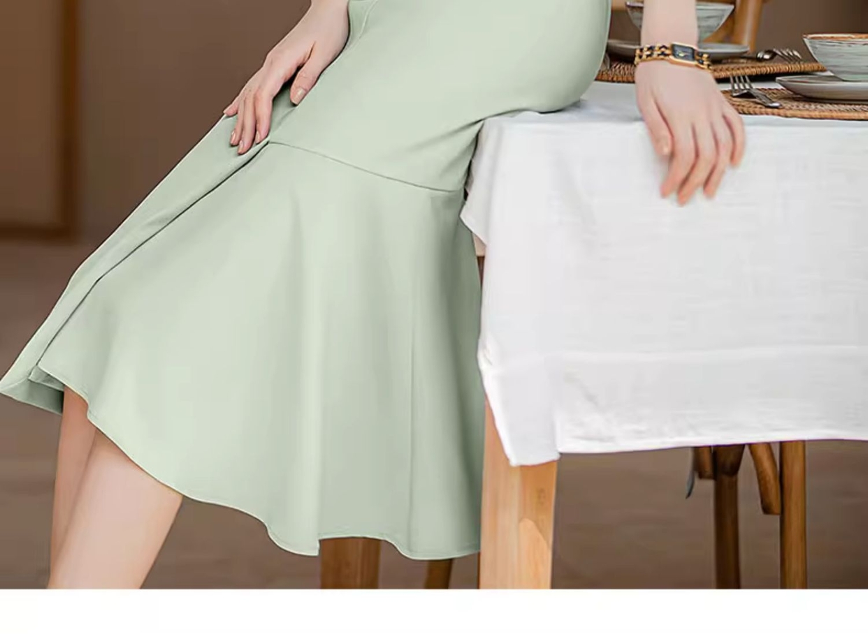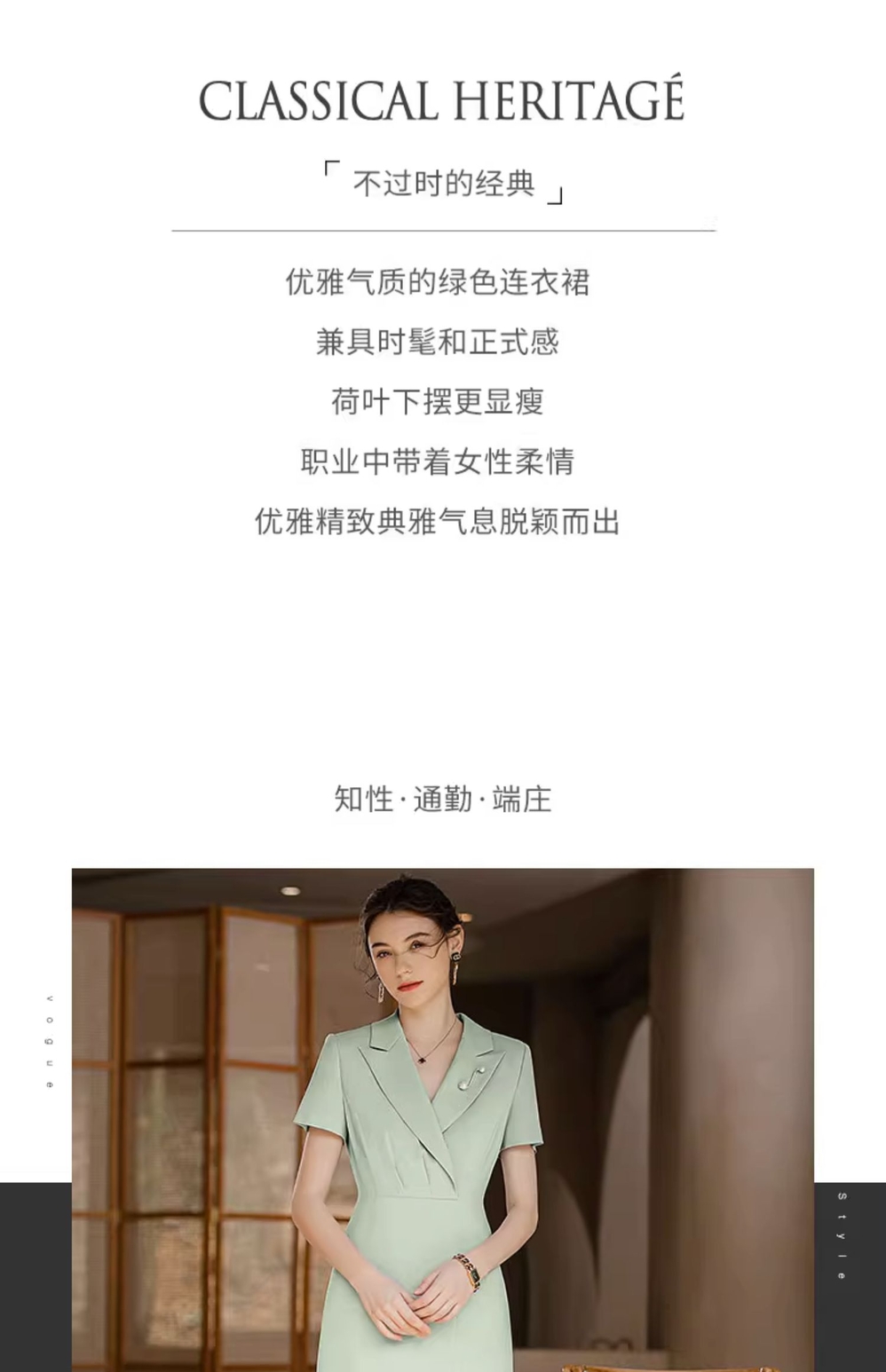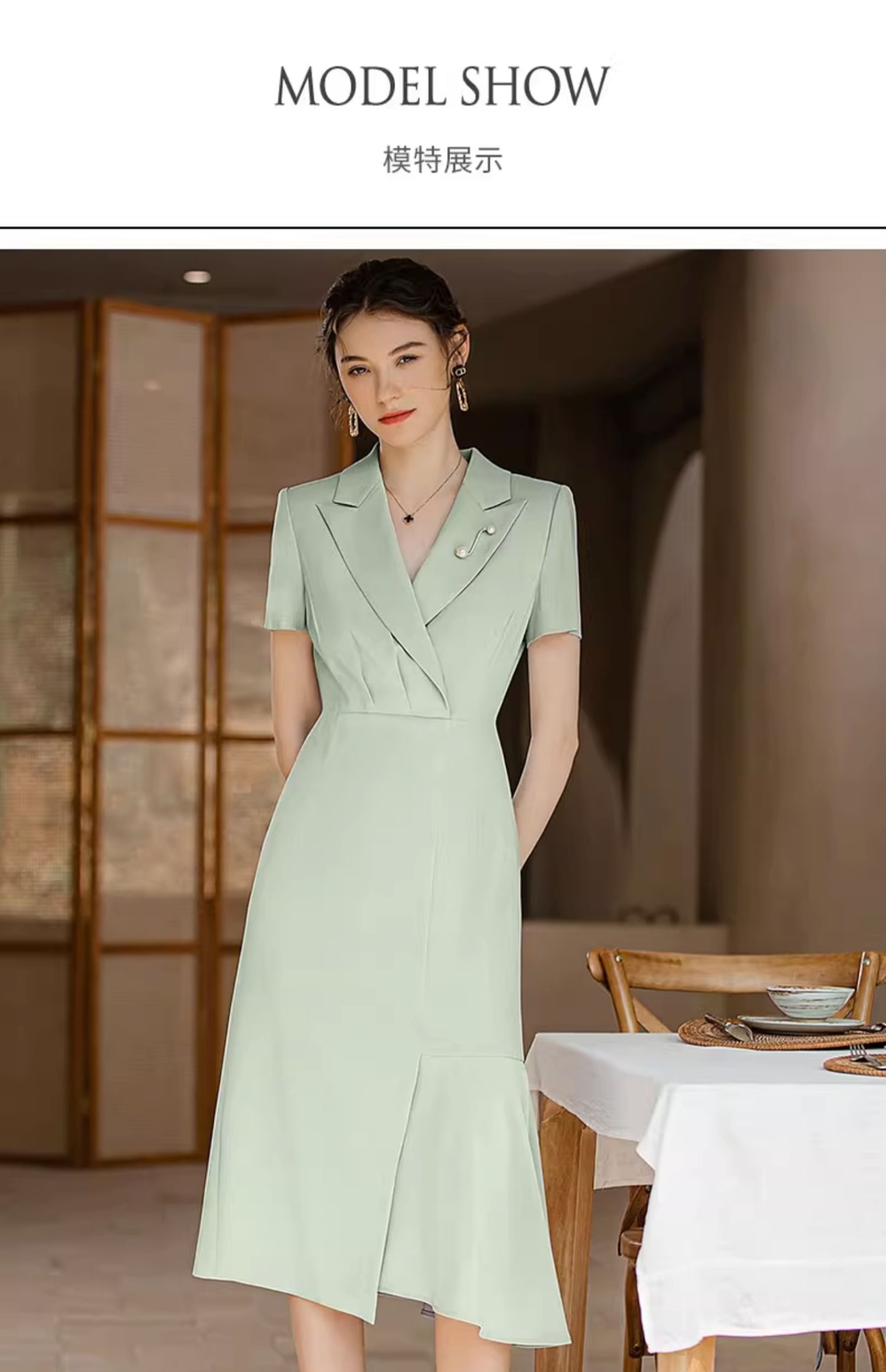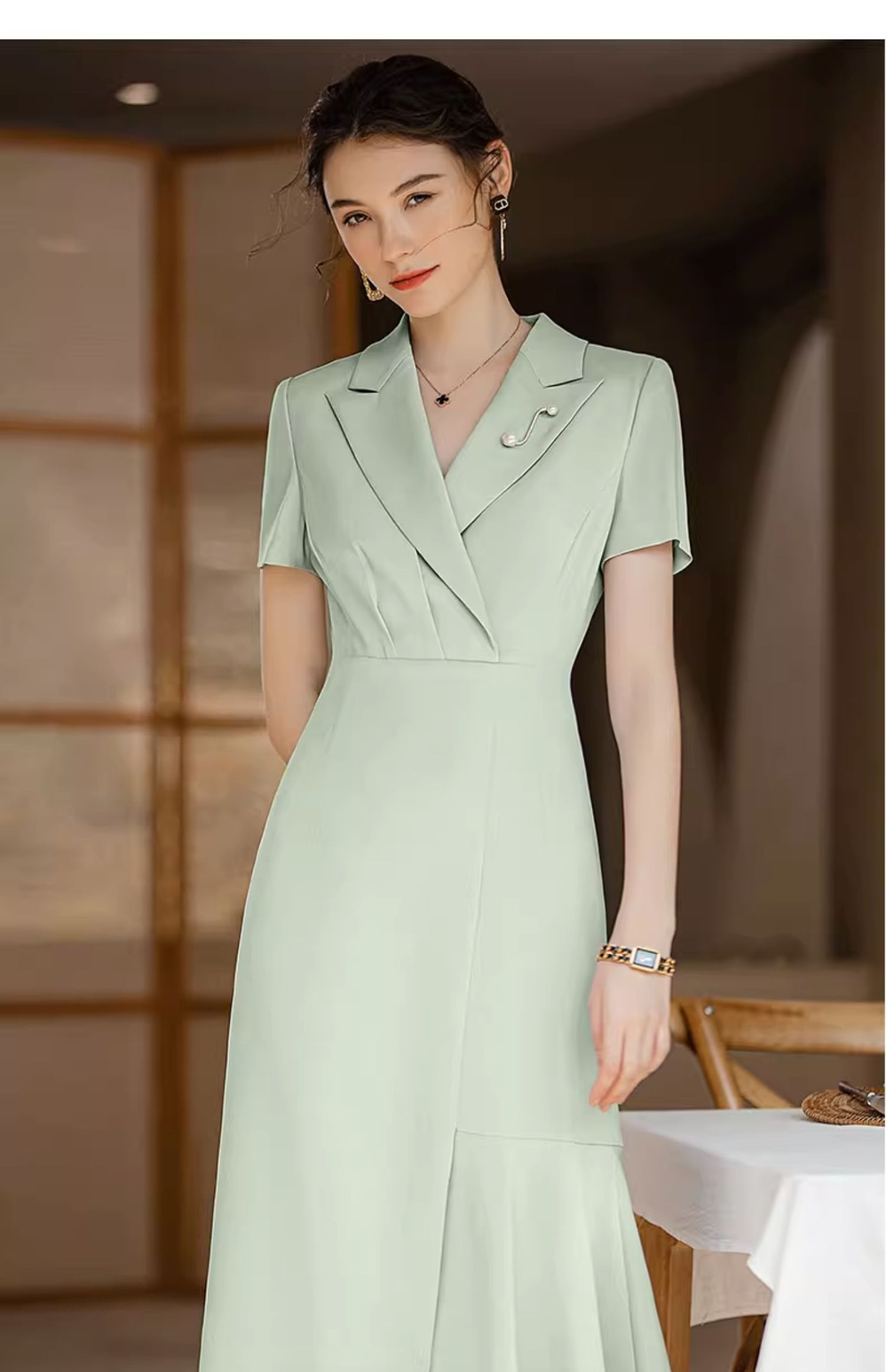 IWY/ 夏季绿色西装连衣裙短袖不规则中长款褶皱小众设计感薄西装裙Q897