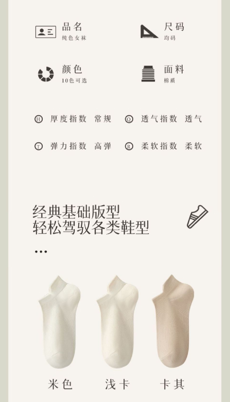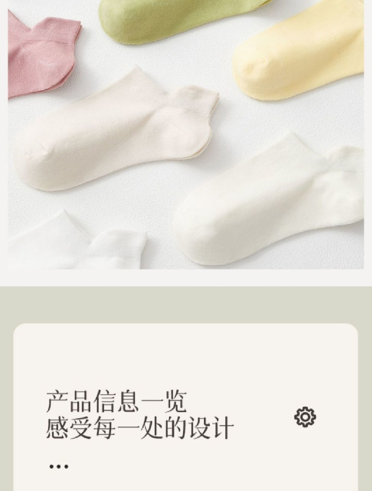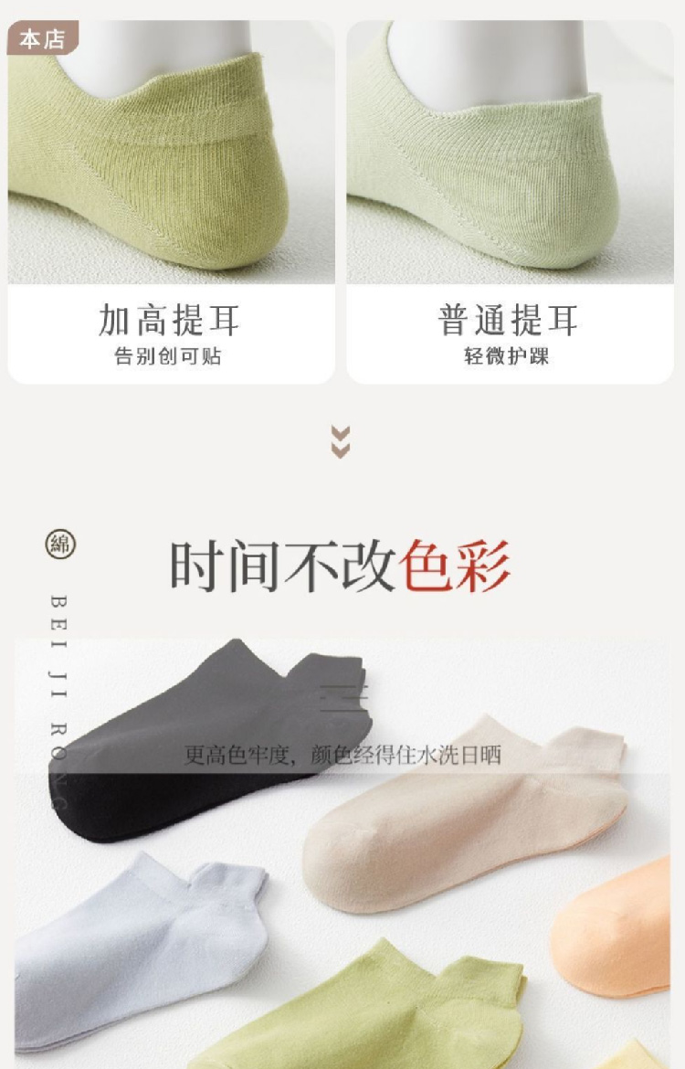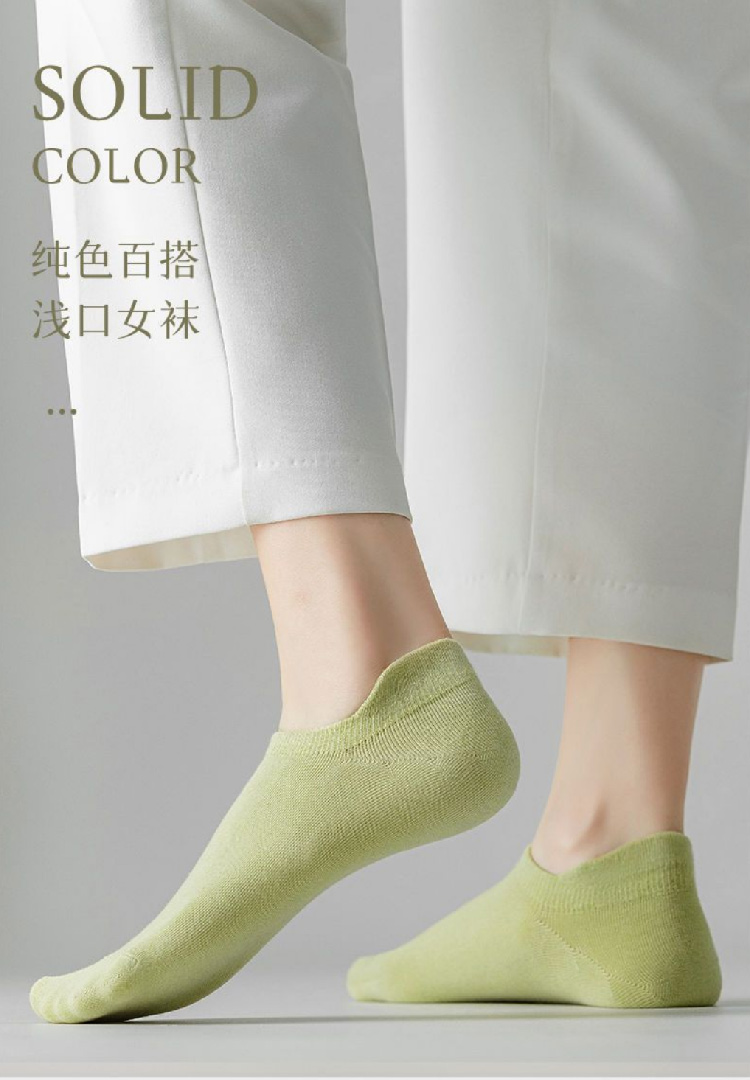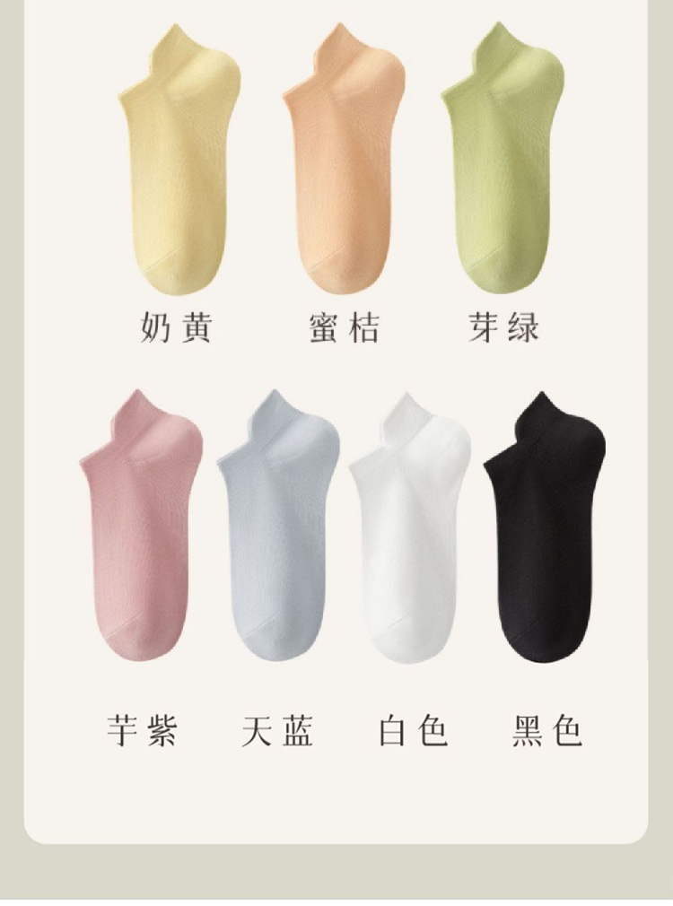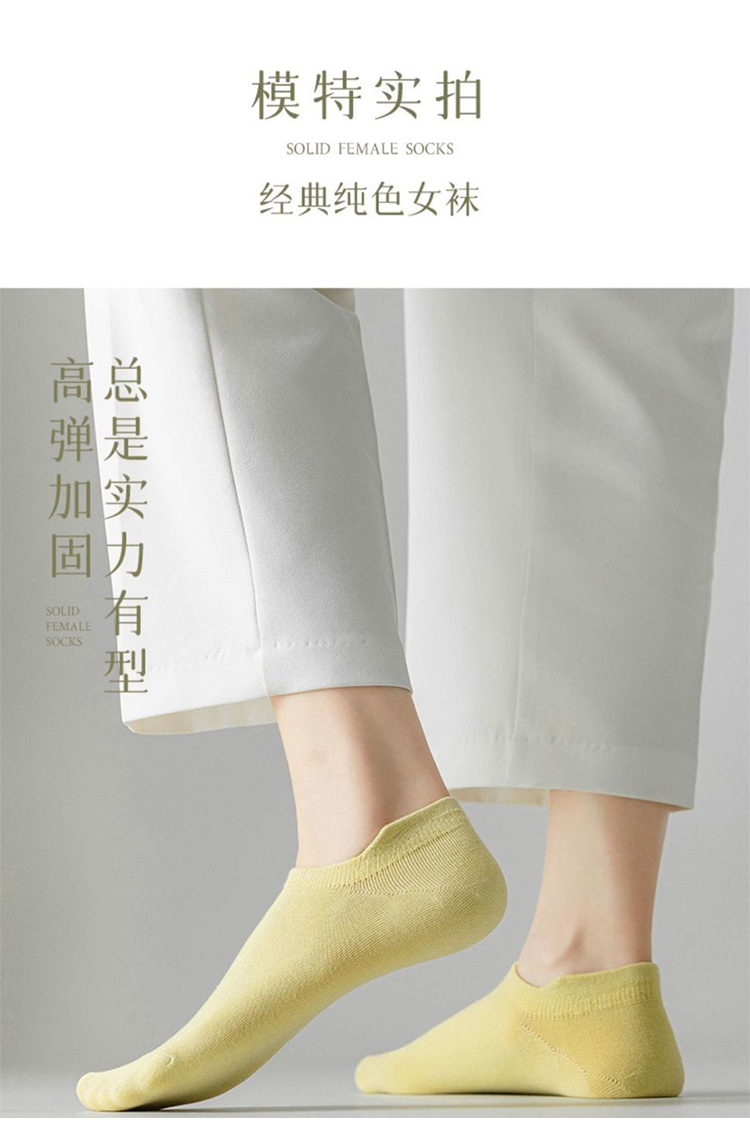 【纯棉短袜5双装】新款船袜夏季薄款纯色女袜 提耳护跟隐形袜休闲短袜