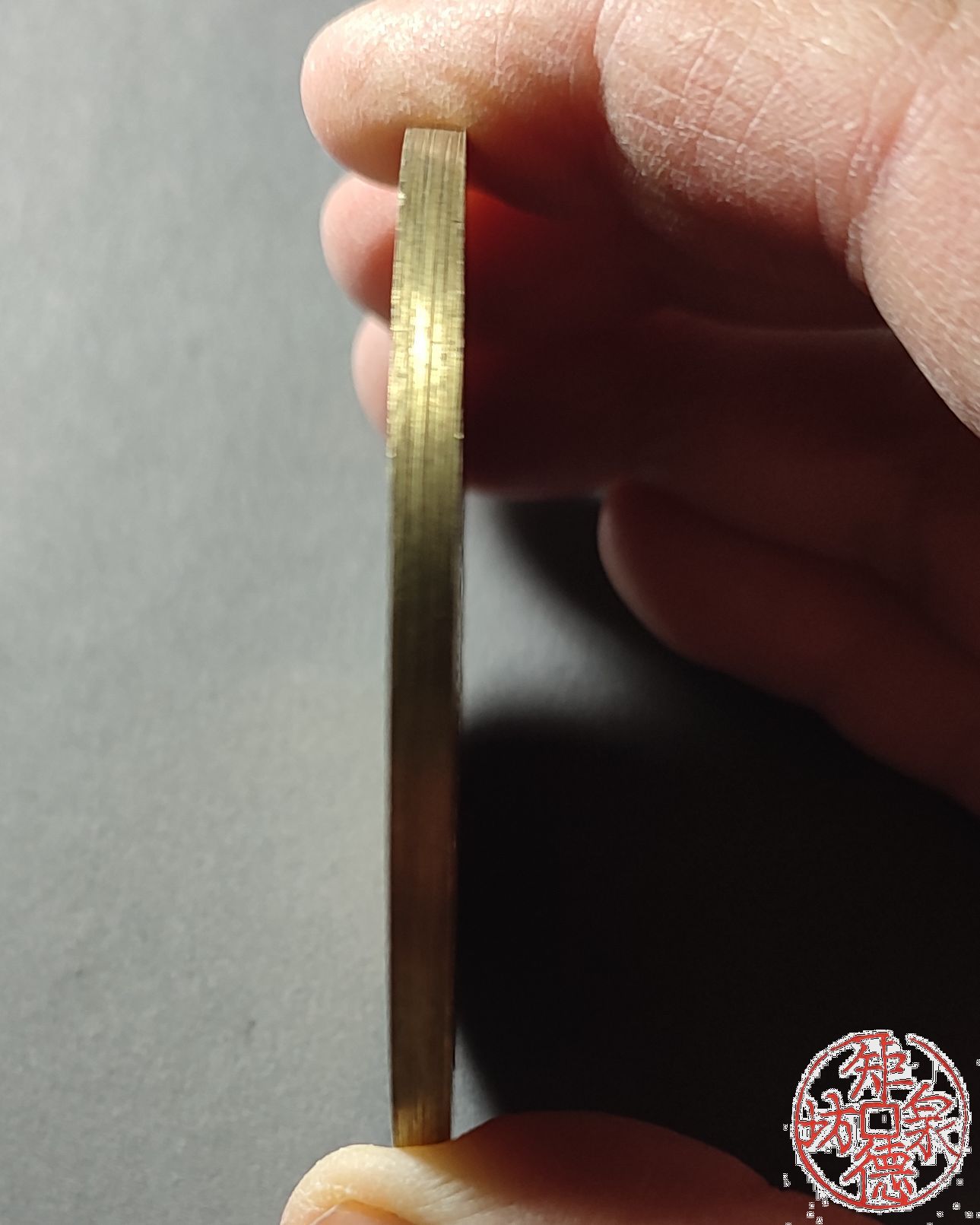为了尽量还原古代钱币的文字神韵与时代铸造特征,每一枚都进行手工修刀、打磨。会有打磨痕迹、刻刀痕迹,铸造气孔或者微小沙眼,这正是手工与机器制作的区别,并非瑕疵。
