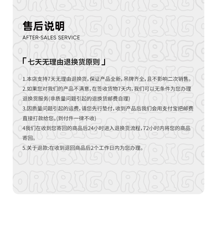 【售后说明】七天无理由退换货原则
