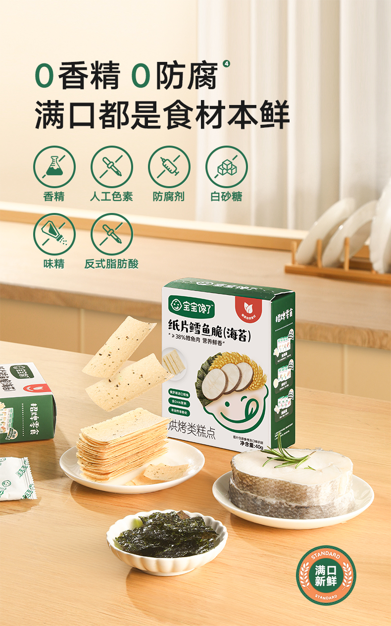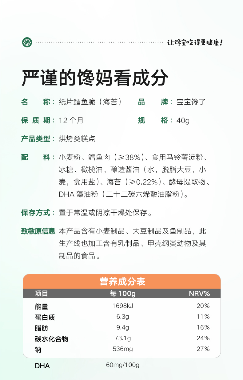 【宝宝馋了】纸片鳕鱼脆(海苔) 非油炸 送12月+婴幼儿食谱
