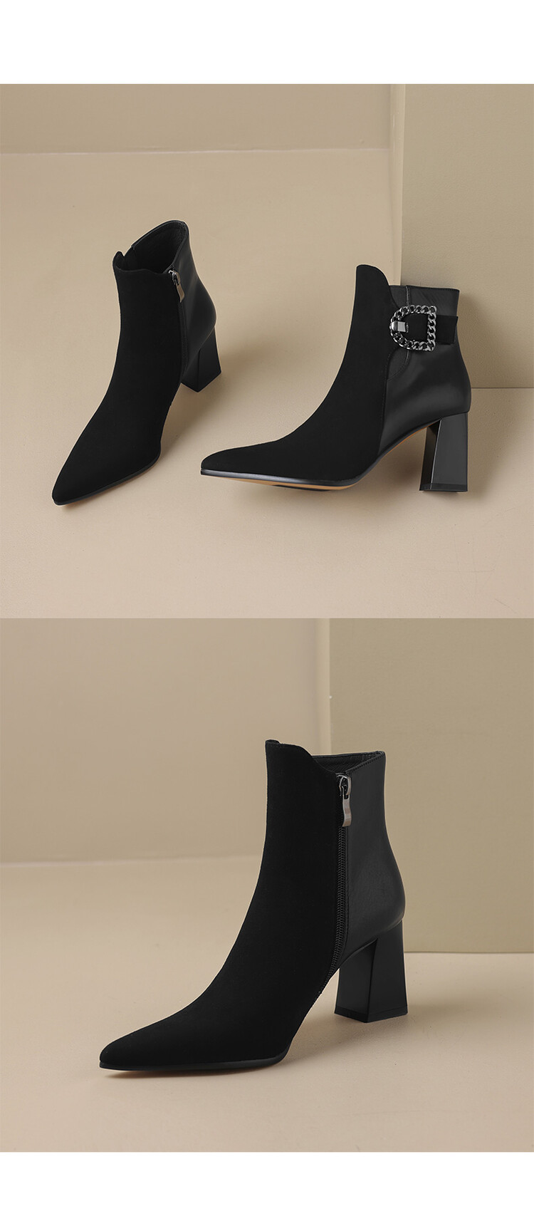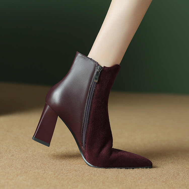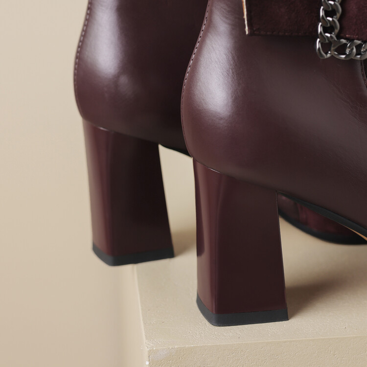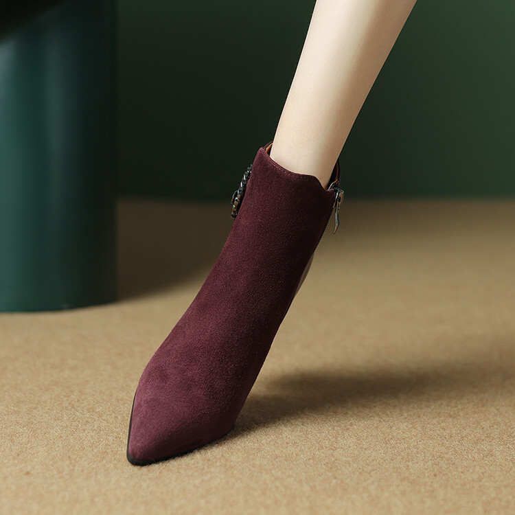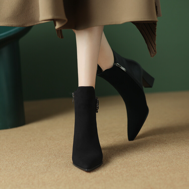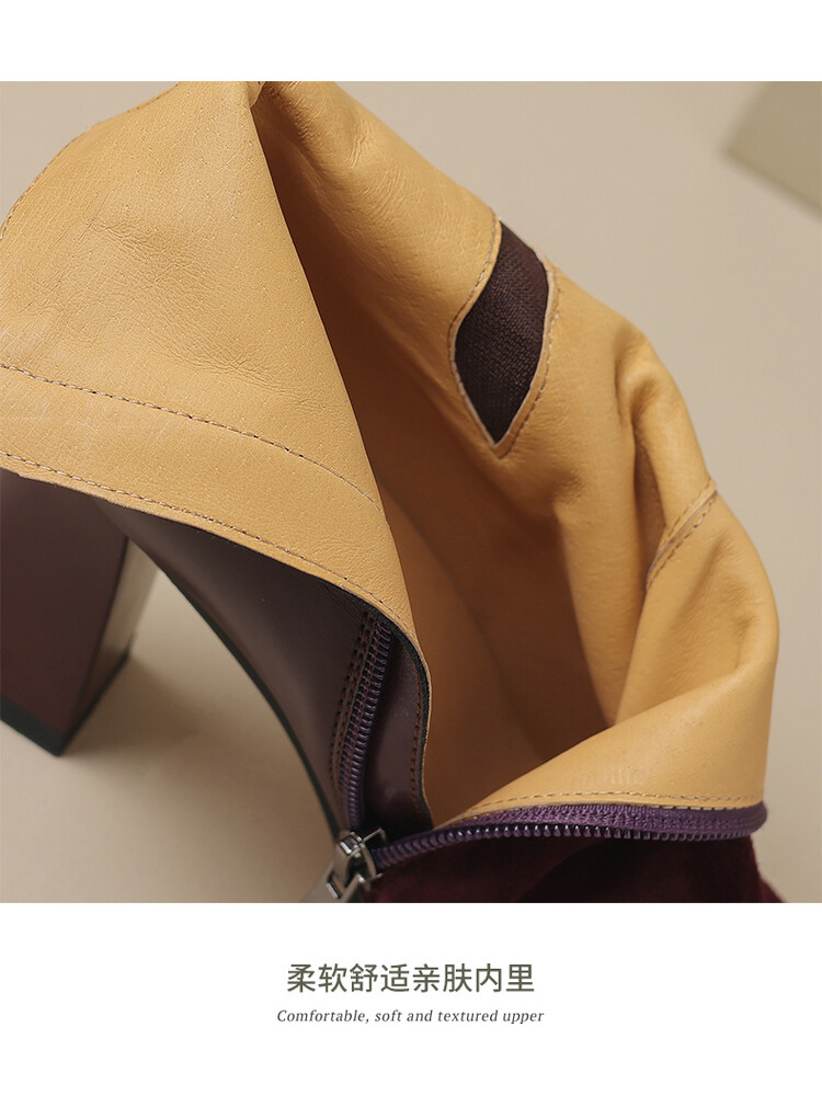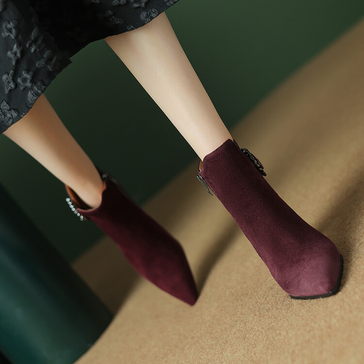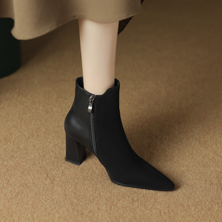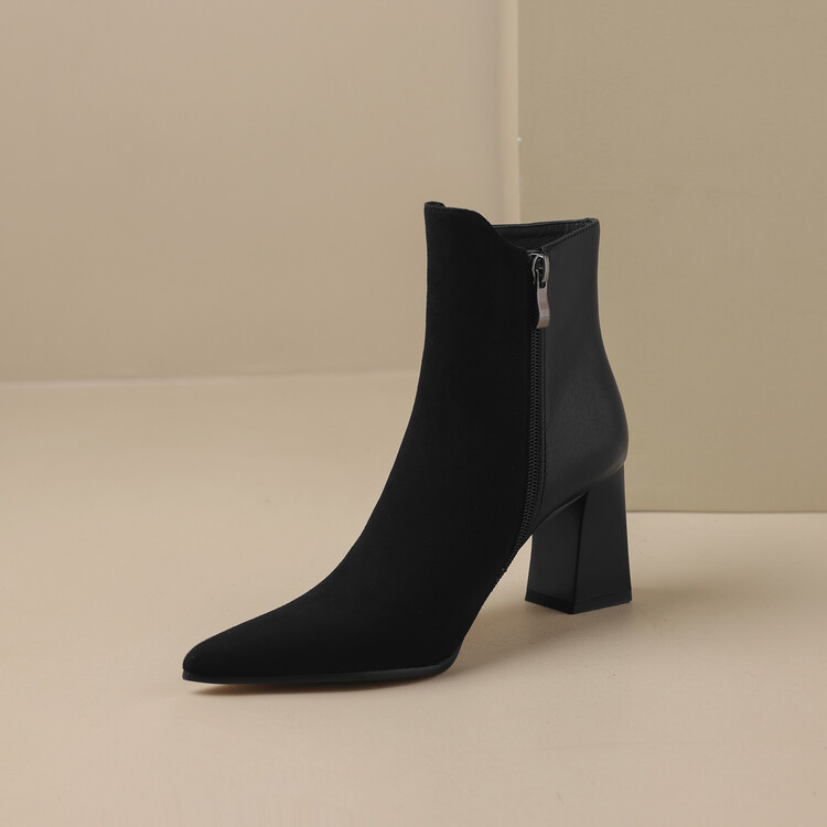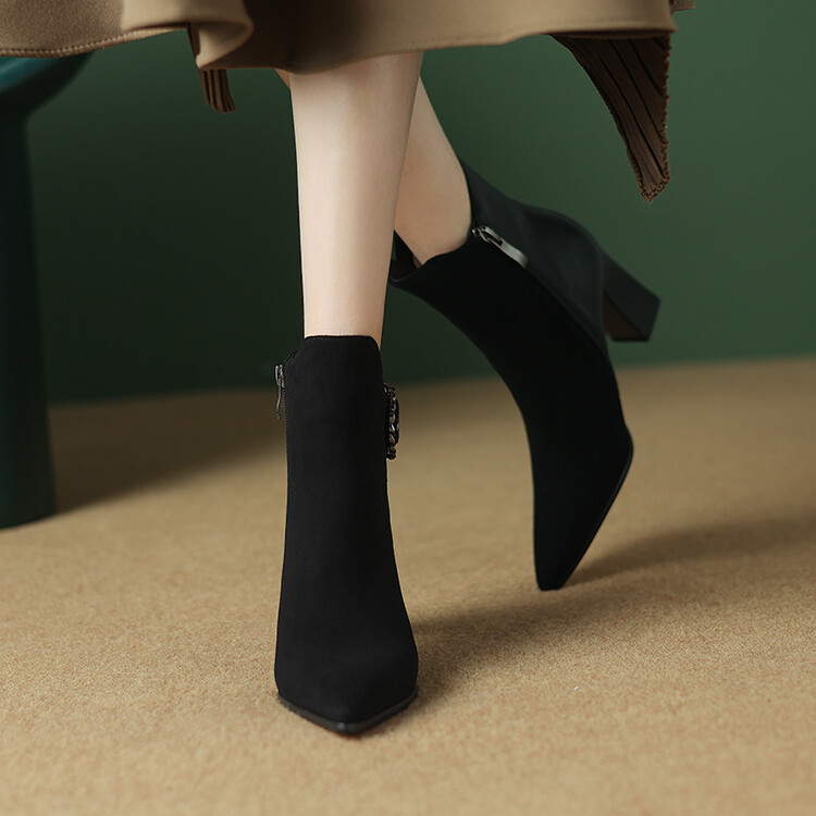尖头拼接,复古皮带扣高粗跟短靴ZF3808
