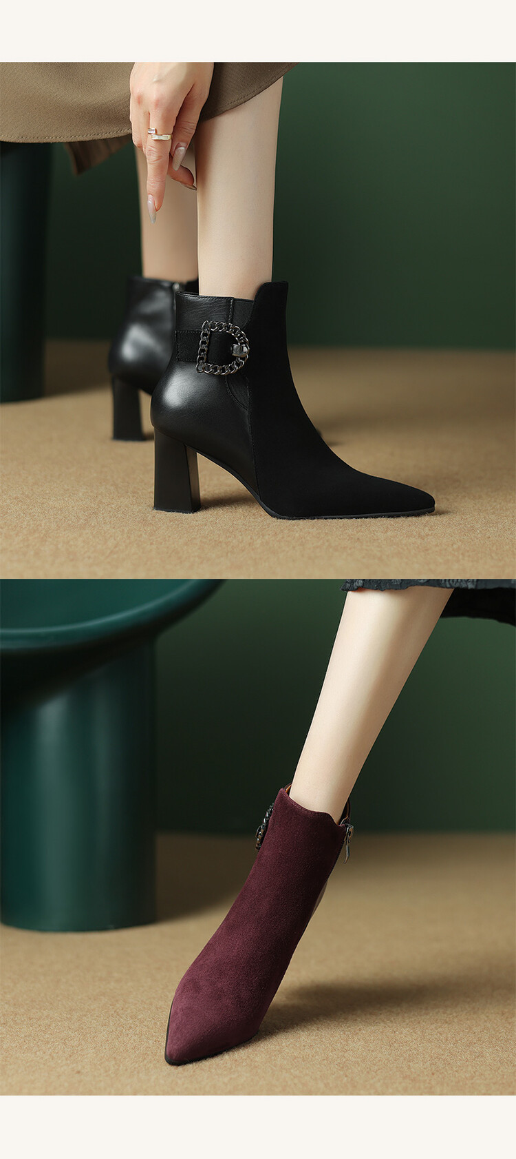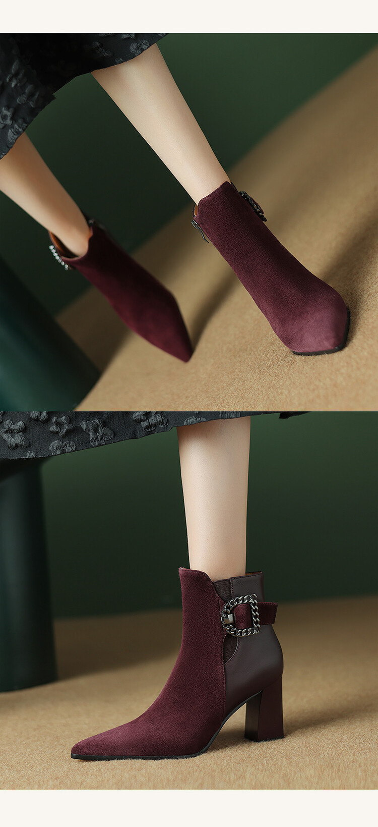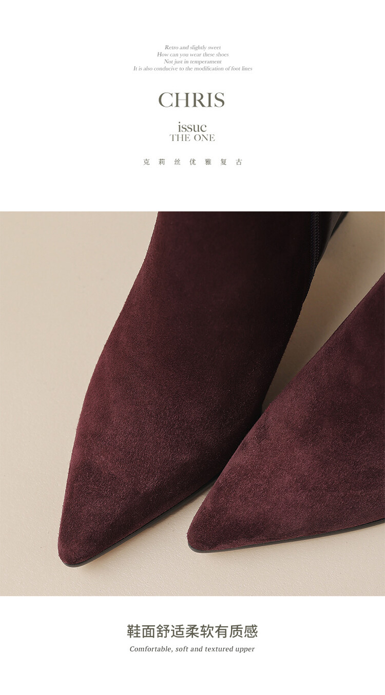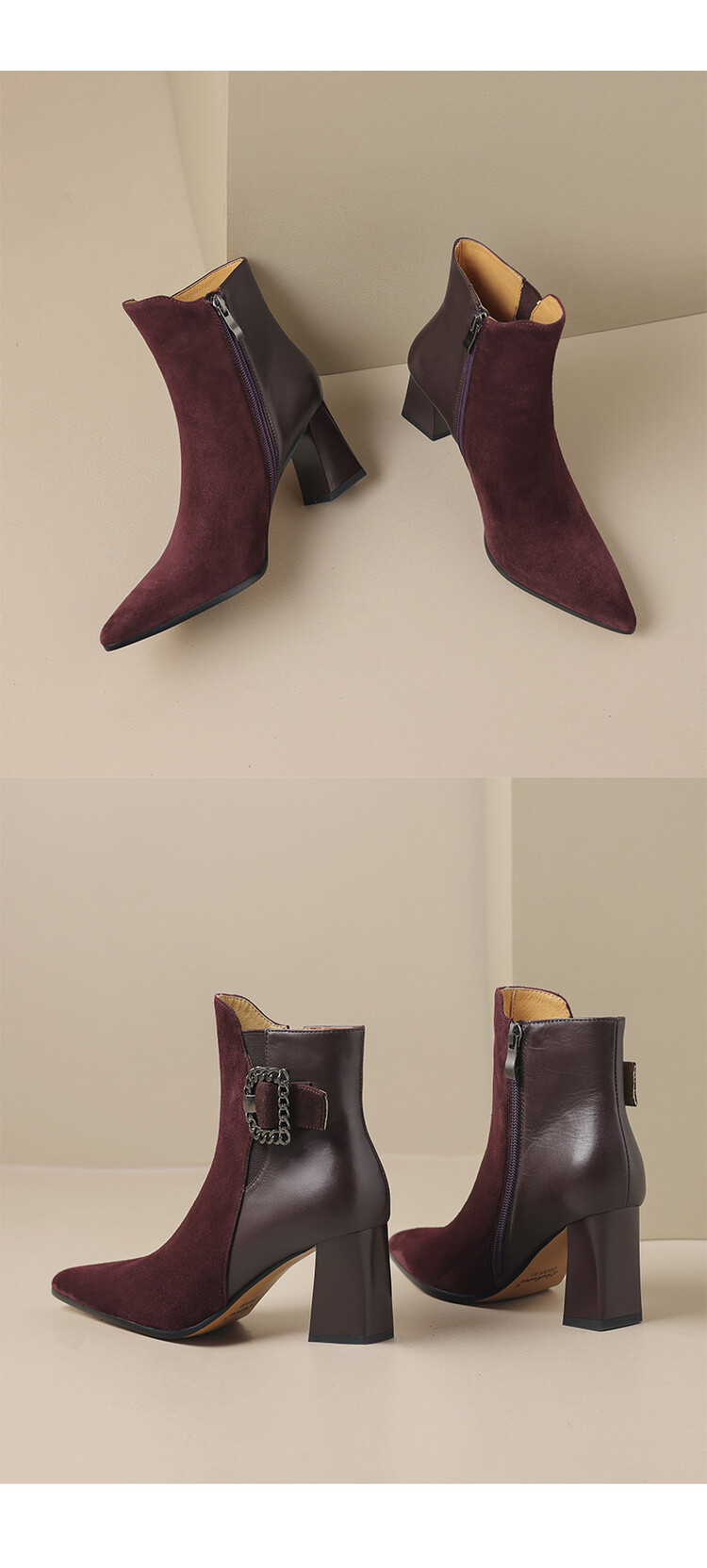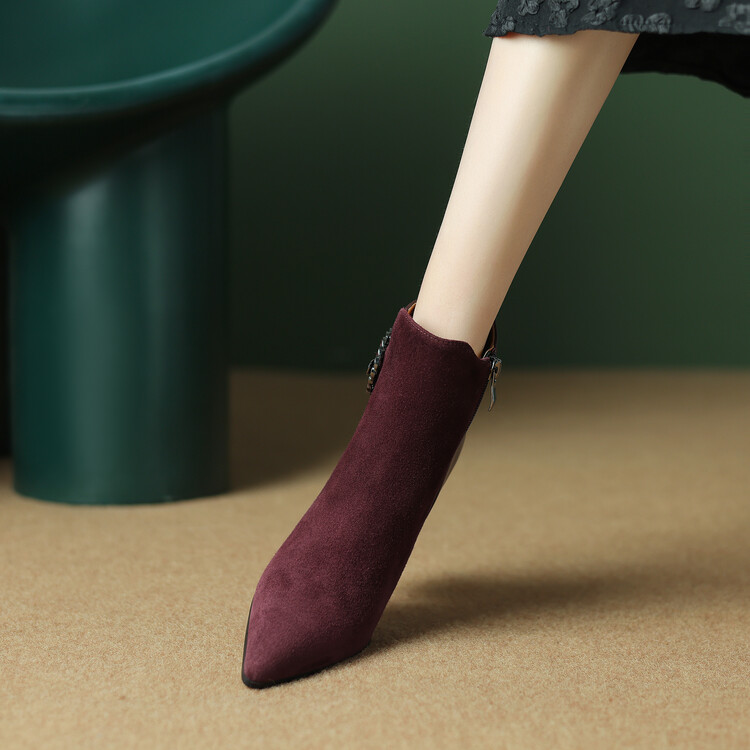 尖头拼接,复古皮带扣高粗跟短靴ZF3808
