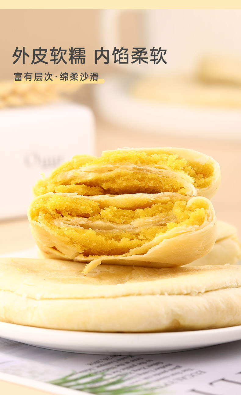 3.入口绵细香甜,外皮口感软糯酥香,内馅饱满丰富,夫添加香精、色素、防腐剂