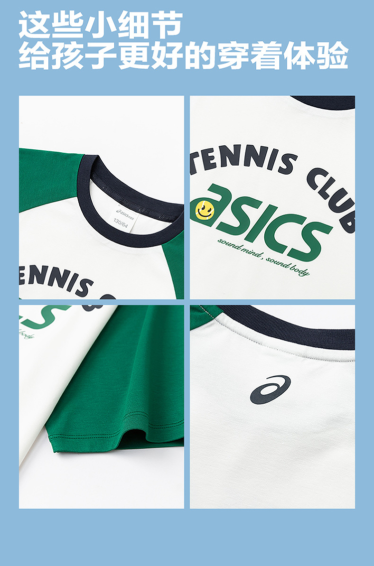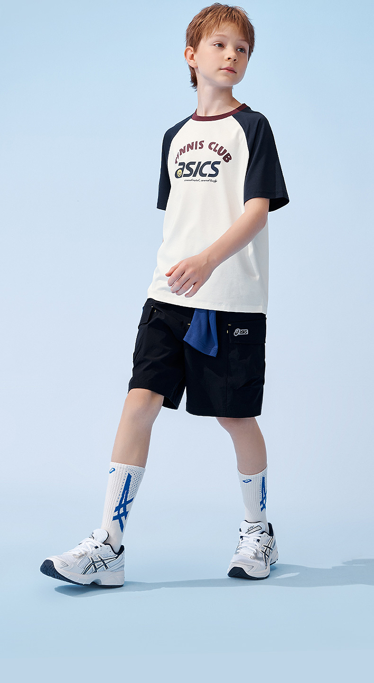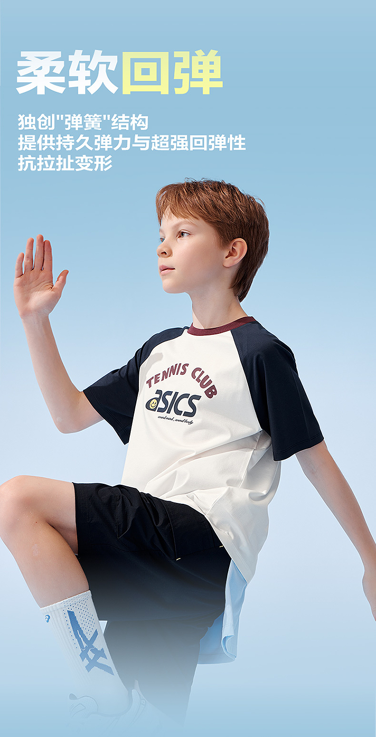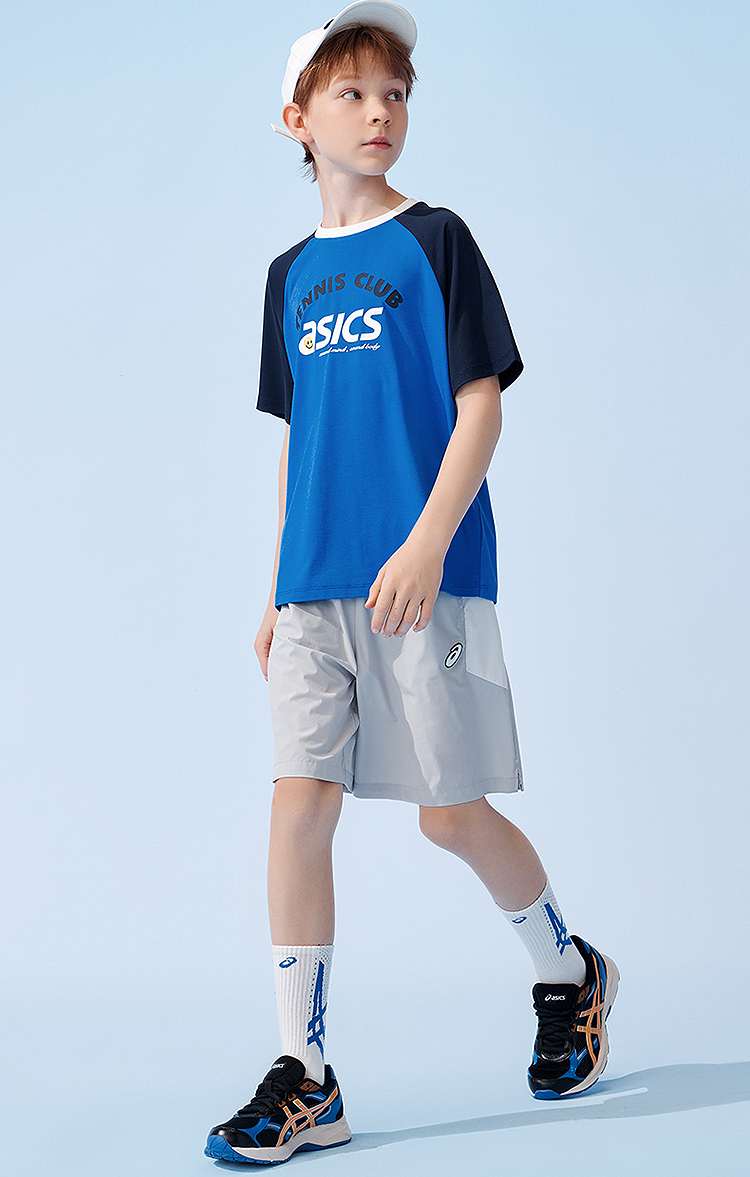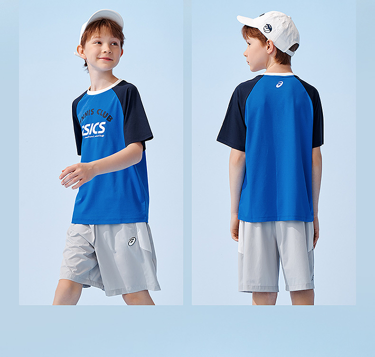 ASICS亚瑟士童装25年夏季新款吸湿抗菌运动插肩袖落肩印花短袖T恤
