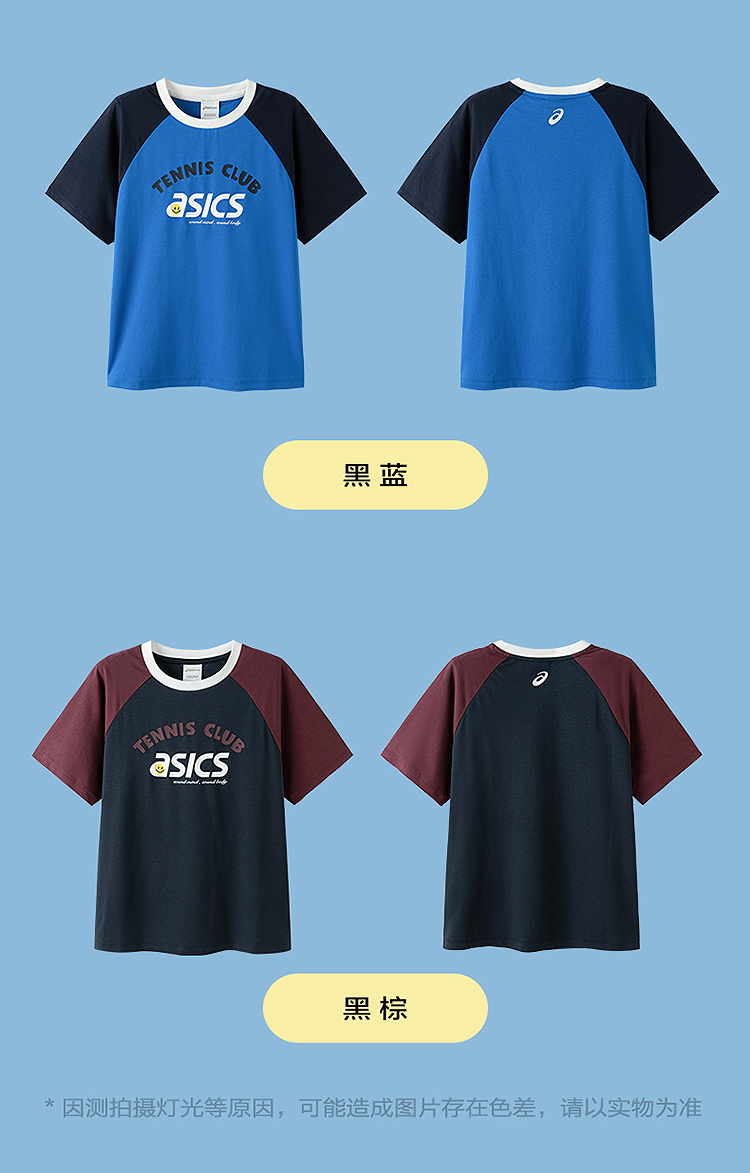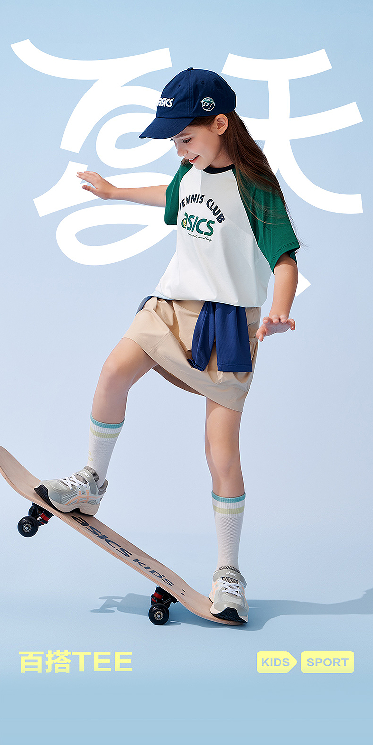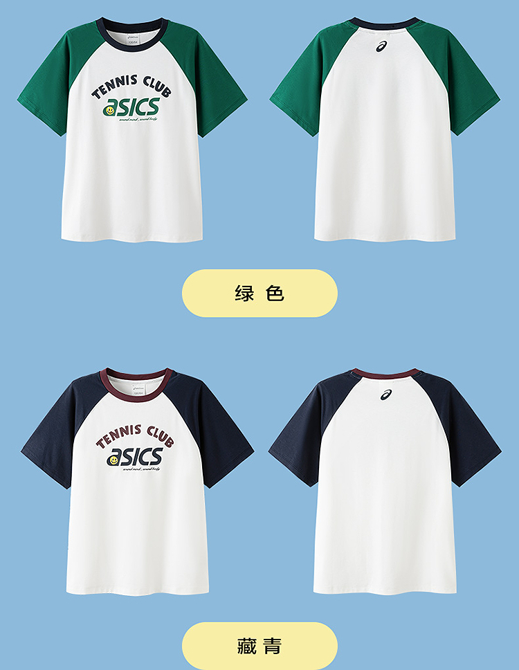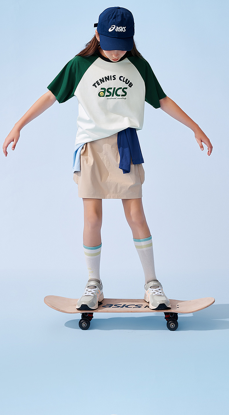 ASICS亚瑟士童装25年夏季新款吸湿抗菌运动插肩袖落肩印花短袖T恤