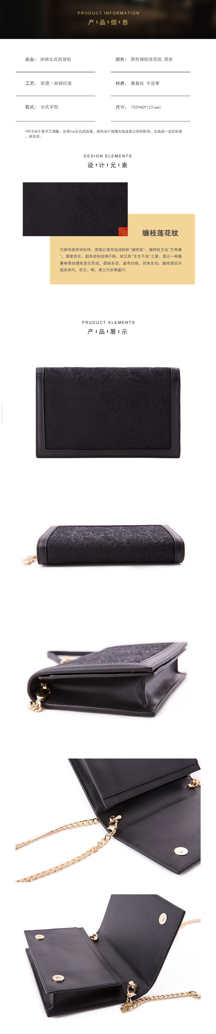 SAINTJOY/上久楷 宋锦女式斜背包 黑色缠枝莲花纹.黑色 BWS18A2801