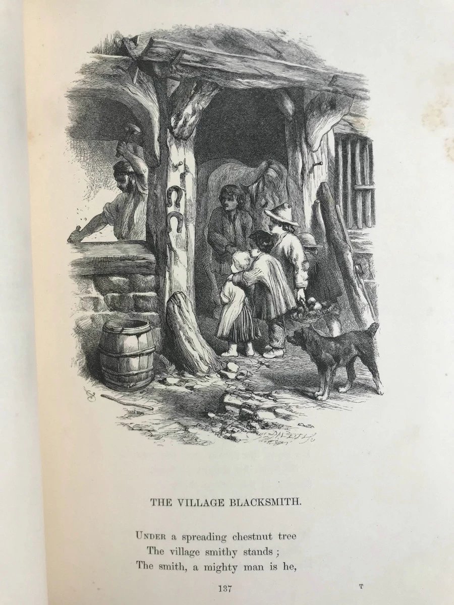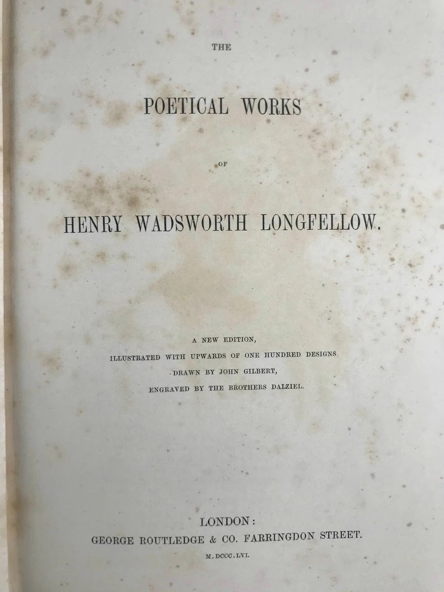 1856年 朗费罗诗集 吉尔伯特与丹泽尔兄弟百余幅版画插图 全真皮精装大32开