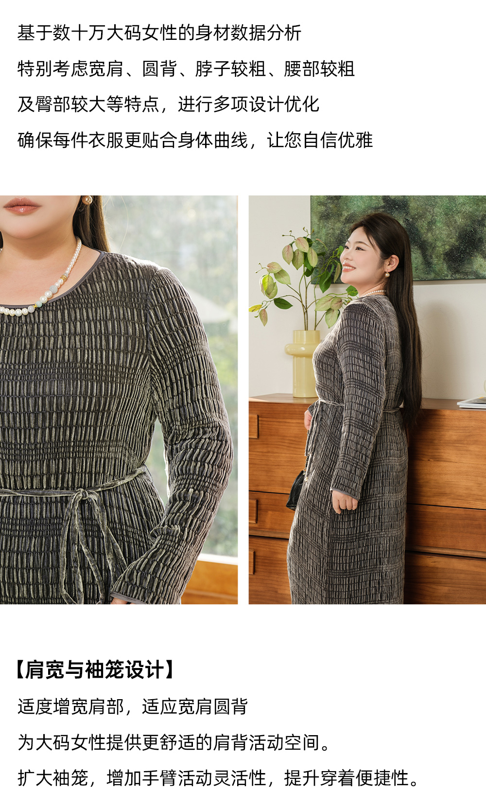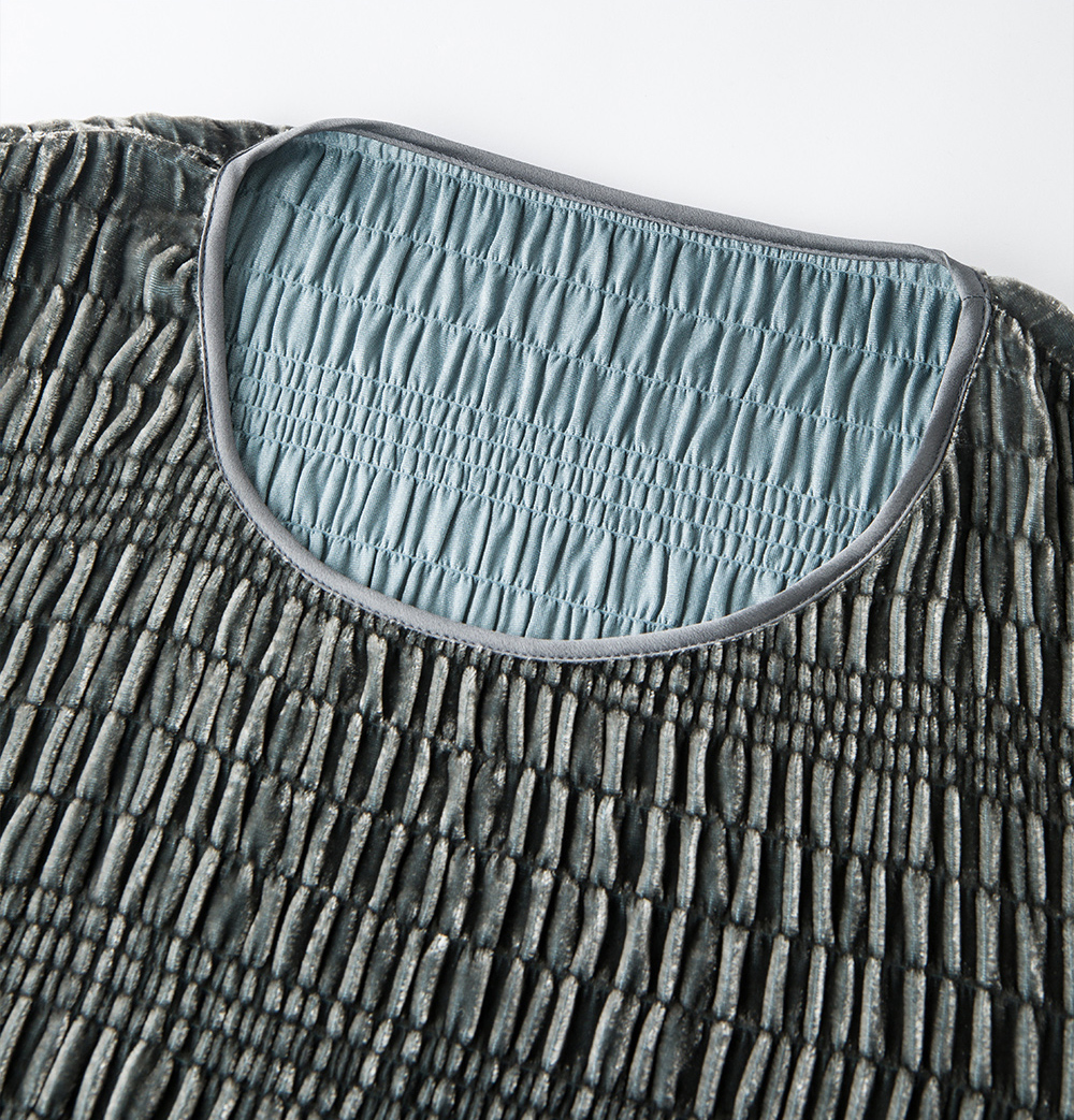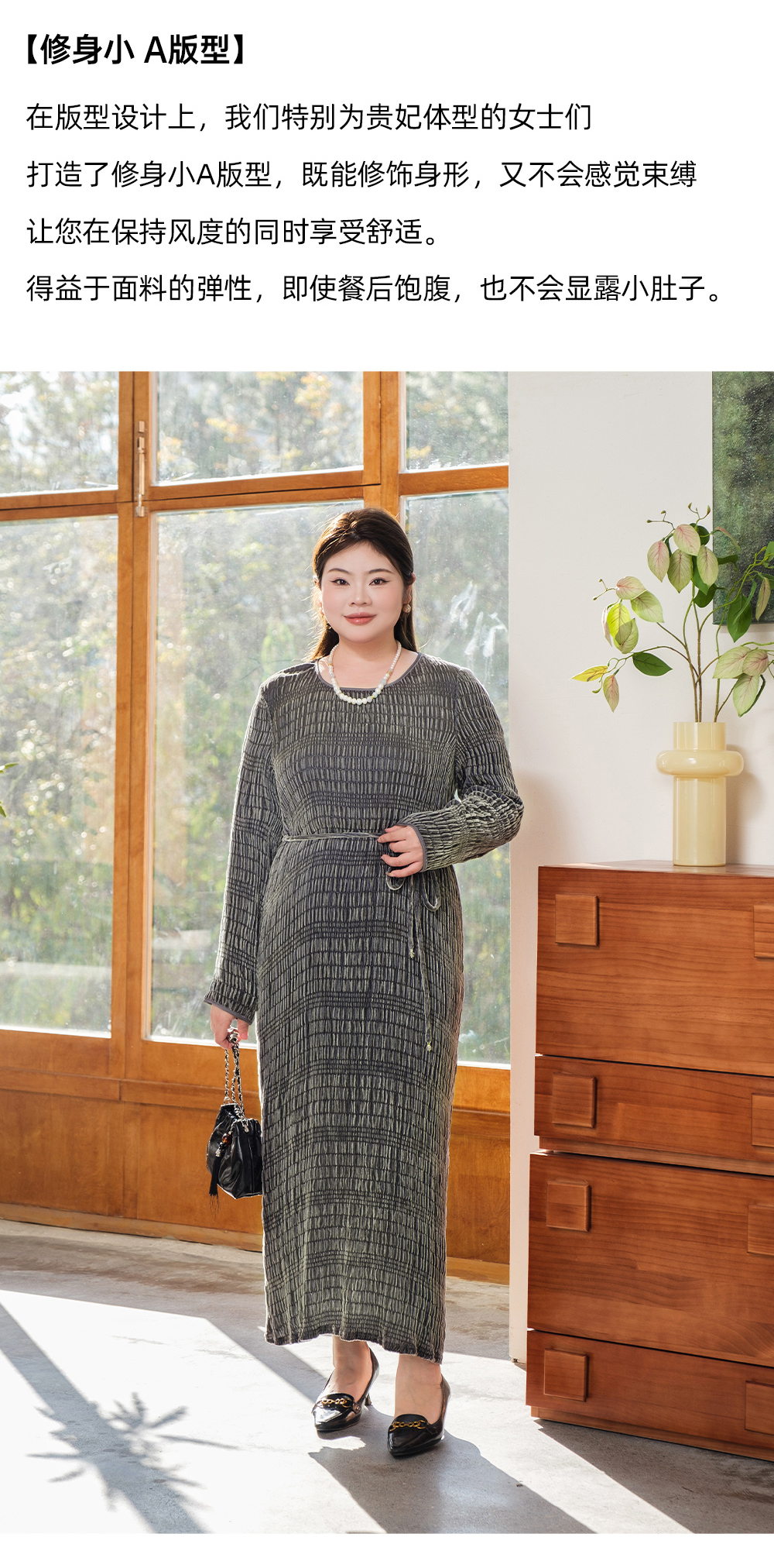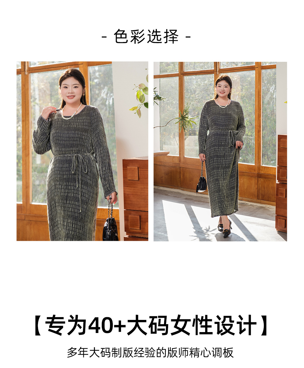 【真丝泡泡绒连衣裙】美丽客栈秋冬新款高级感长袖圆领连衣裙女大码女装