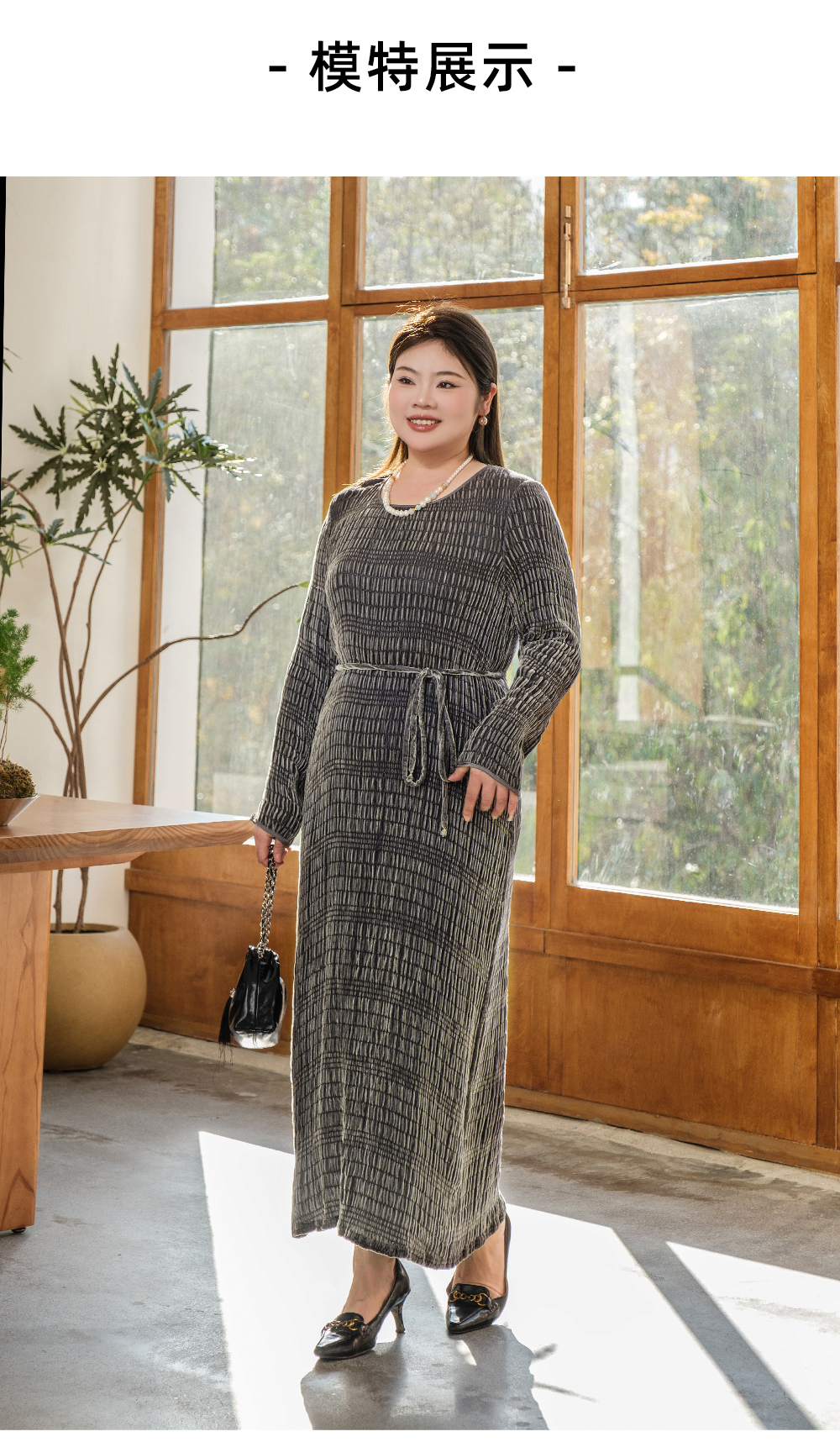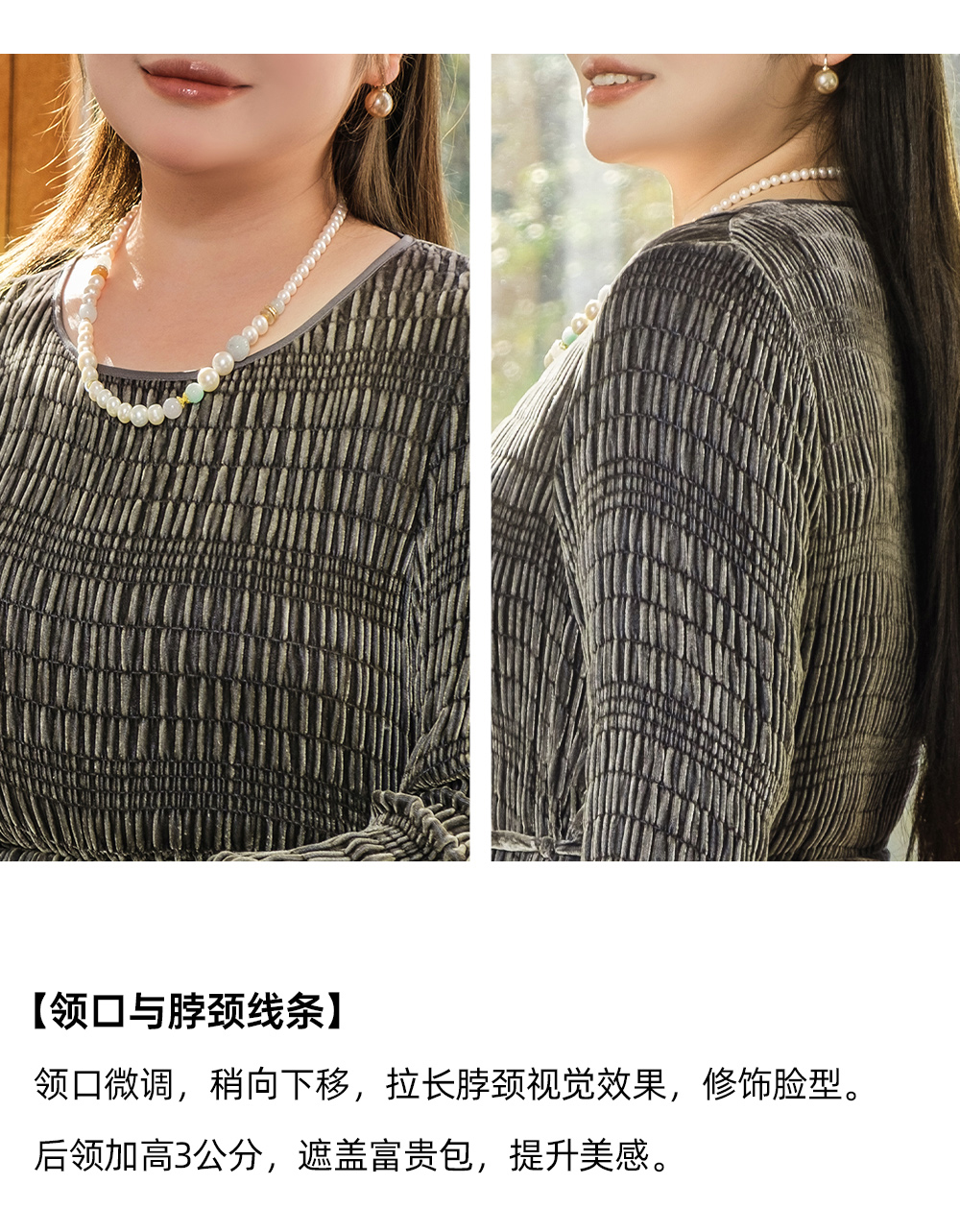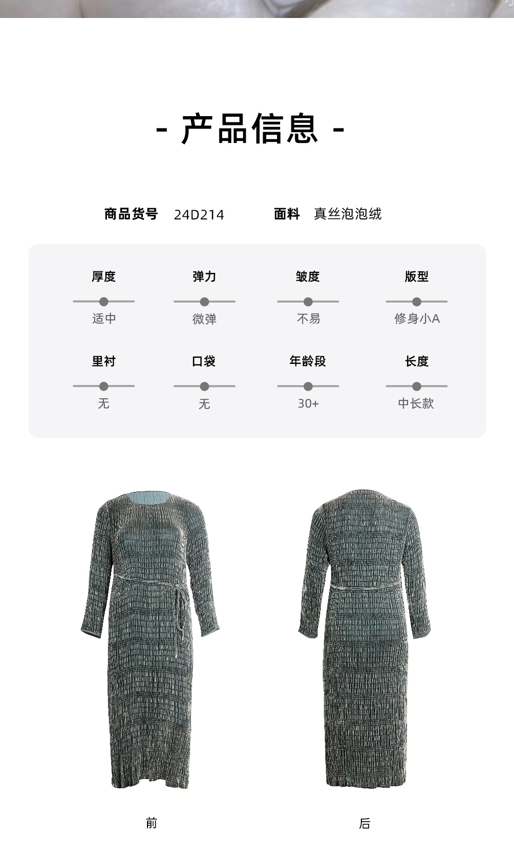 【真丝泡泡绒连衣裙】美丽客栈秋冬新款高级感长袖圆领连衣裙女大码女装