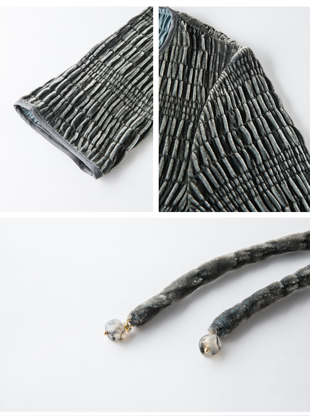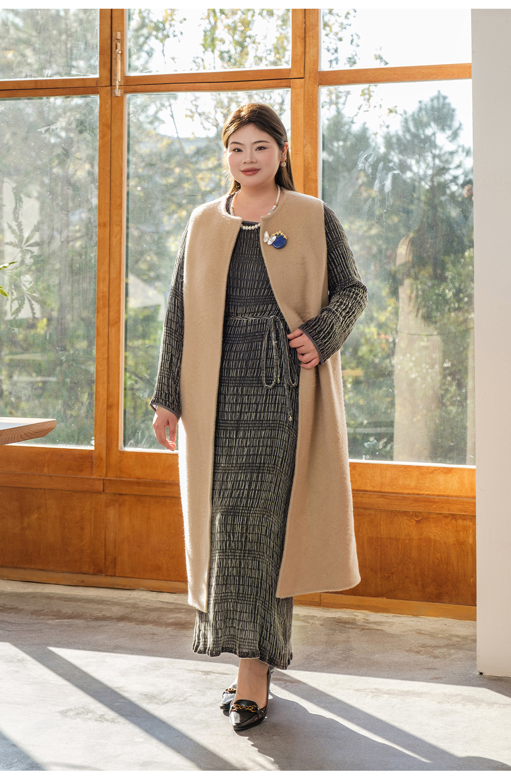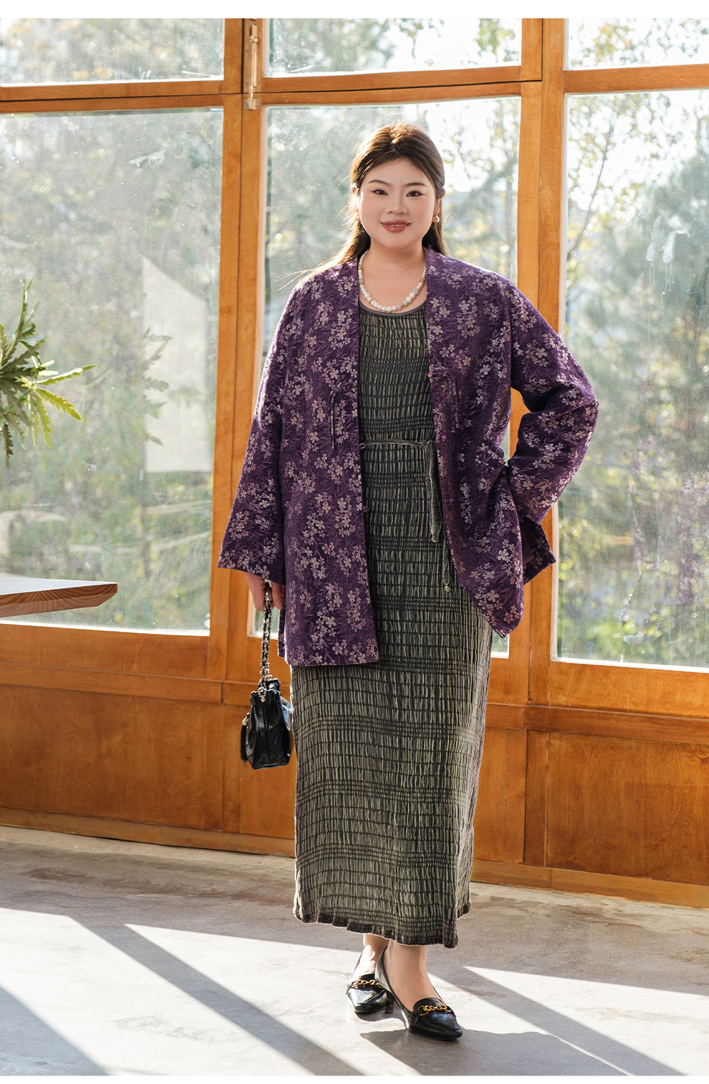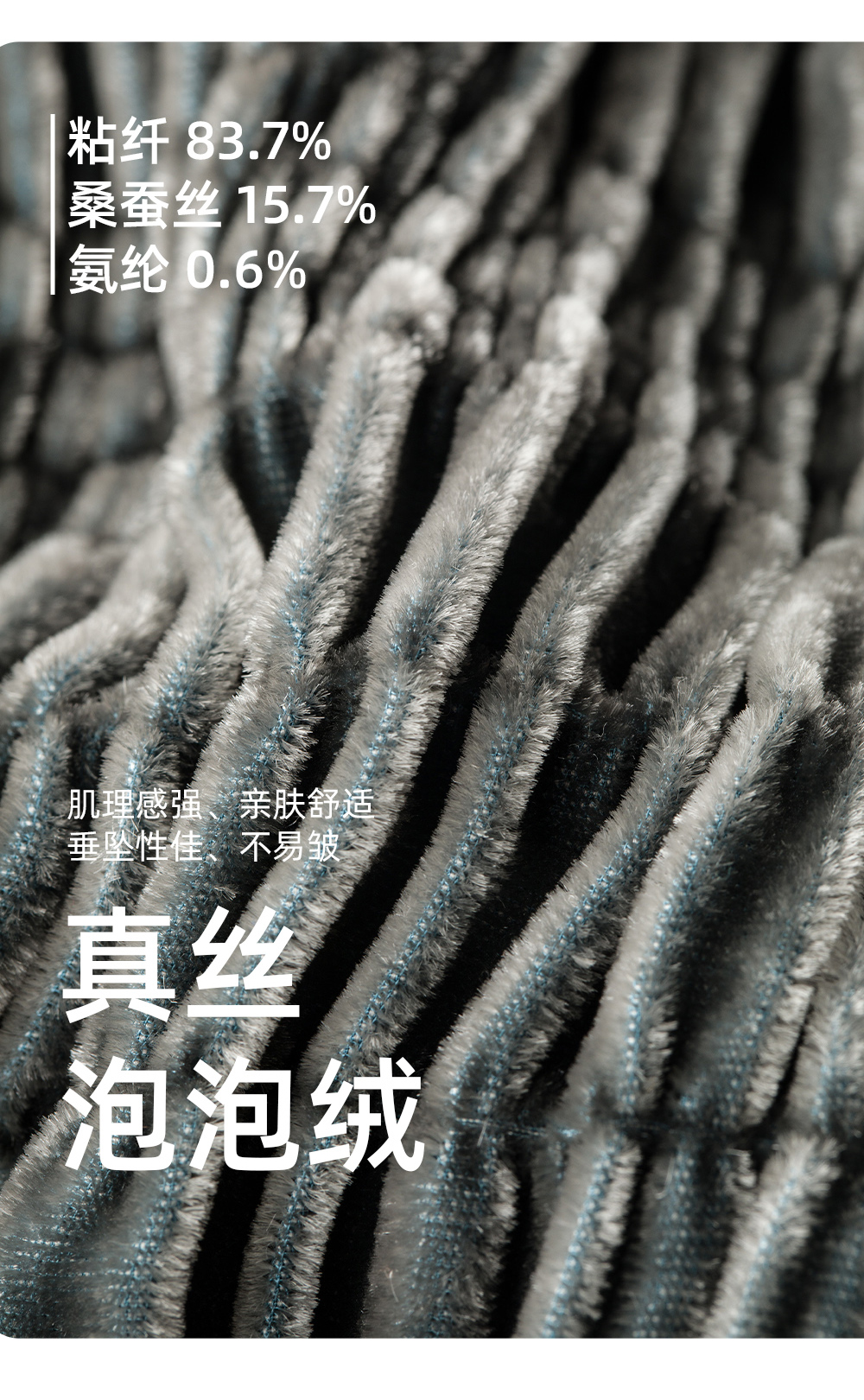 【真丝泡泡绒连衣裙】美丽客栈秋冬新款高级感长袖圆领连衣裙女大码女装