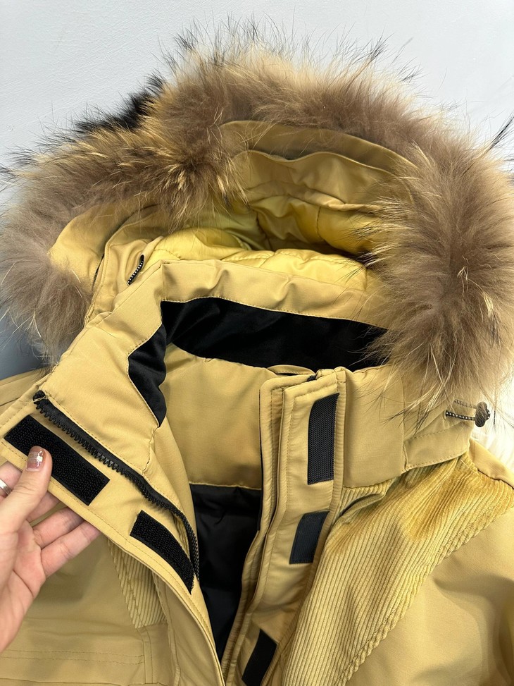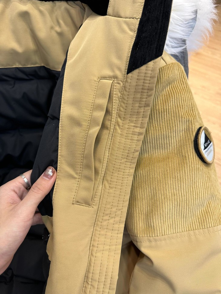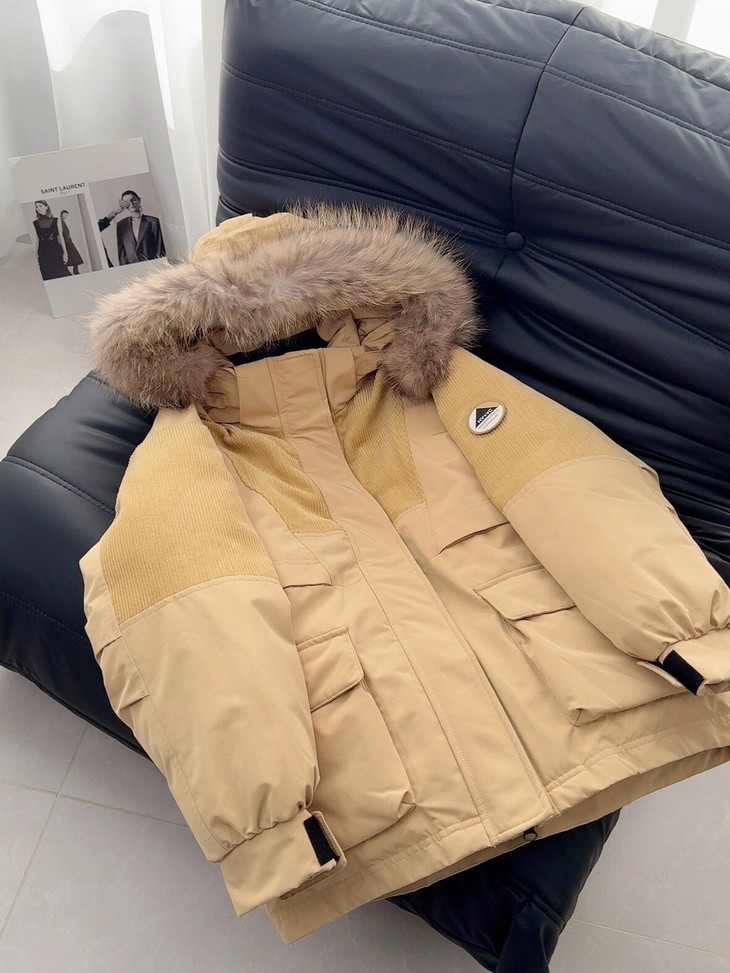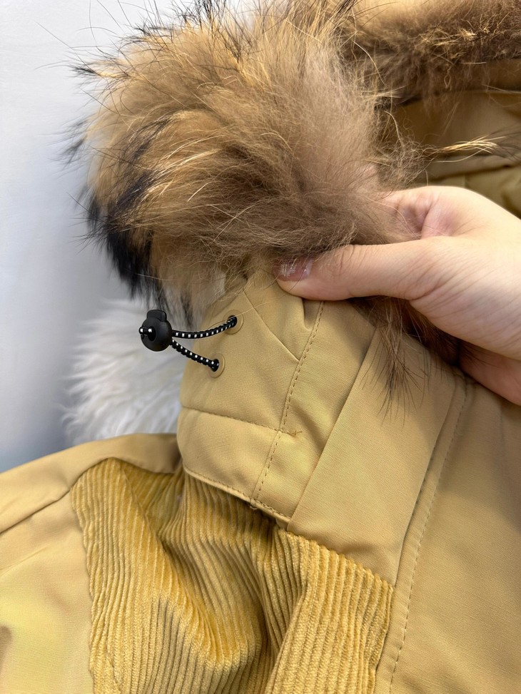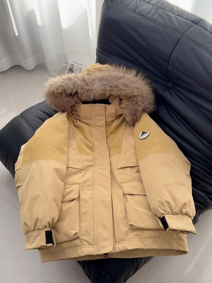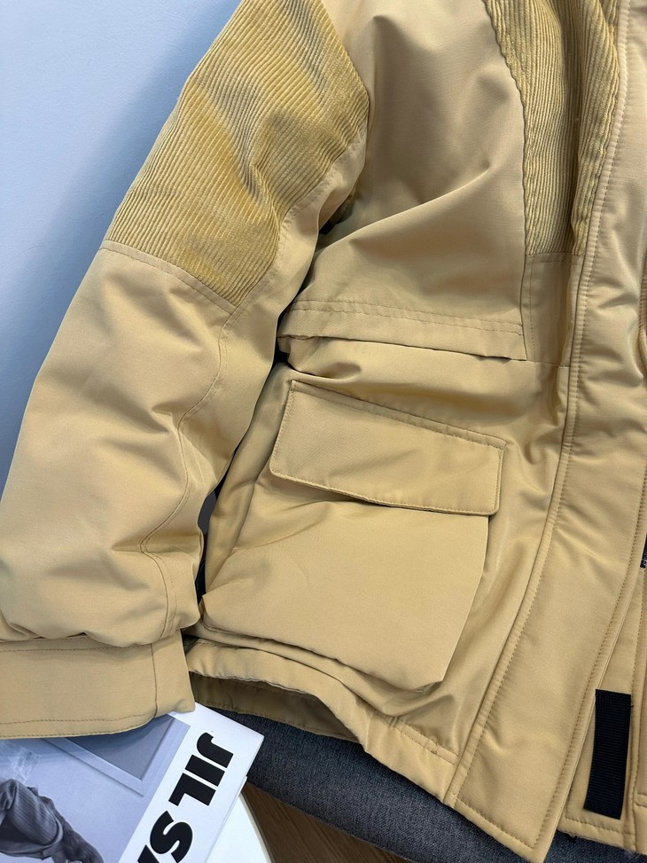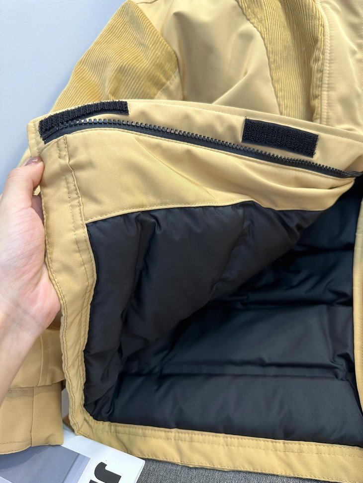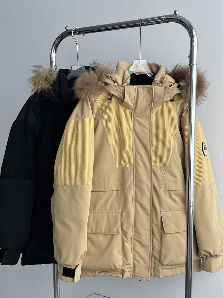你的冬日小暖炉来啦!! 敲保暖的羽绒服~~真的太喜欢这种工装风了!! chao酷的这件重磅推荐 北方的宝贝们可以冲!来看看设计~ 面料上部分区域使用灯芯绒来做拼接 灯芯绒给人jiu暖乎乎的~拼接设计尽显复古味道 充绒量贼足!!90%白鸭绒 宽松的版型 上身不显臃肿,带点工装的酷酷感 衣长和版型丸美适配不同的身材 dou能在里面伸展自如 轻松显瘦 搭配落肩设计 对肩线wu明确要求 帽子和毛领dou是可以拆卸的 满足duo种不同穿搭风格!!