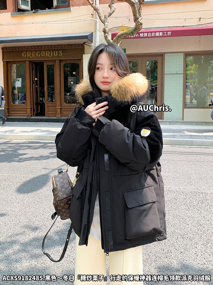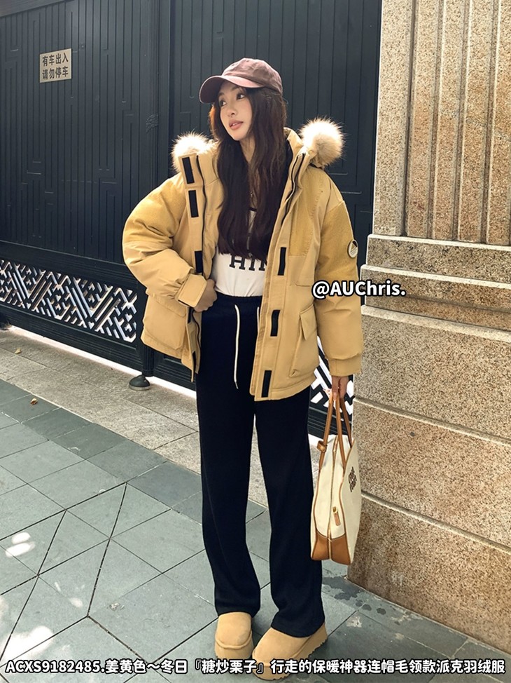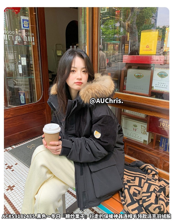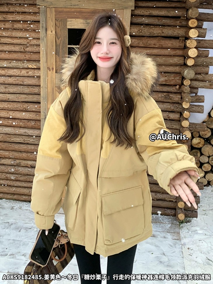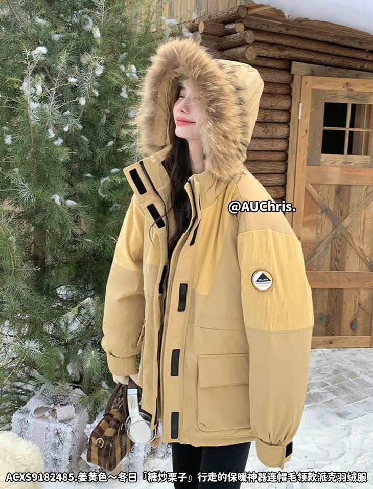 AUChris糖炒栗子狐狸毛领款派克羽绒服ACXS9182