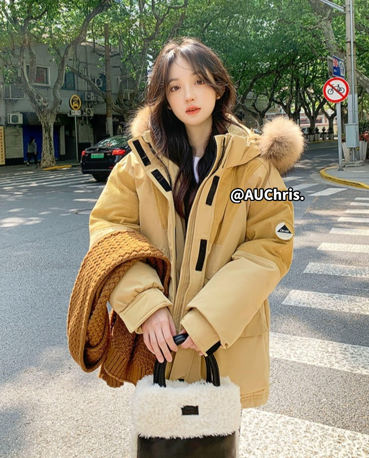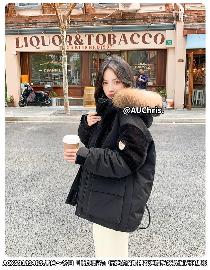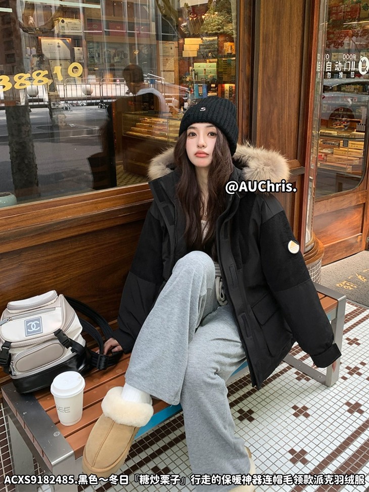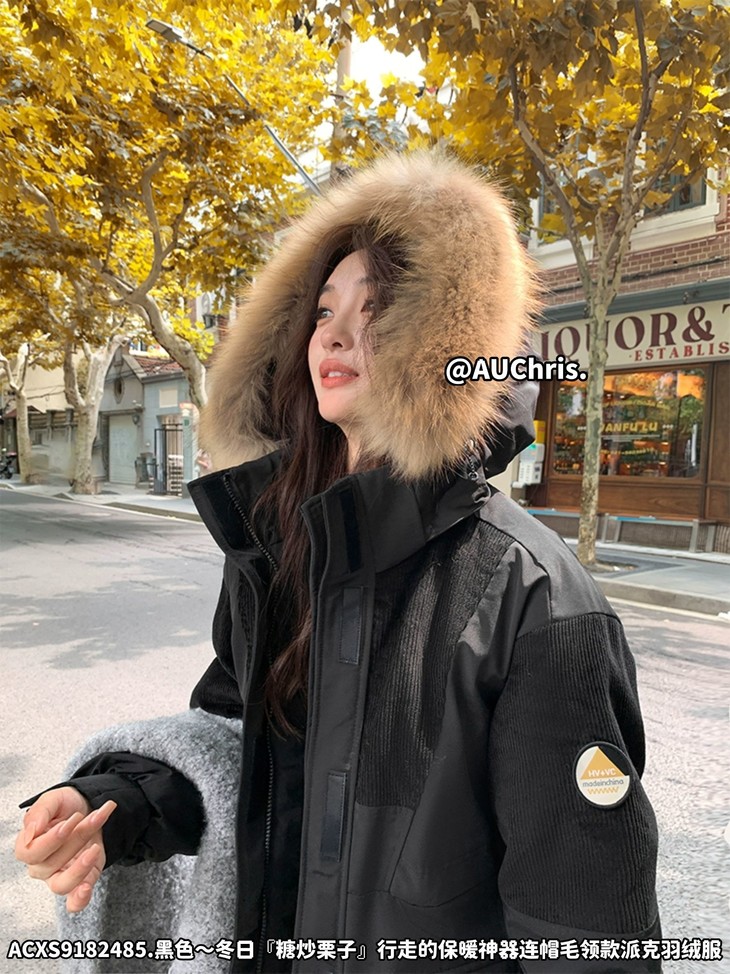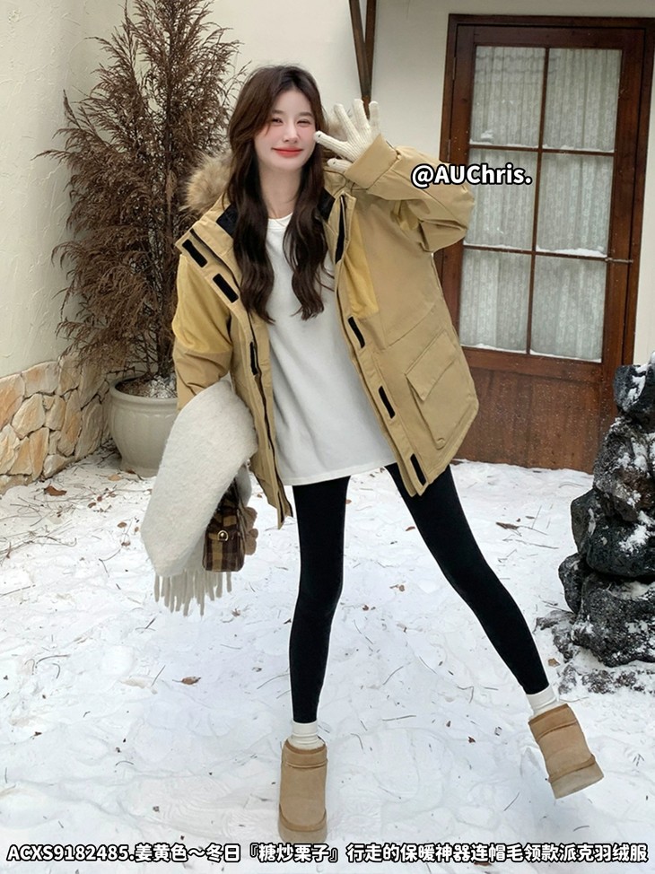 AUChris糖炒栗子狐狸毛领款派克羽绒服ACXS9182