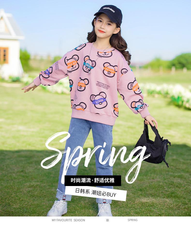 女童春装卫衣2024新款洋气韩版中大儿童网红春秋打底衫上衣套装