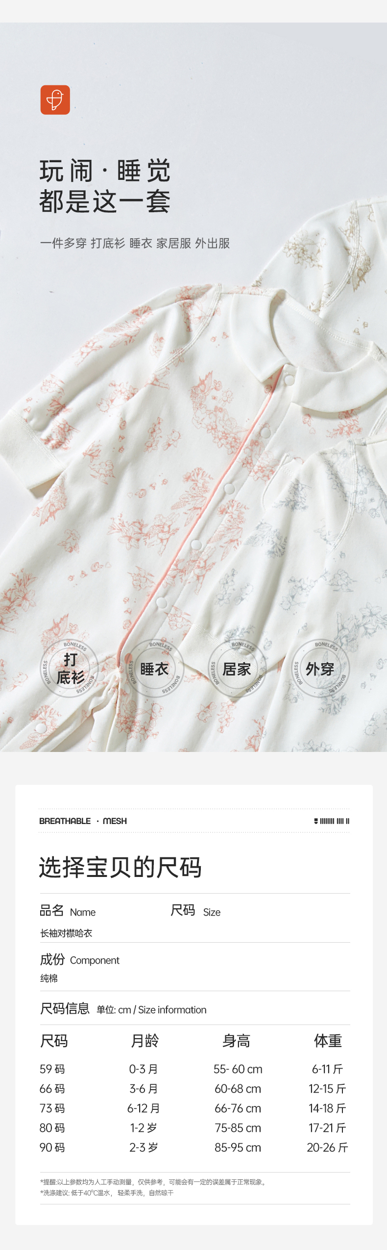 【秋季新款】7A抗菌纯棉连体衣