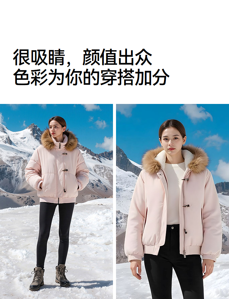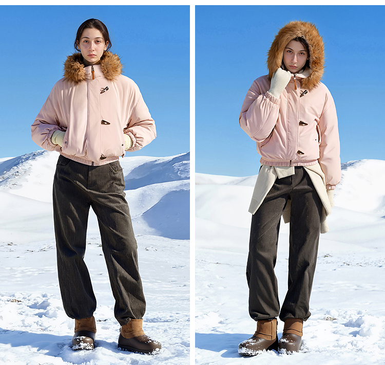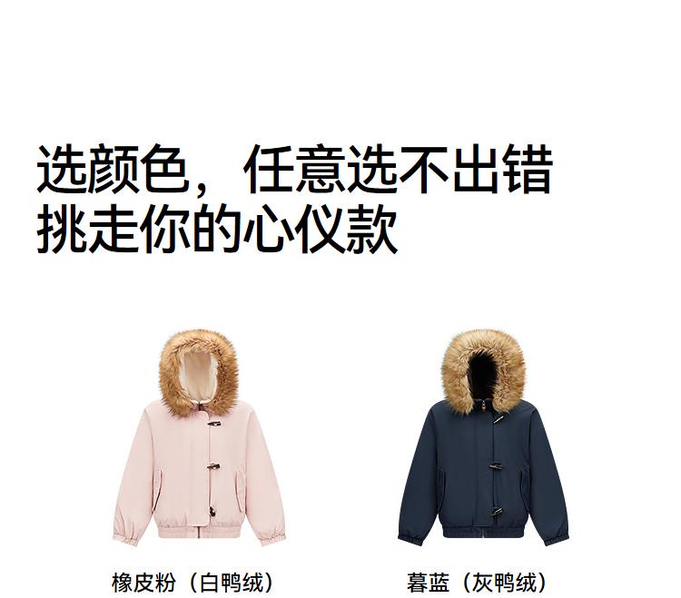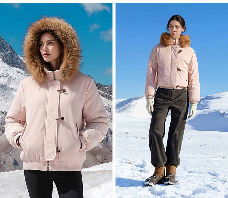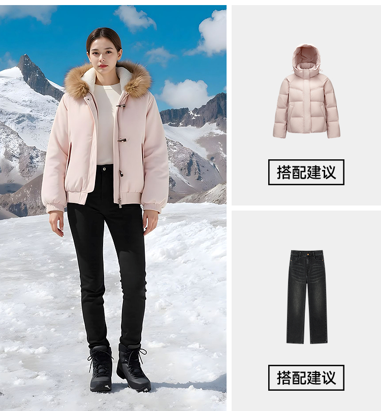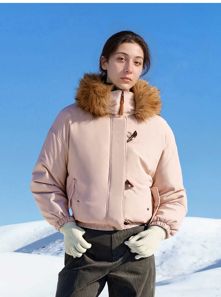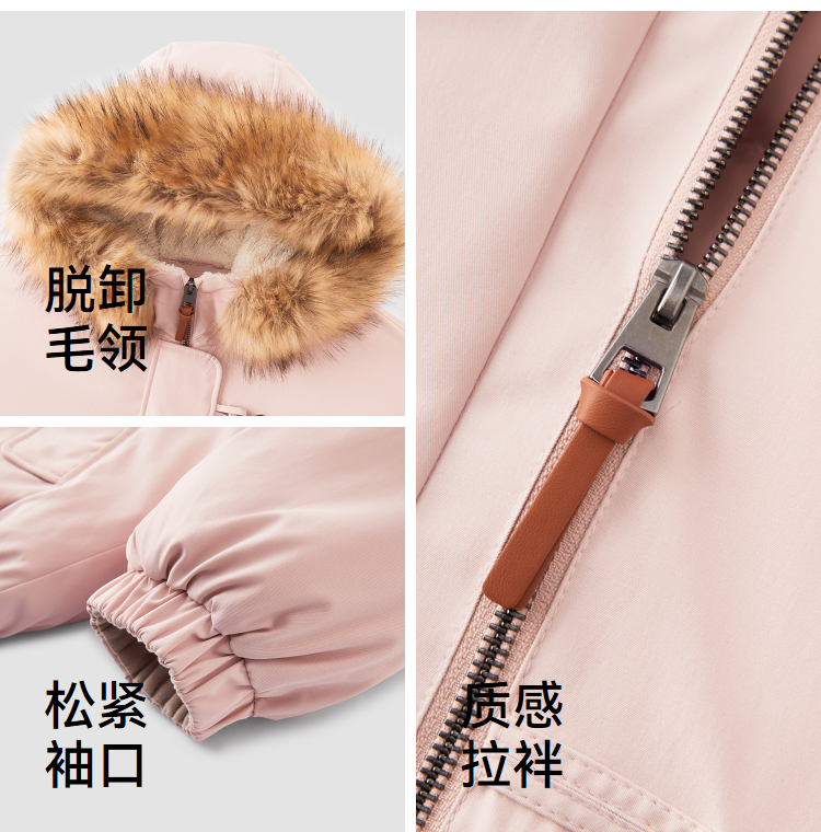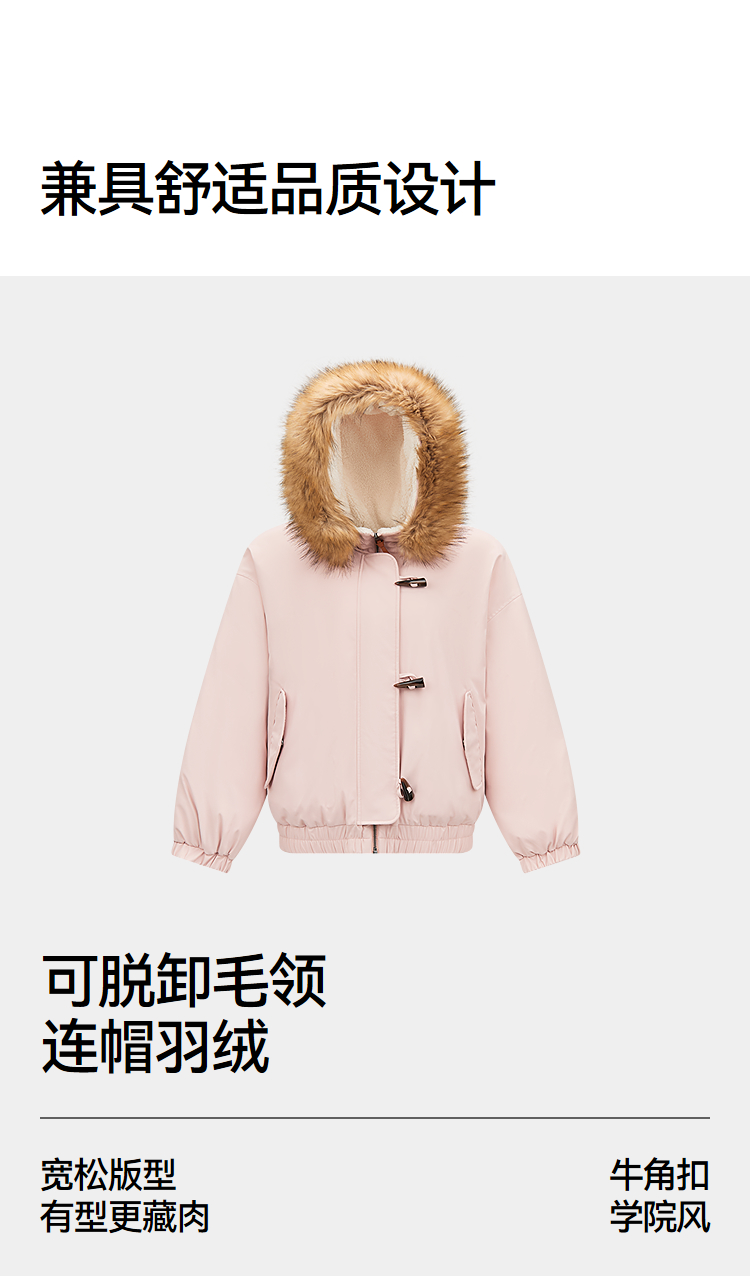 森马羽绒服女冬季可脱卸毛领牛角扣宽松80绒子2025新款学院风外套