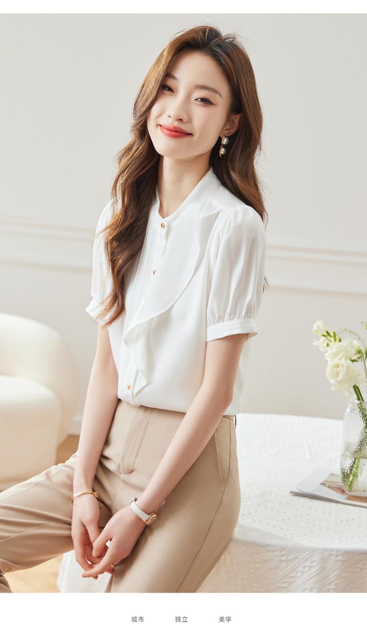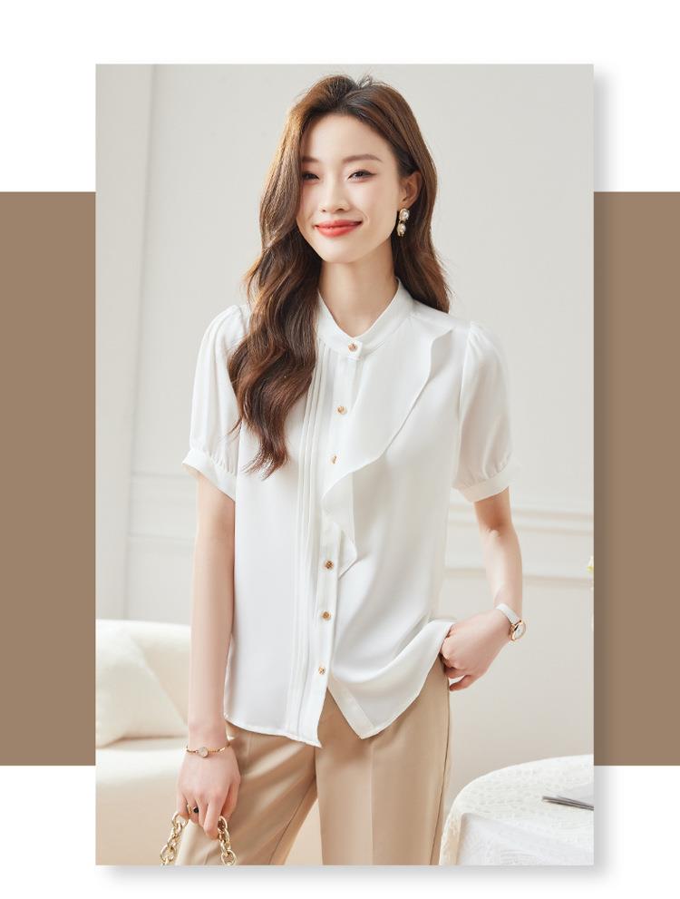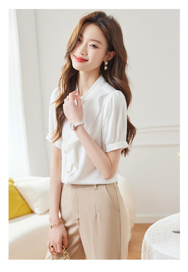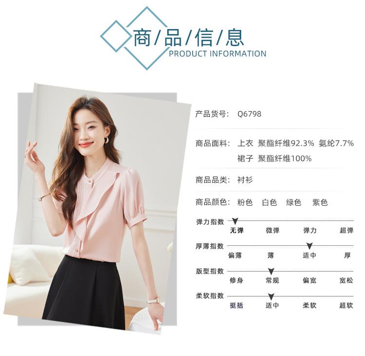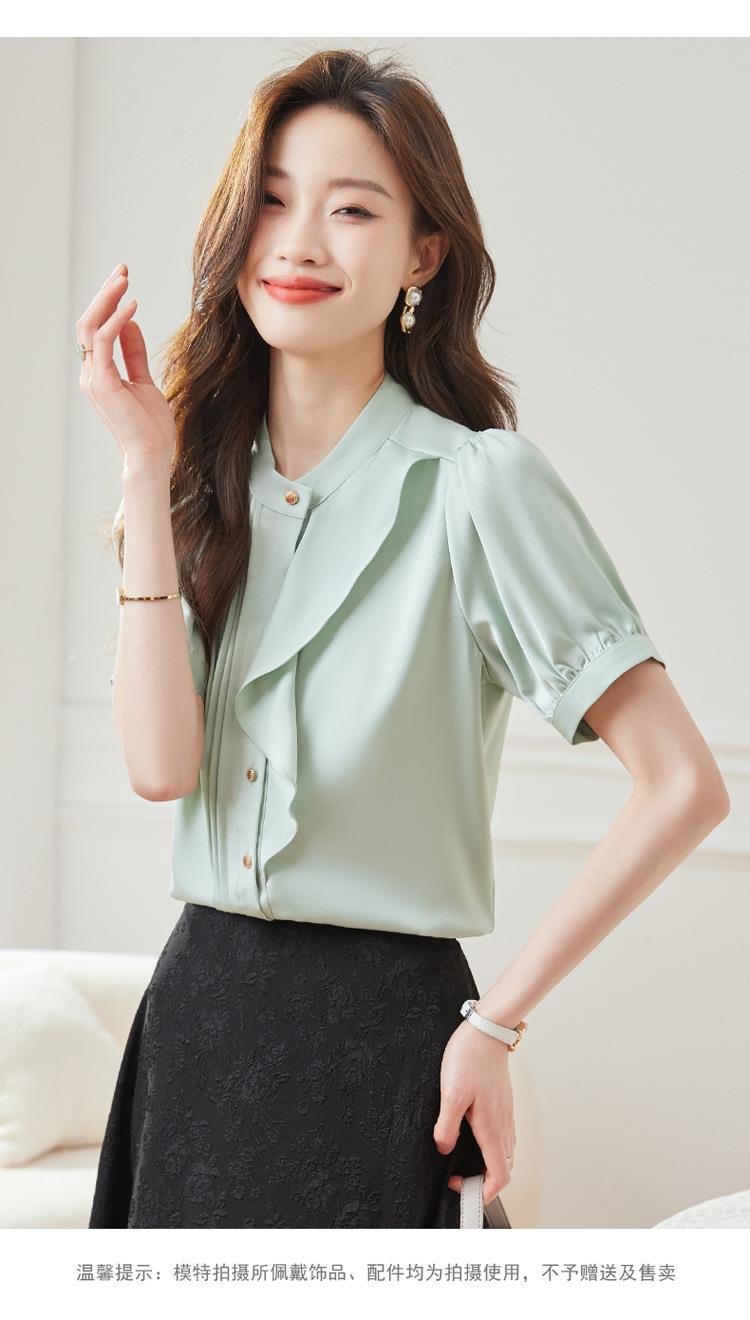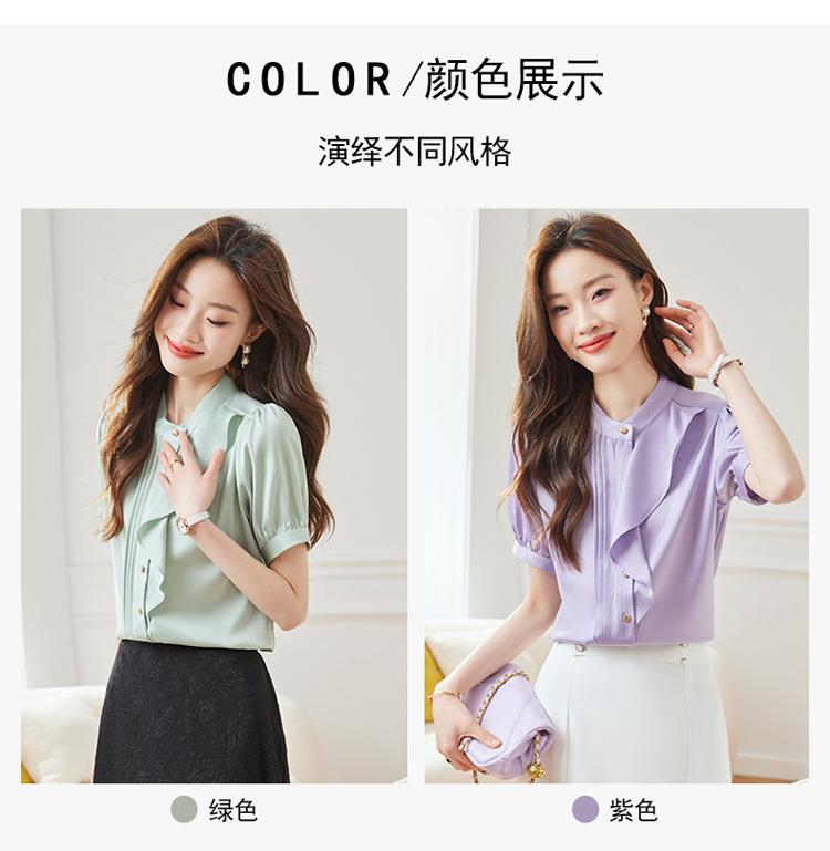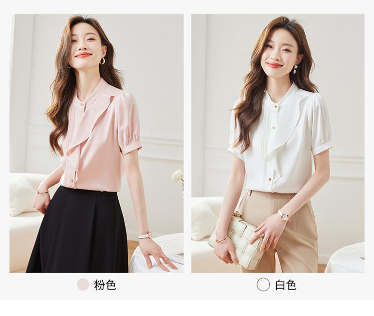 娜璐多 荷叶边短袖衬衫女2023夏新款雪纺衬衣洋气法式别致上衣设计感韩版