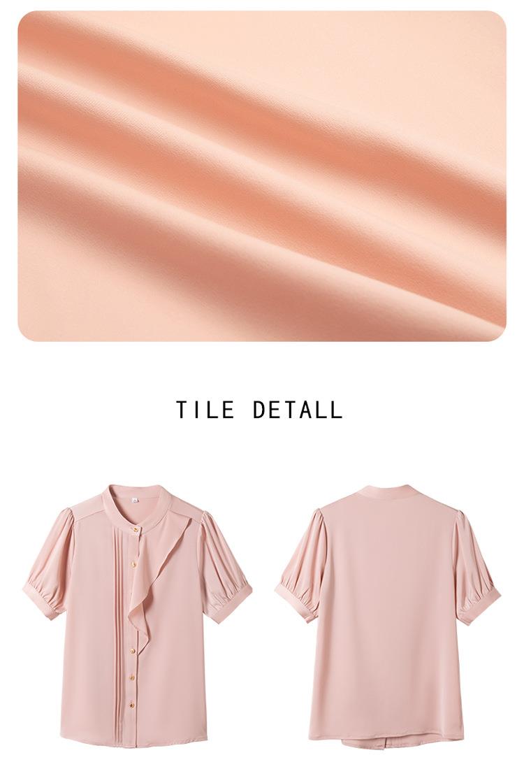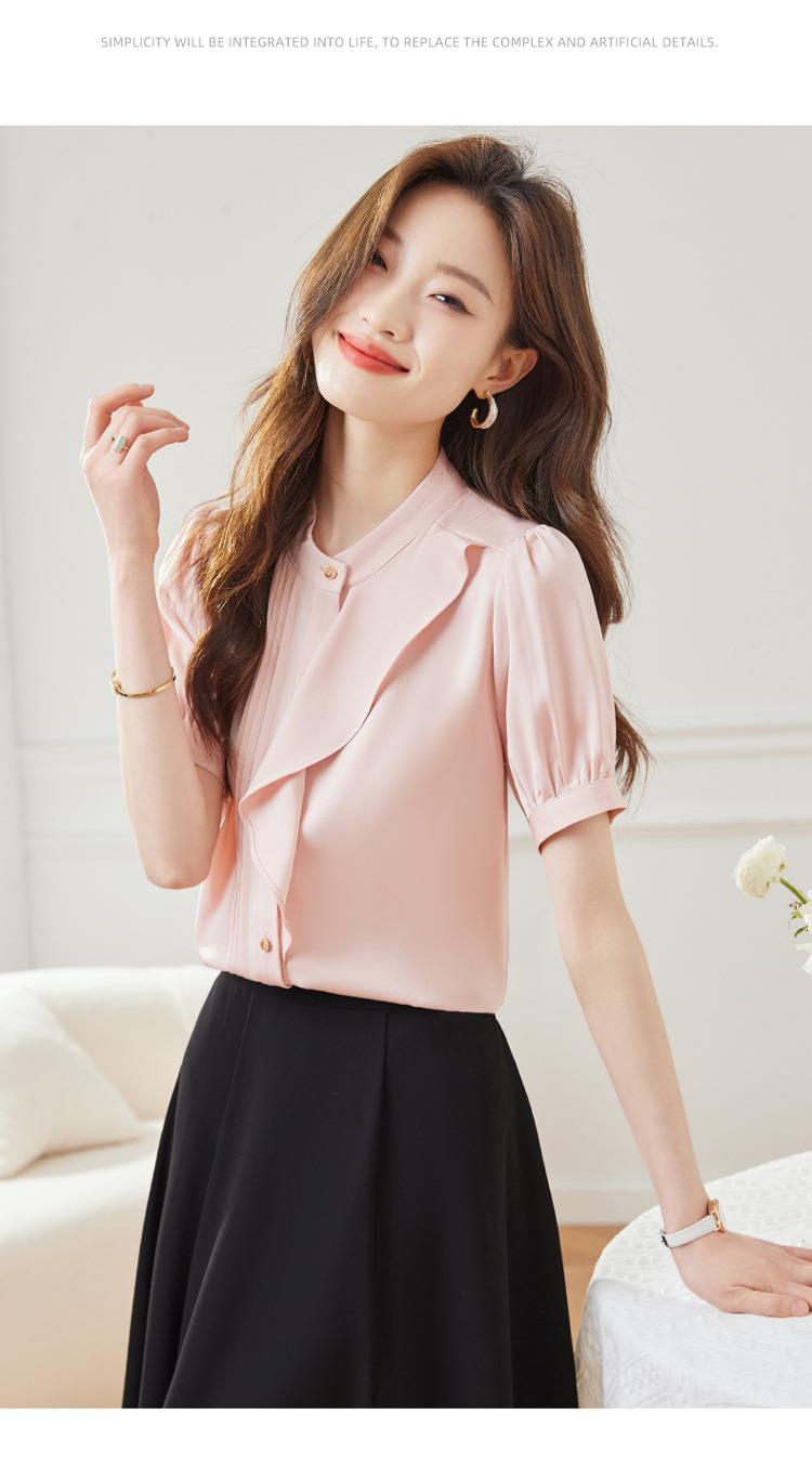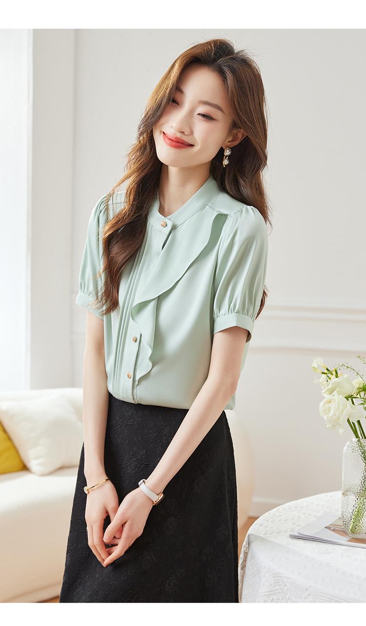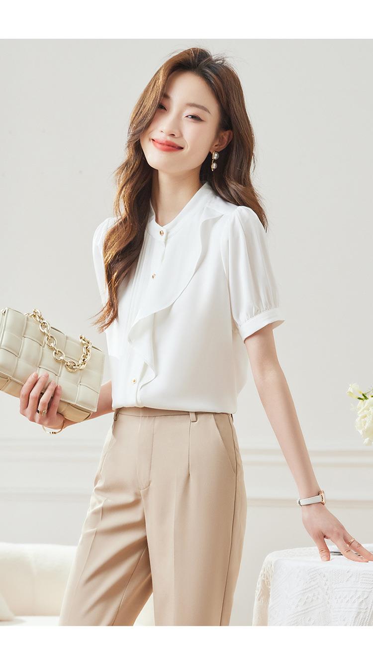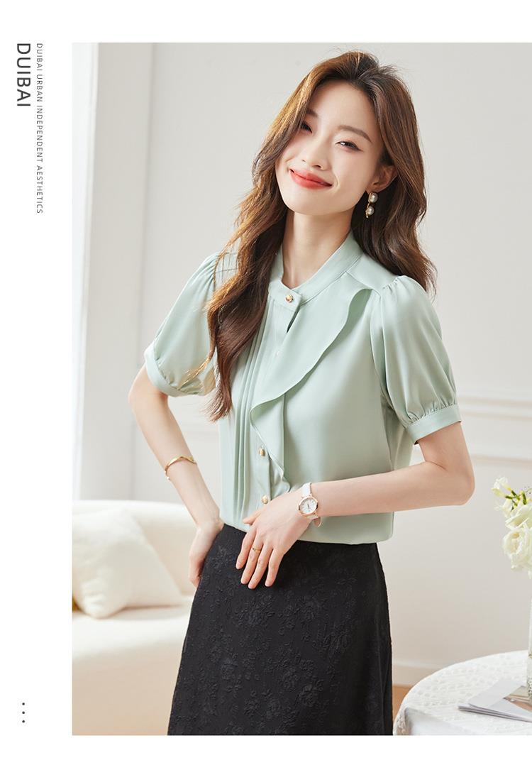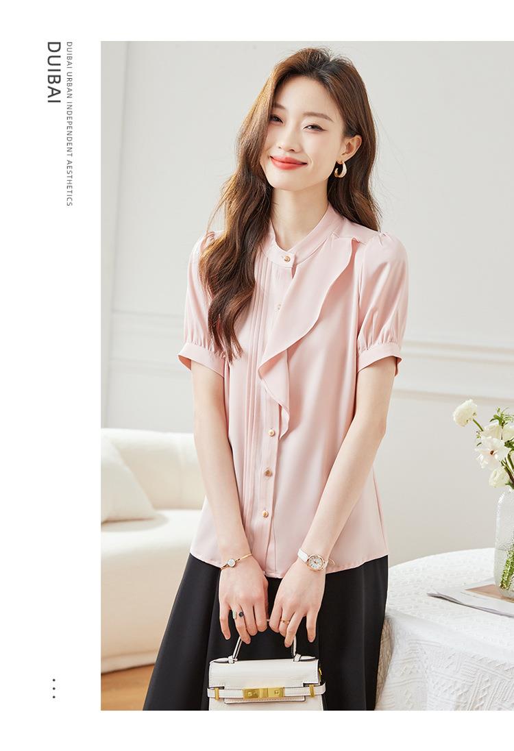 娜璐多 荷叶边短袖衬衫女2023夏新款雪纺衬衣洋气法式别致上衣设计感韩版