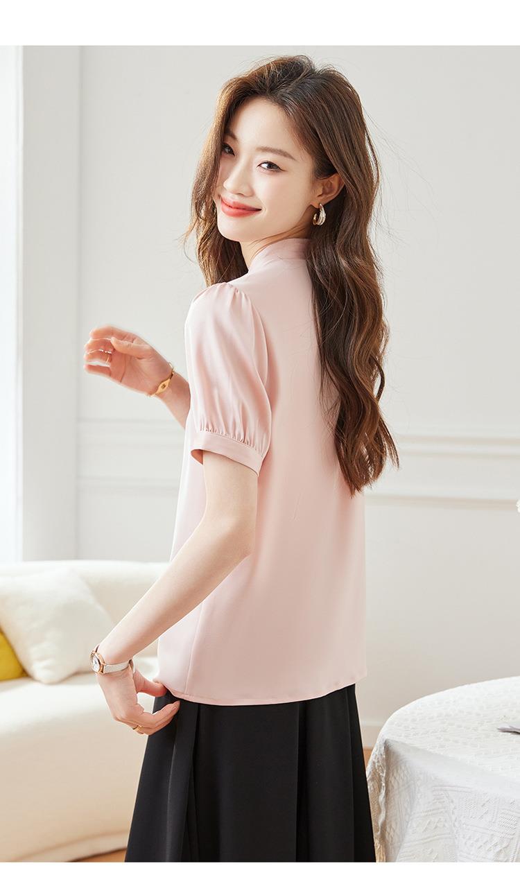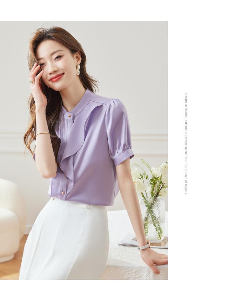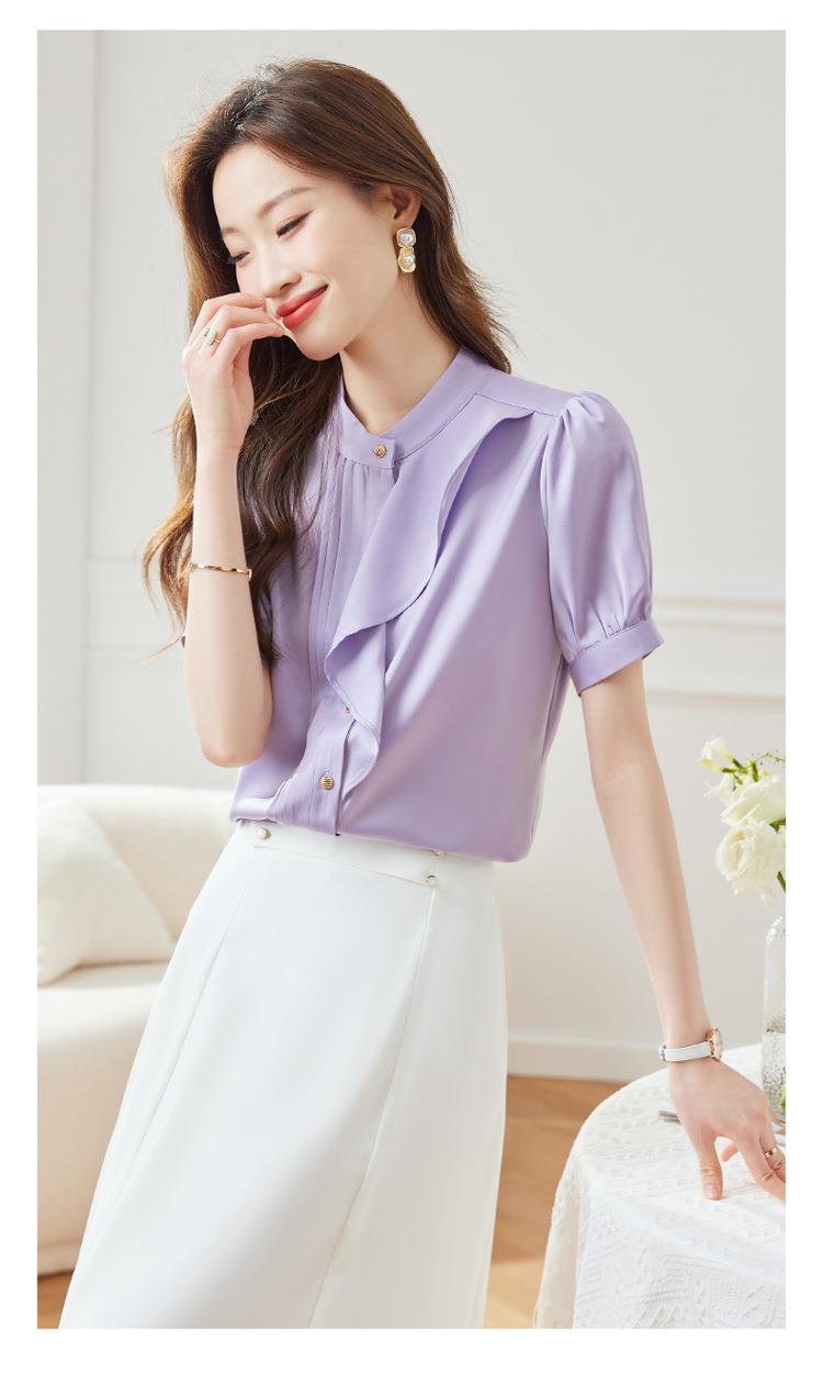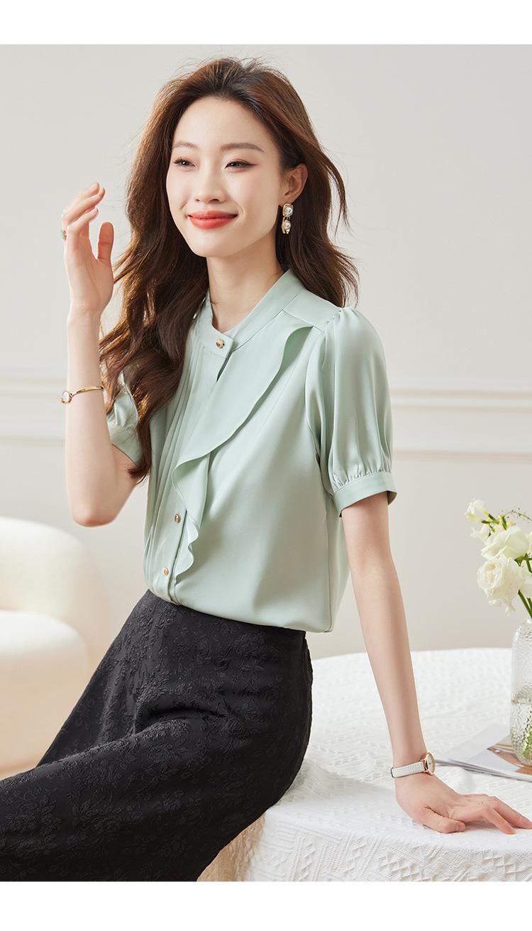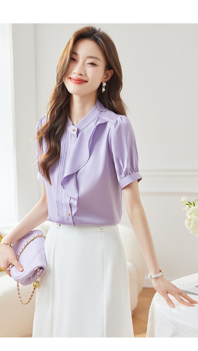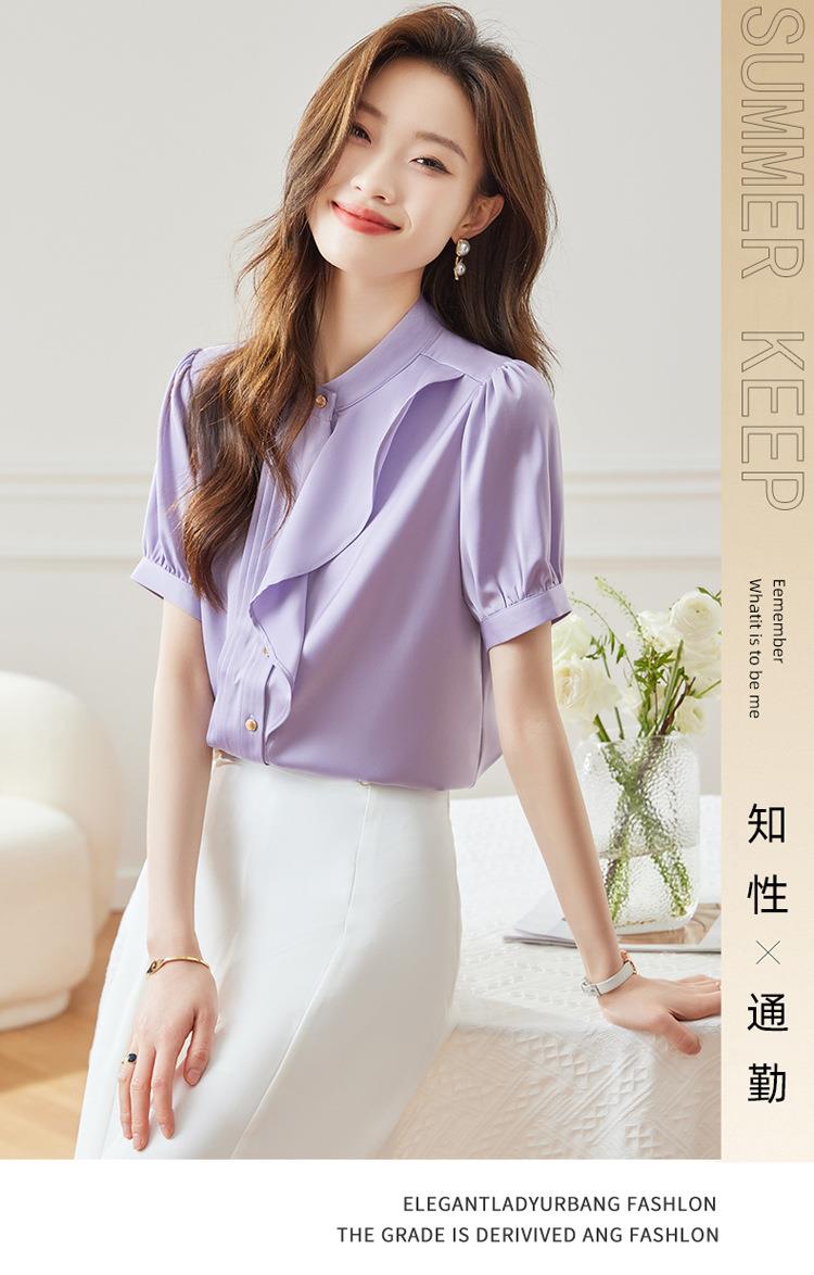 娜璐多 荷叶边短袖衬衫女2023夏新款雪纺衬衣洋气法式别致上衣设计感韩版