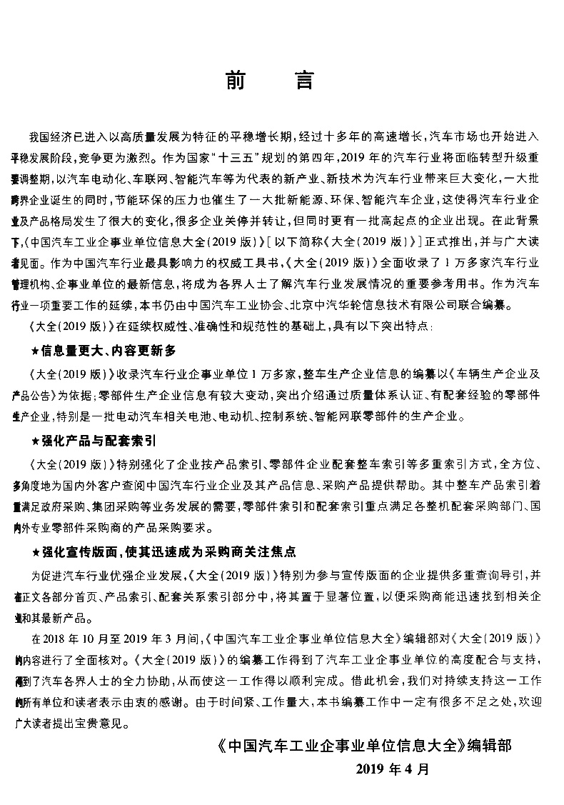 书名:中国汽车工业企事业单位信息大全(2019版)
