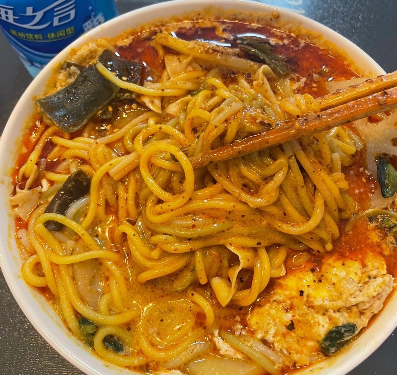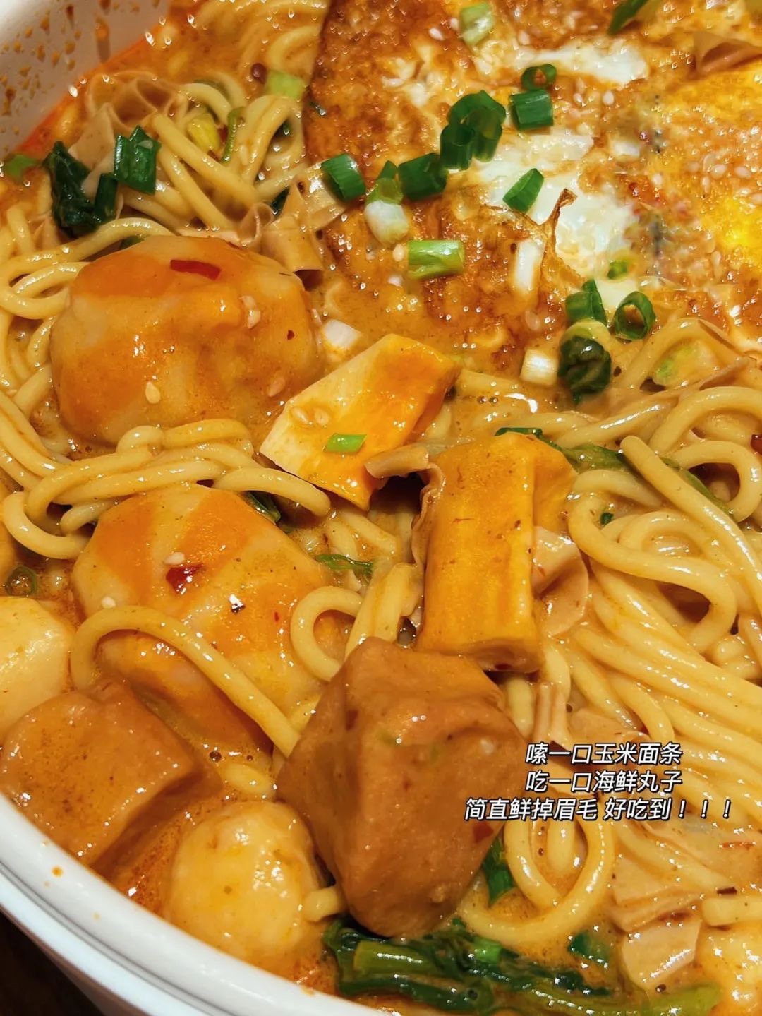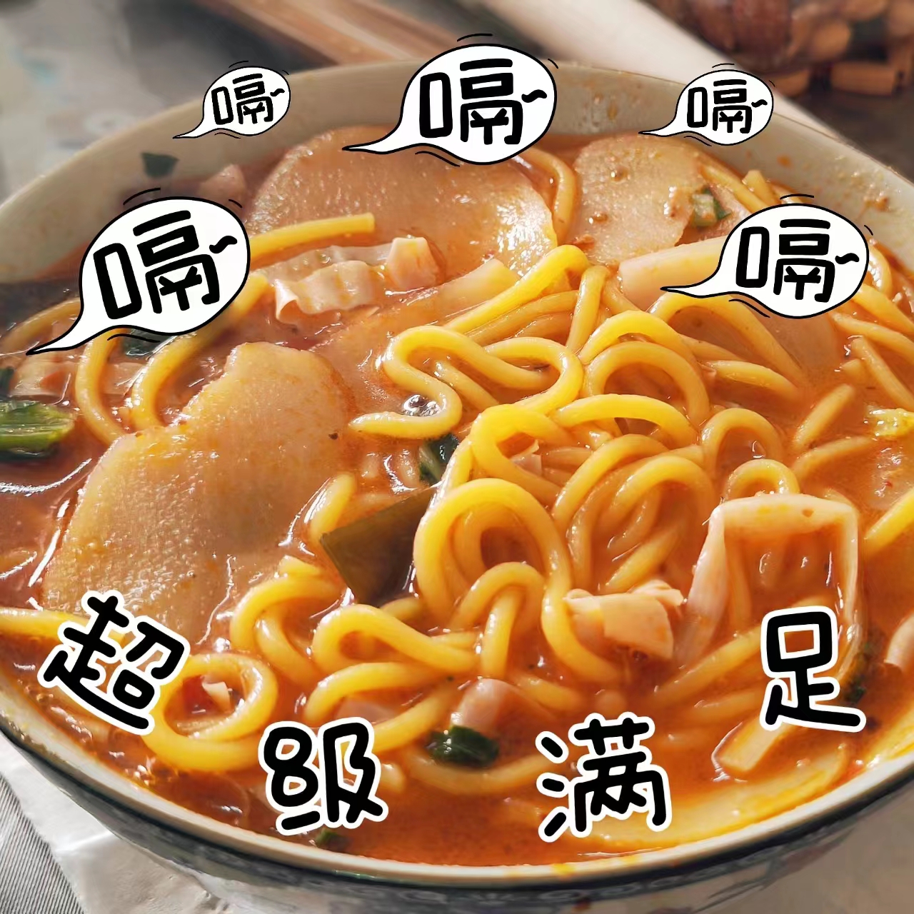 里面自带我最爱的土豆片🥔豆皮,我还加了青菜香肠煮出一大碗