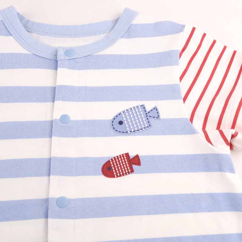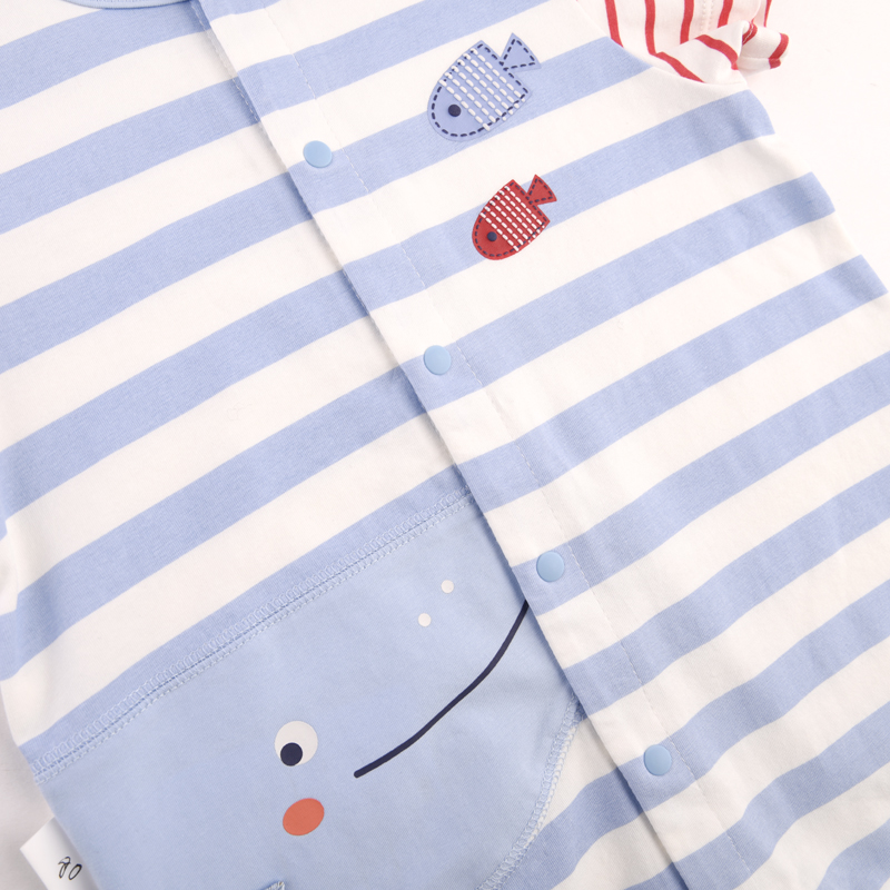 条纹对开连体衣