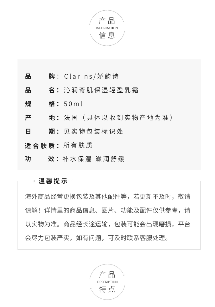 娇韵诗沁润奇肌保湿乳霜50ml不死鸟精华面霜 舒缓修护补水保湿不粘腻