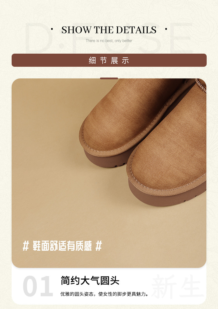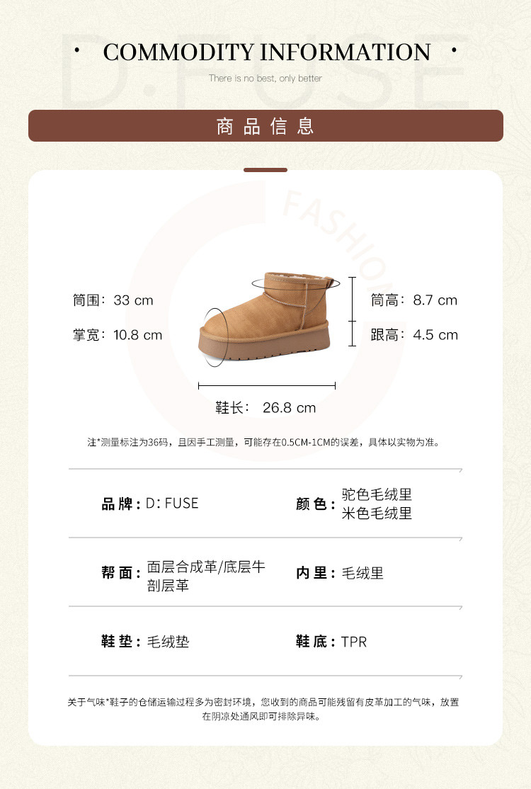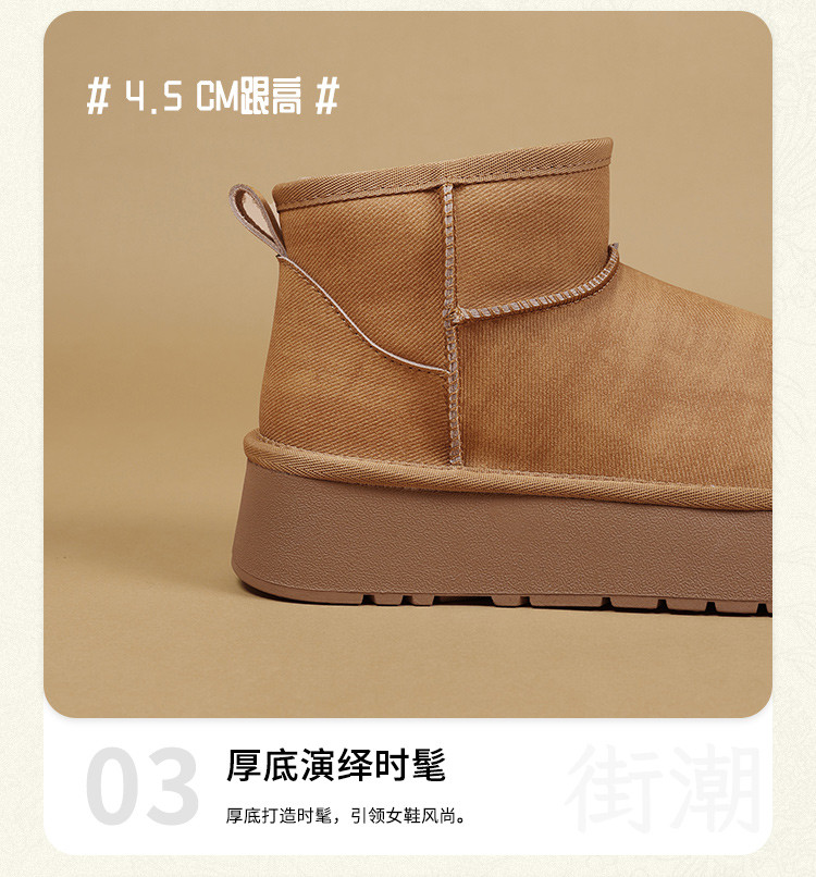 D:Fuse/迪芙斯百搭舒适保暖雪地靴女2024秋冬季新款厚底洋气短靴DF441189AM