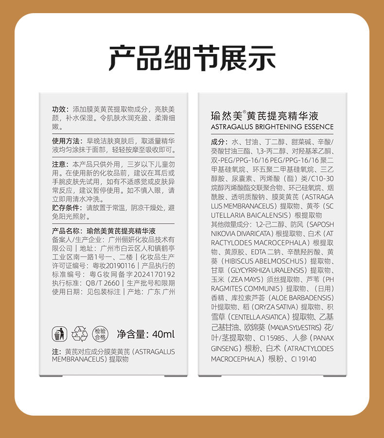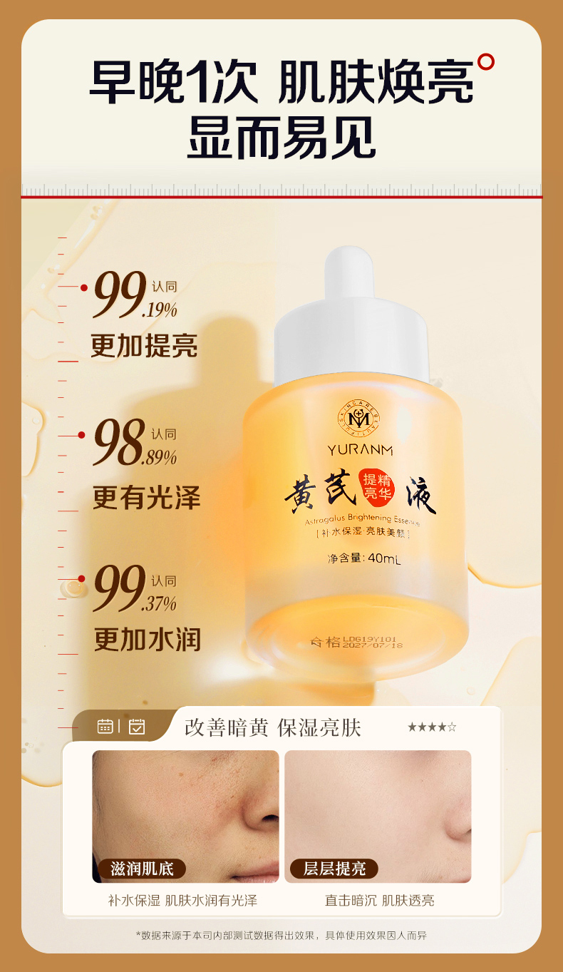 【瑜然美会员专属】瑜然美黄芪提亮精华液去黄改善暗沉肤色保湿面部精华官方旗舰店