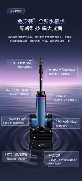 添可芙万Artist60艺术家水箱版【自动上水 热水洗 躺平0缠毛】洗地机吸拖一体吸尘扫地拖地机器人