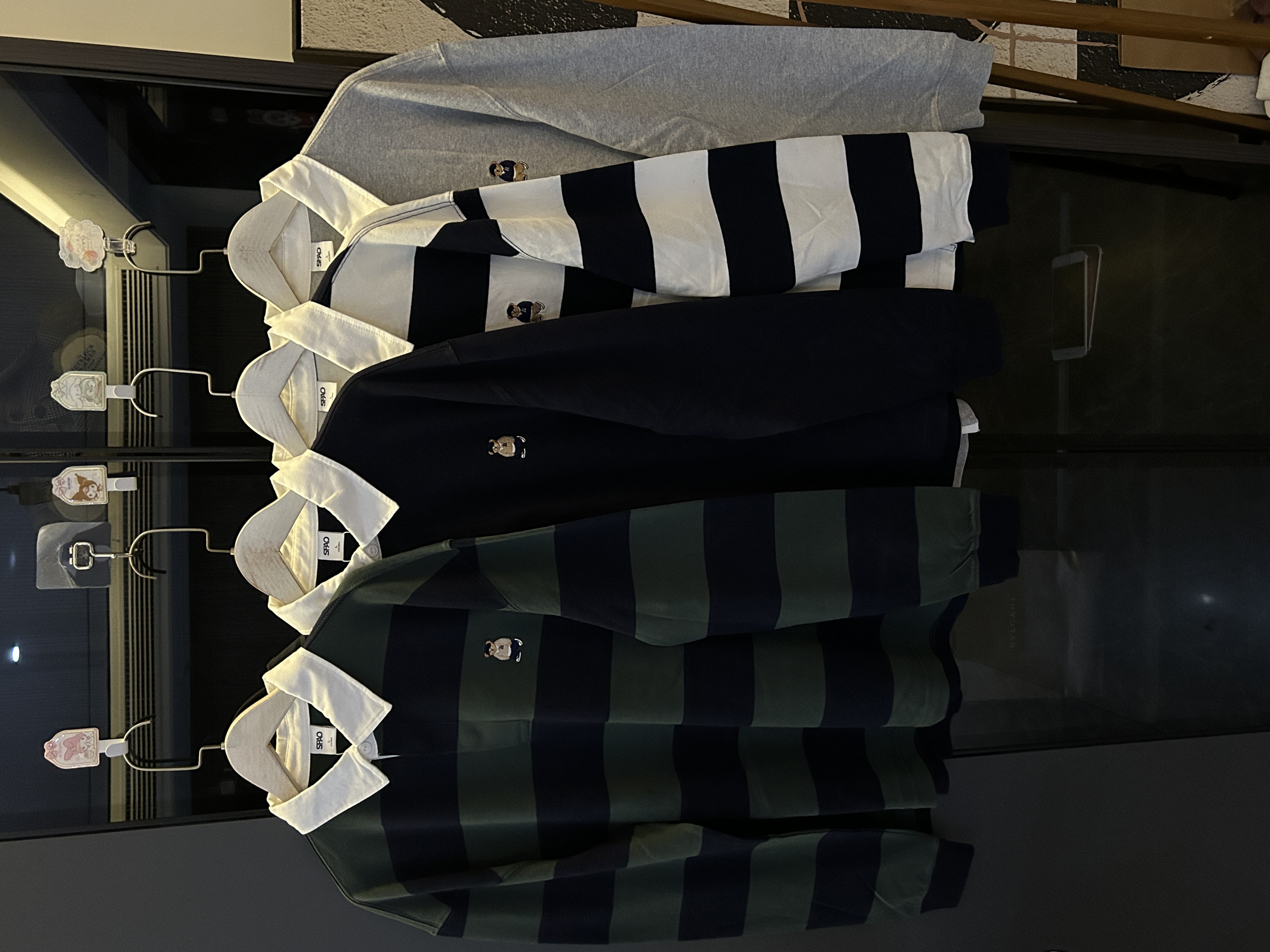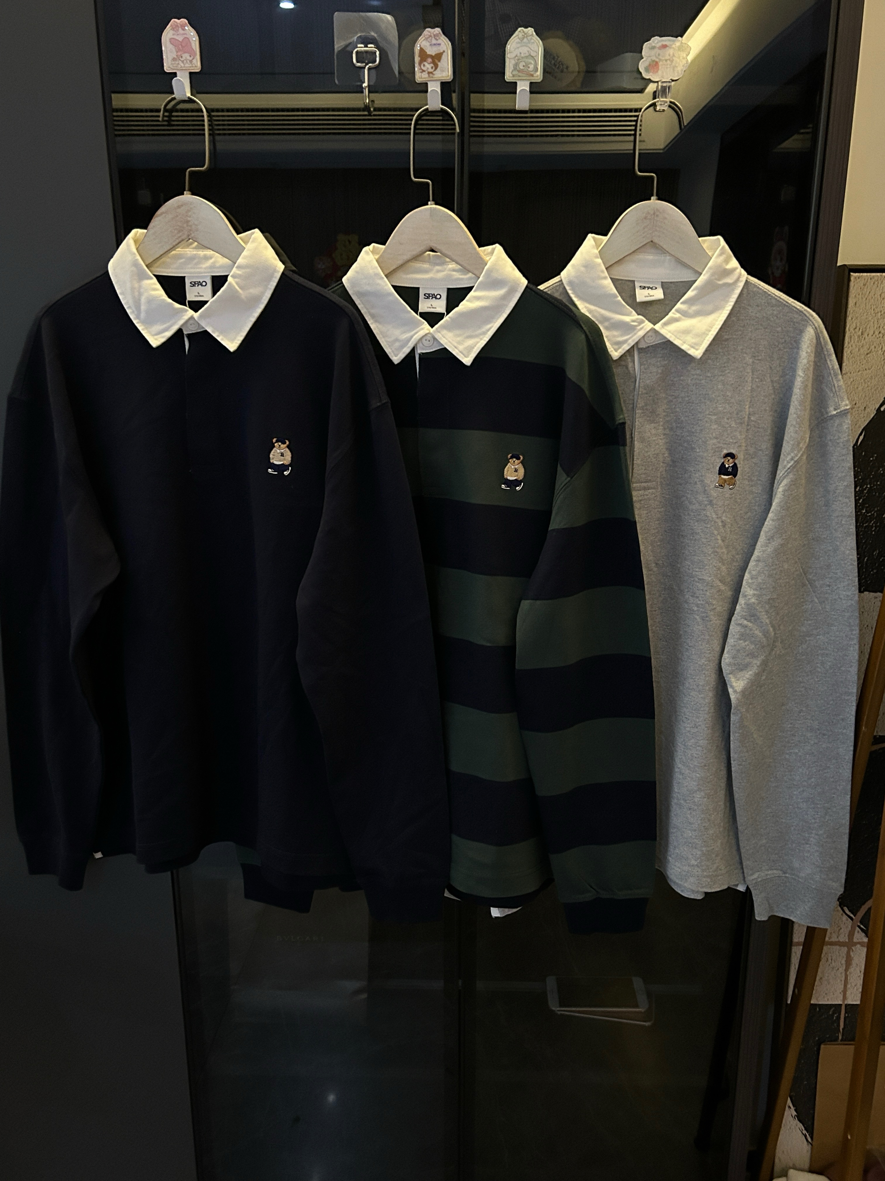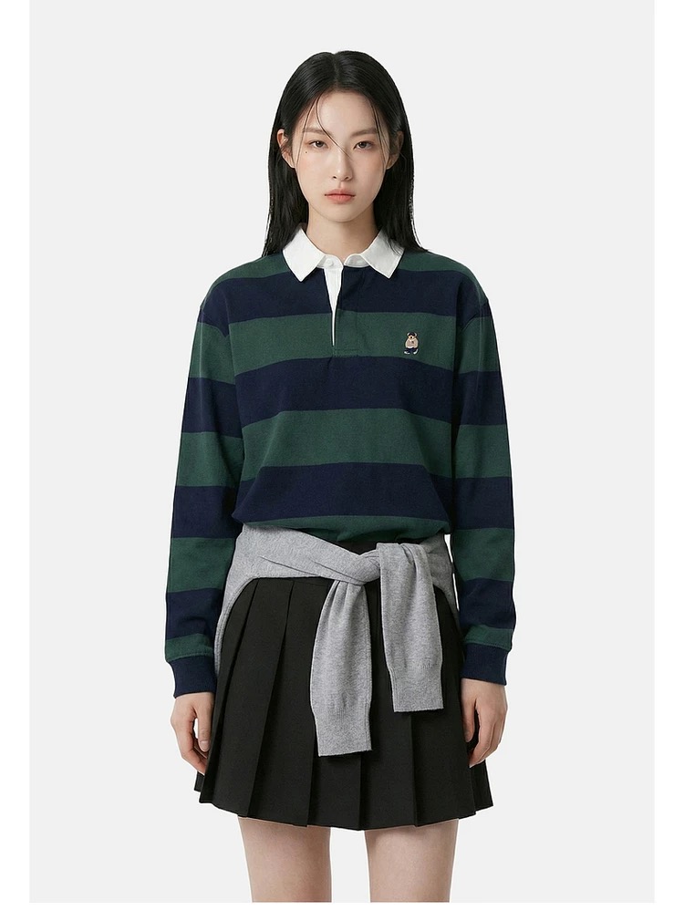 去韩国的订单,sp* x woodie 小熊 联名合作款原d,26早春新款,复古 美式 学院风 小熊 刺绣,男女同款,翻领 条纹 纯棉 上衣~