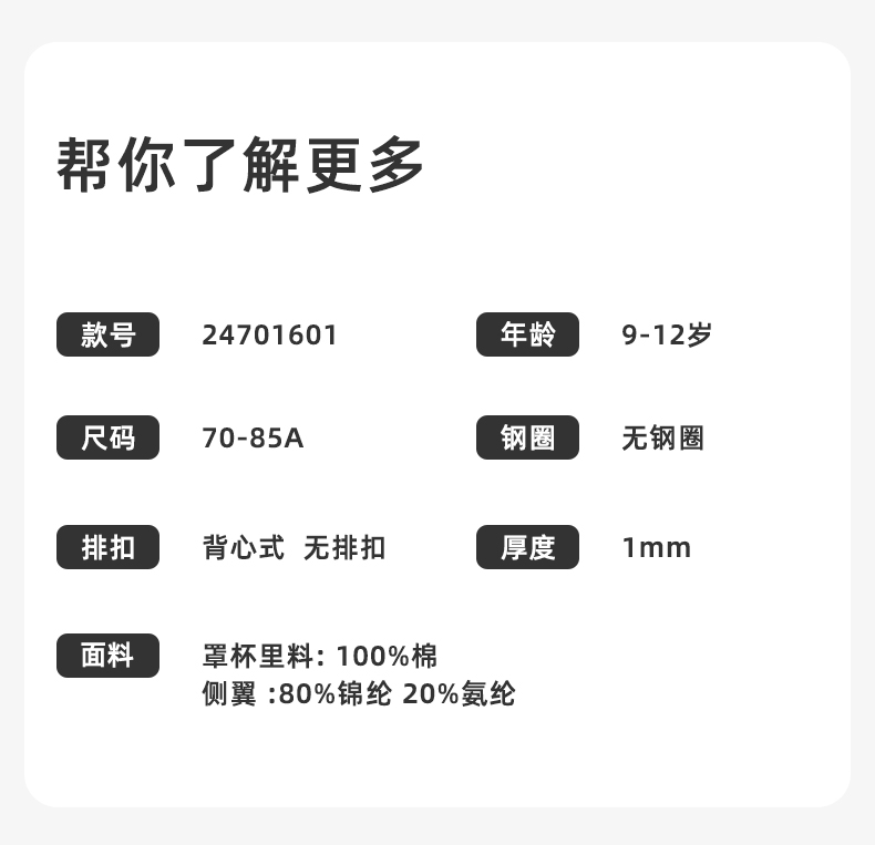 【第3件0元】熳洁儿 9-12岁一阶段少女围随型裁无痕防凸点考神附体商场同款24701601