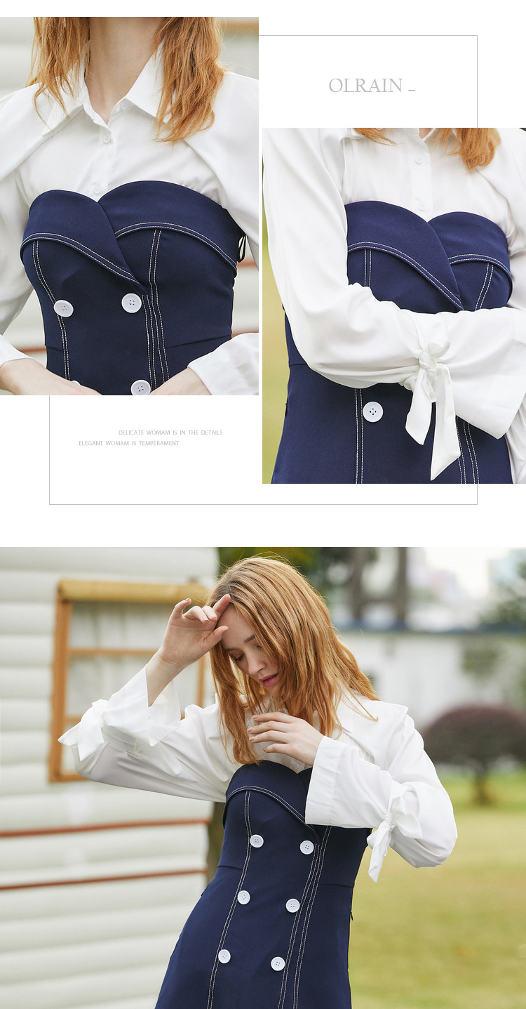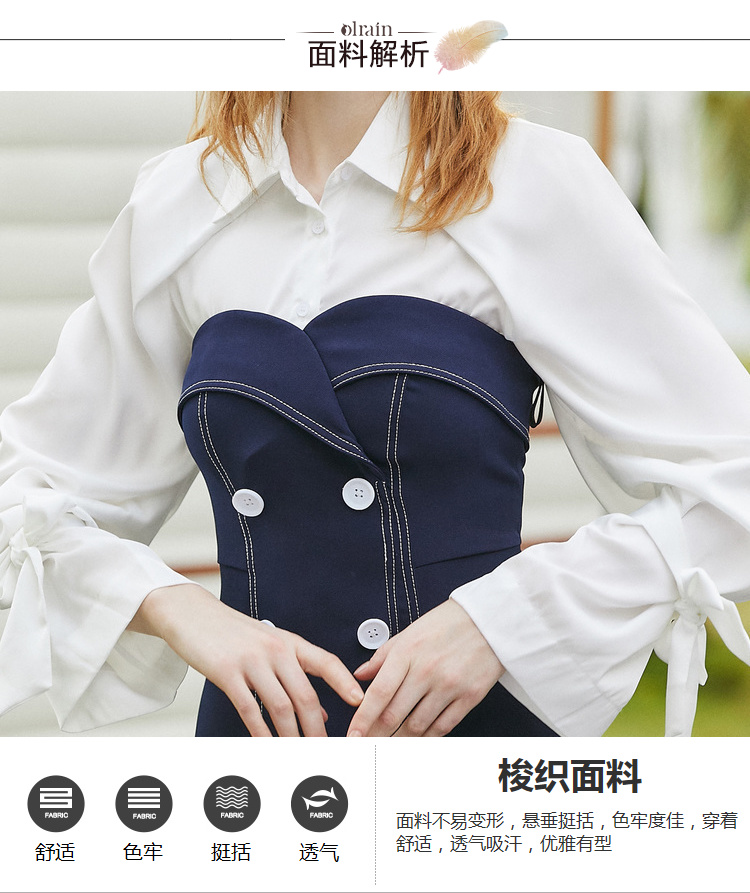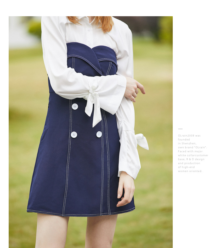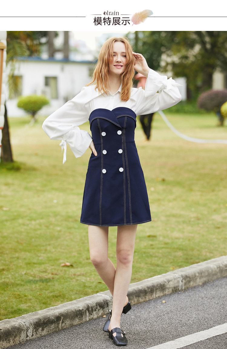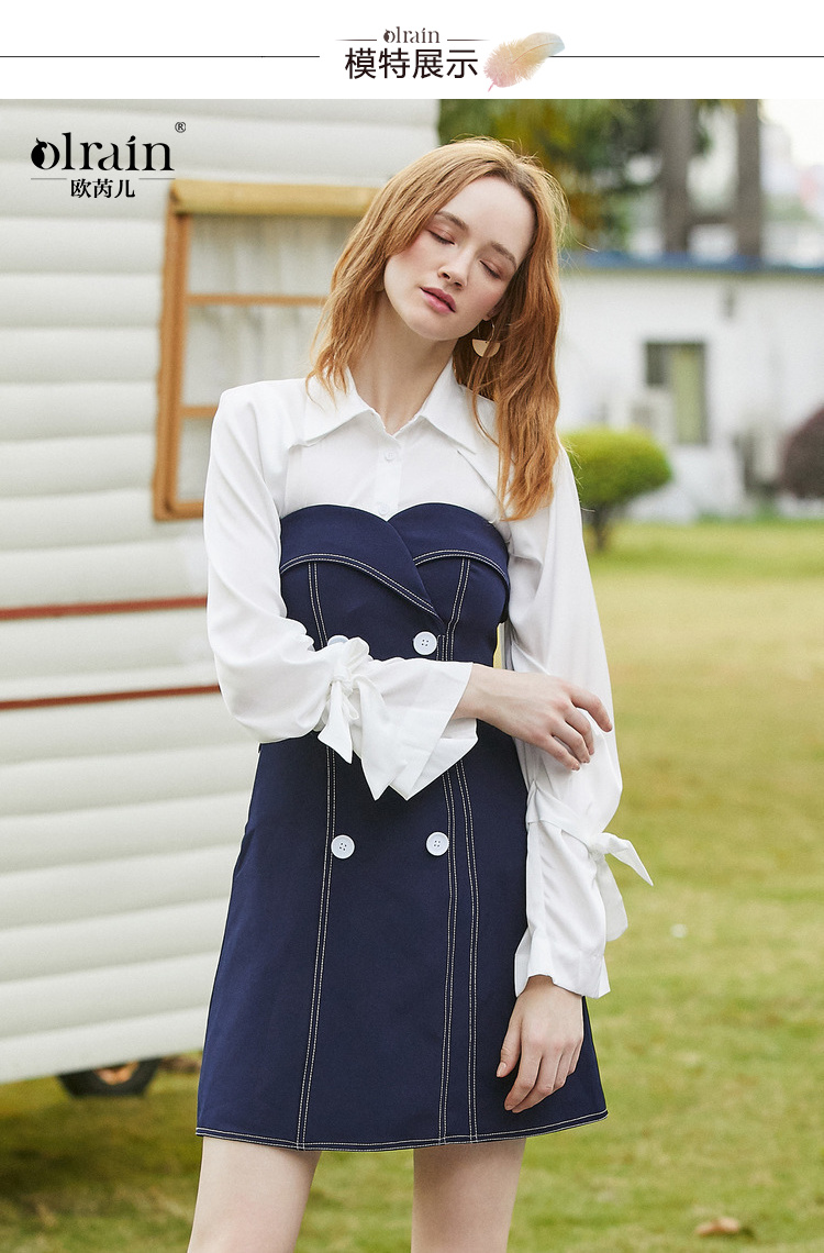 欧芮儿衬衫连衣裙2019新款春装新款长袖西装领两件套套装裙中长款
