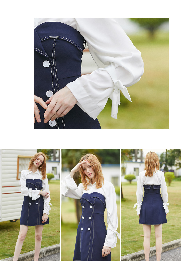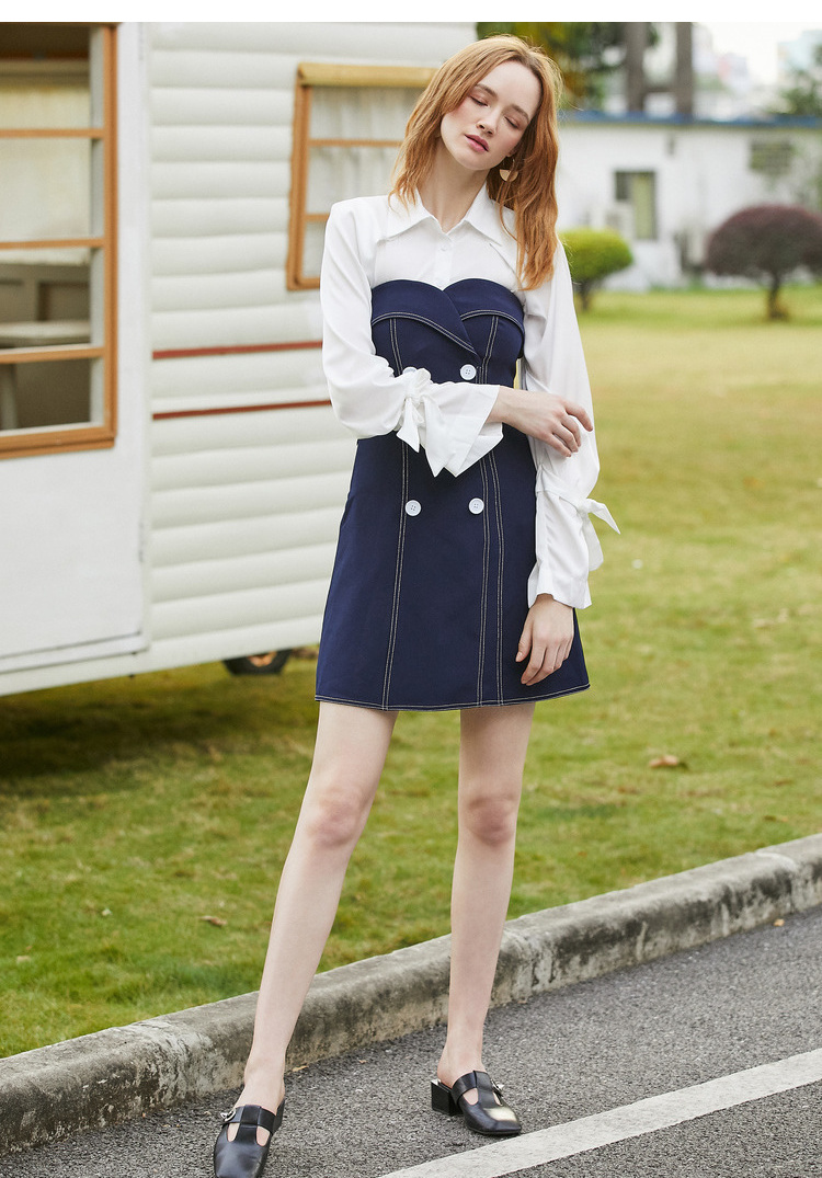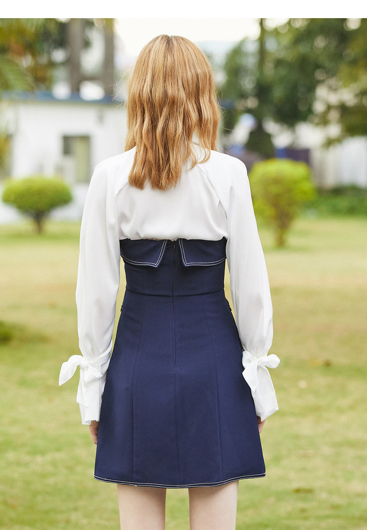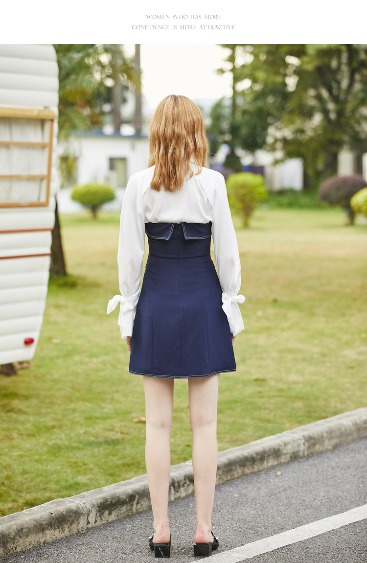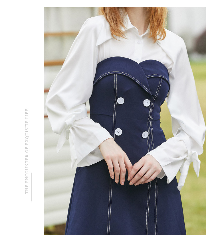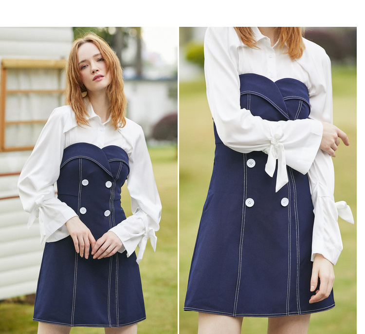 欧芮儿衬衫连衣裙2019新款春装新款长袖西装领两件套套装裙中长款