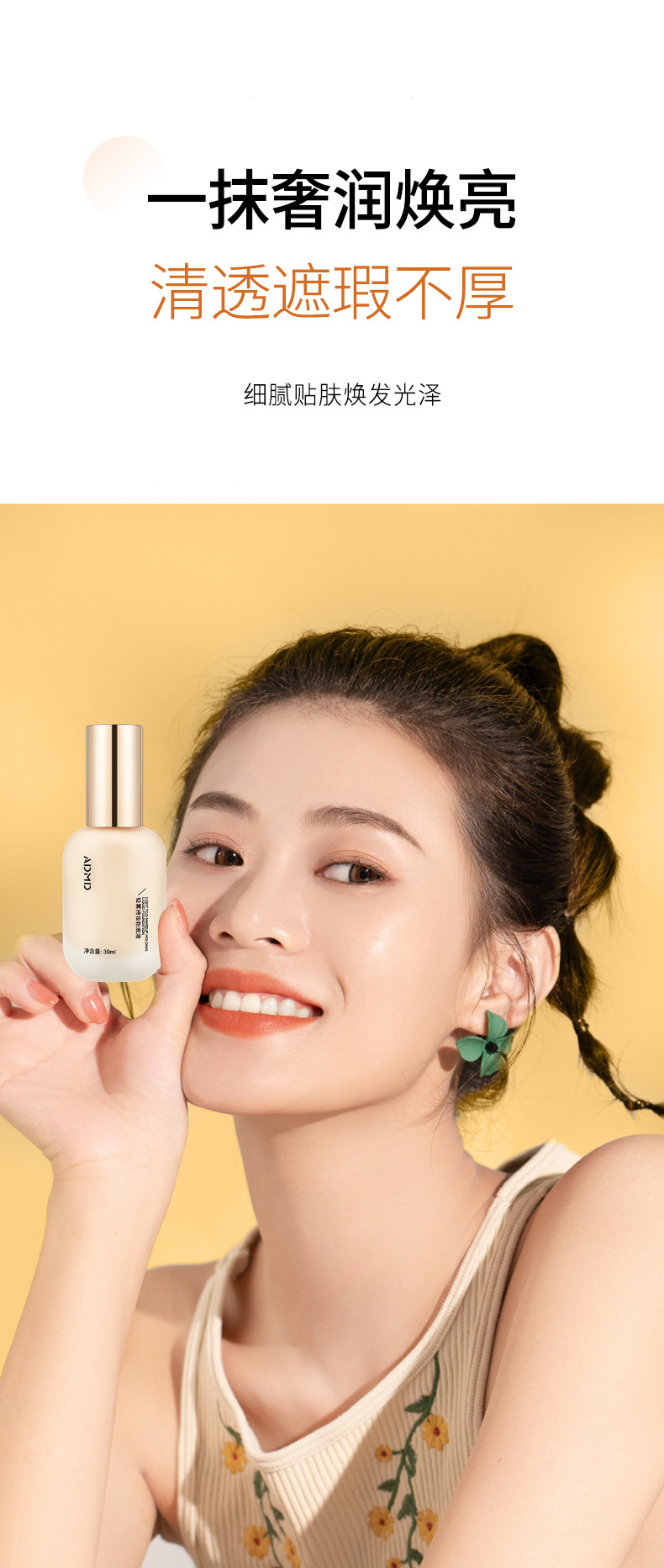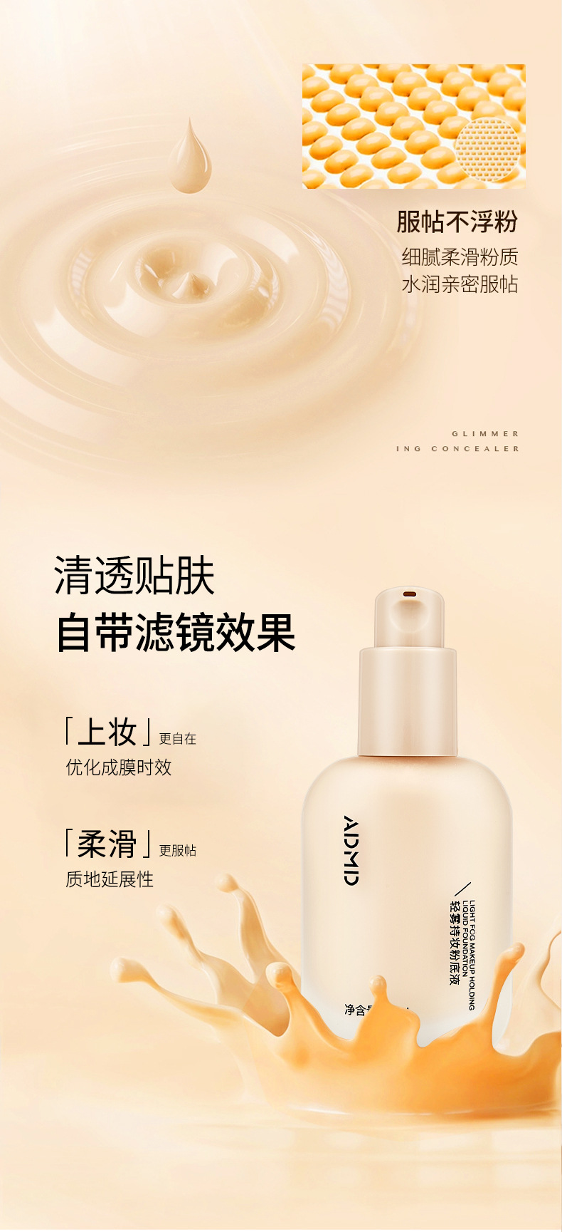 「拍1发2!两色可选」ADMD粉底液轻雾持妆妆前打底薄遮瑕卡粉提亮肤色BB霜美妆