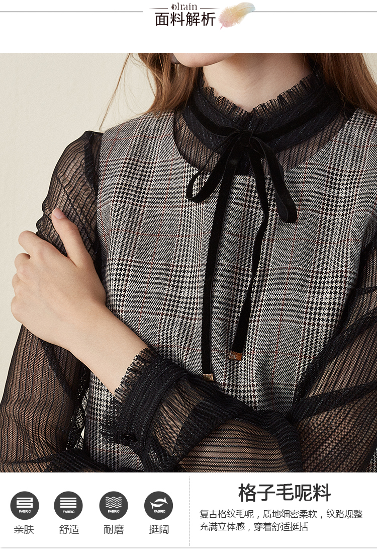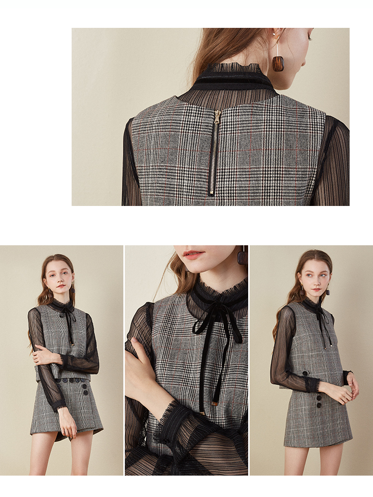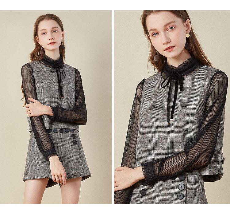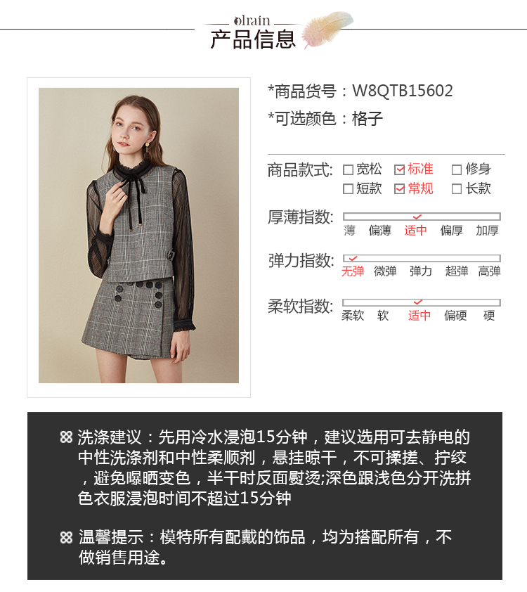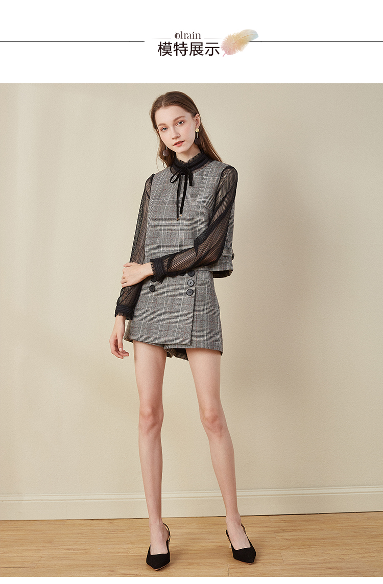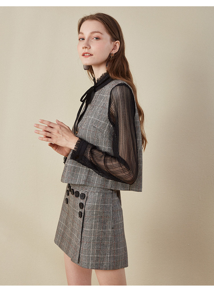 欧芮儿2018秋装新款女无袖马甲外套+格子半身裙女试试套装裙