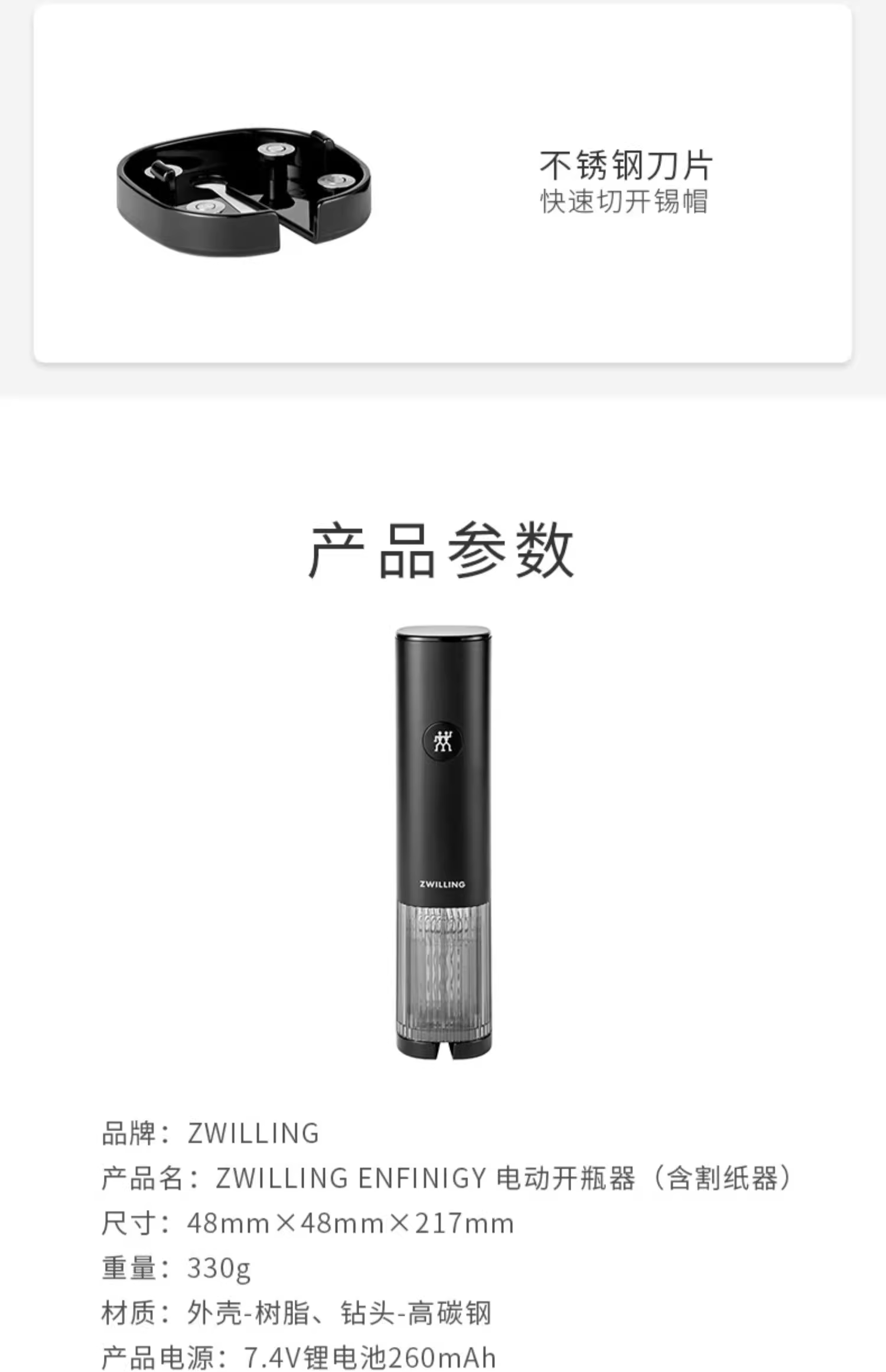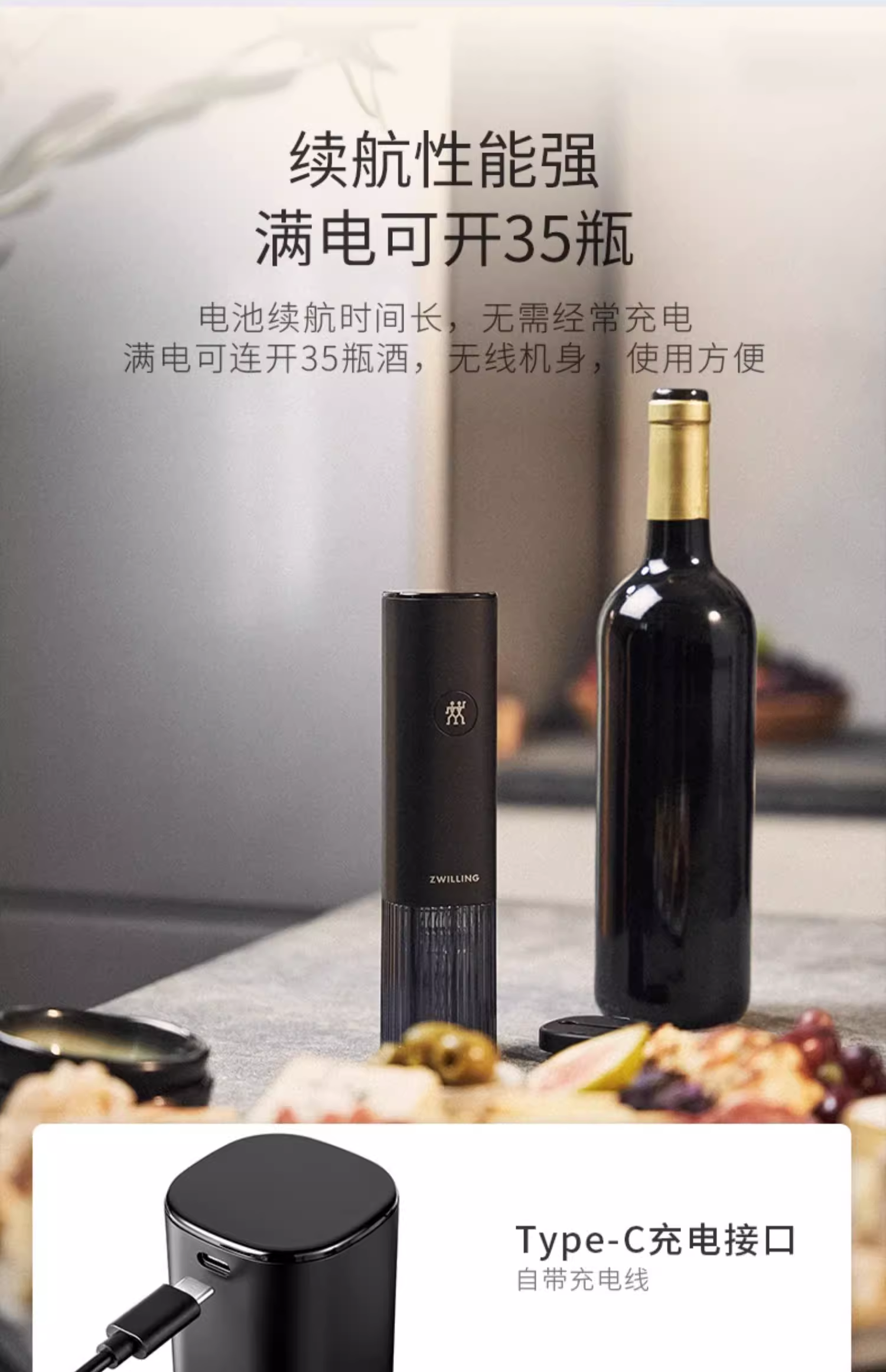 【柏联B1】双立人全自动家用电动红酒开瓶器葡萄酒启瓶器(新品充电款)(满2000元包邮)