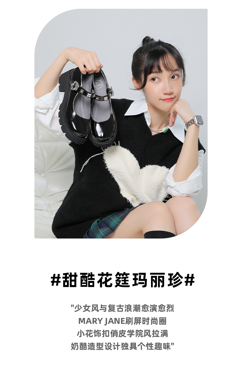Safiya/索菲娅玛丽珍鞋女2022早秋复古学院风可爱小花饰扣jk女鞋 SF23111404 商品图2