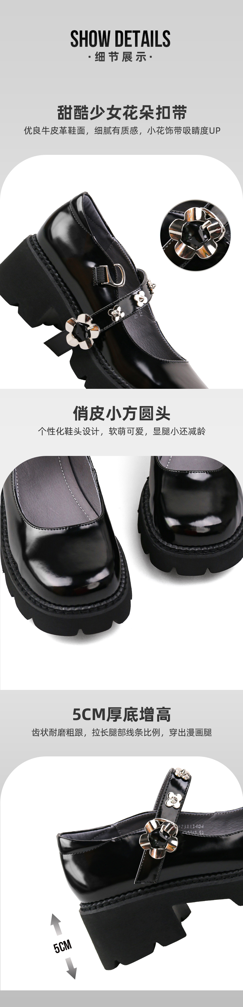 Safiya/索菲娅玛丽珍鞋女2022早秋复古学院风可爱小花饰扣jk女鞋 SF23111404 商品图3