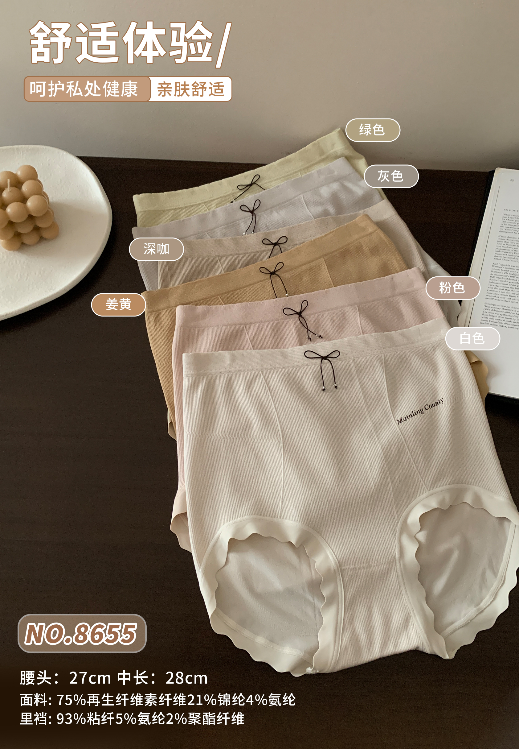 女士高腰蝴蝶结内裤抗菌裆收腹提臀亲肤舒适透气三角裤8655