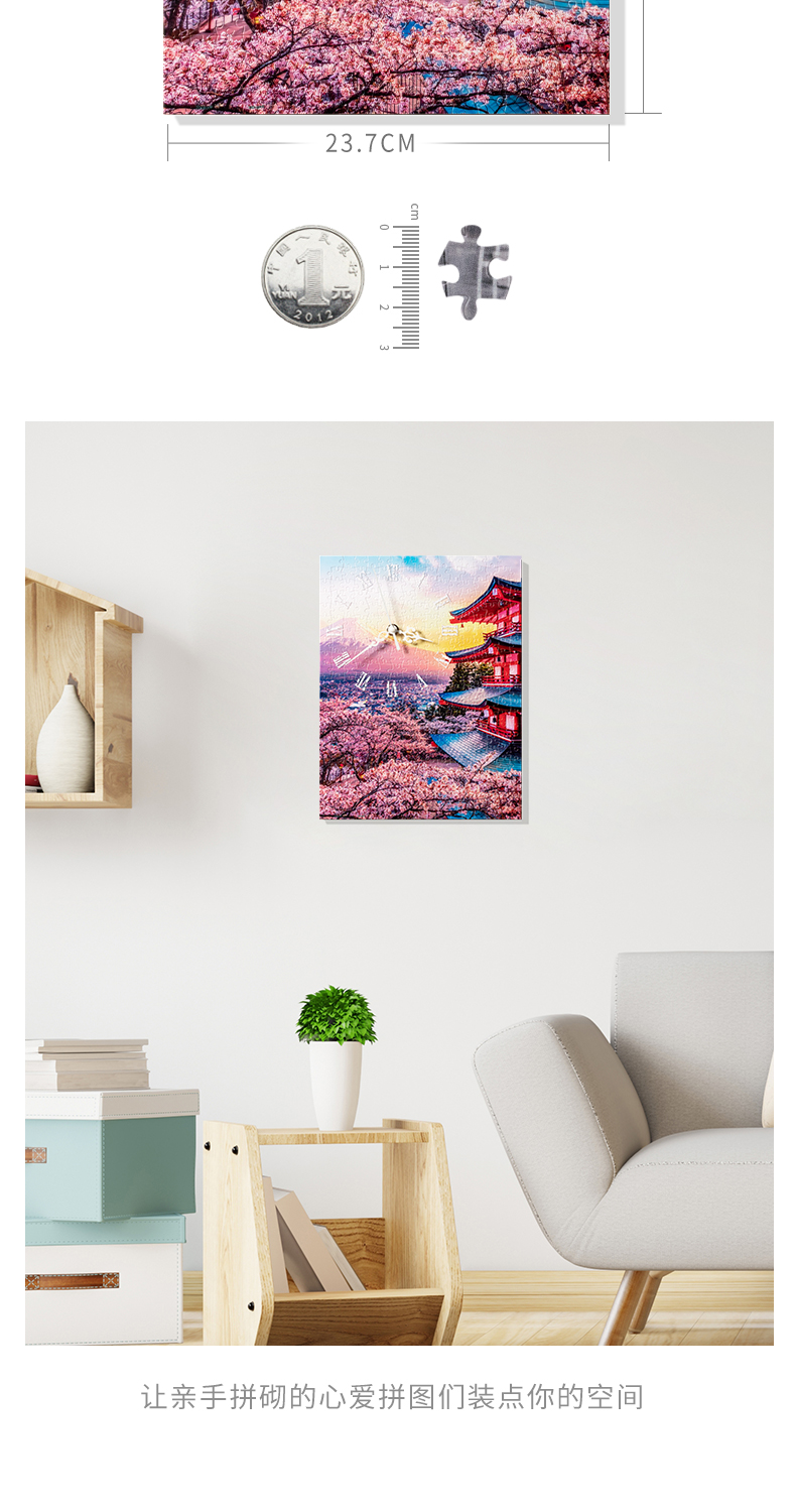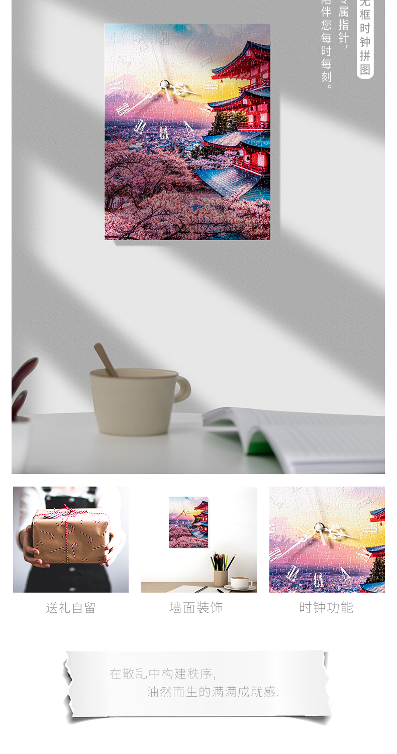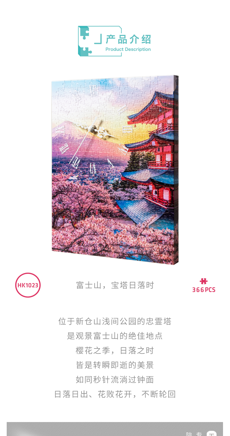 366片无框时钟拼图 平面拼图 HK1023 富士山, 宝塔日落时
