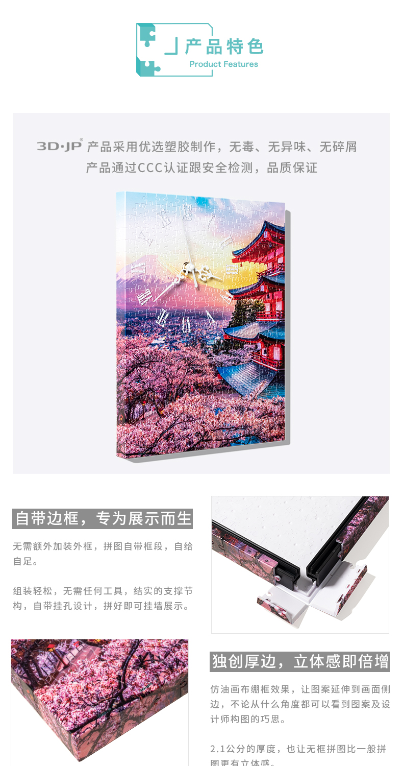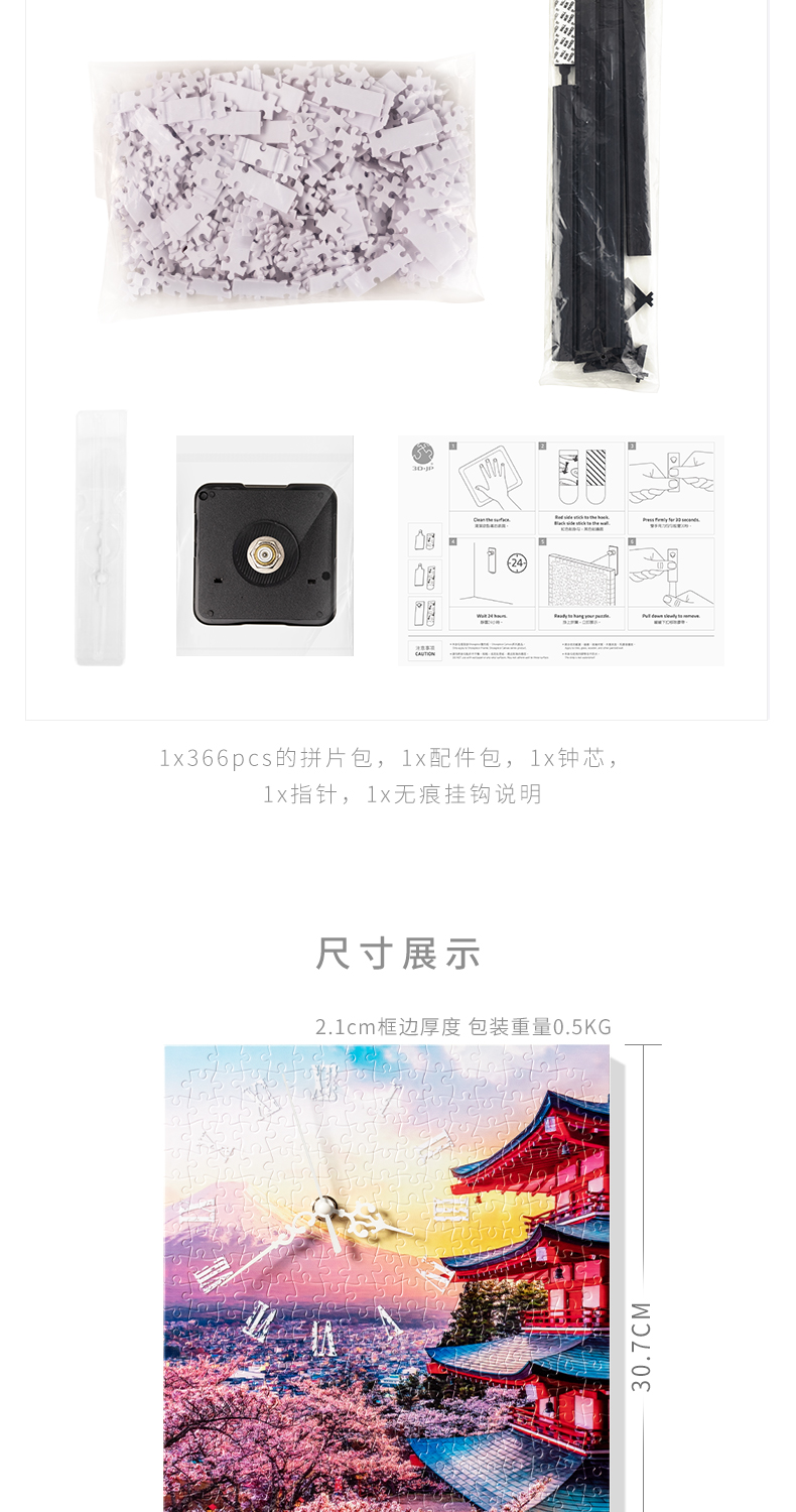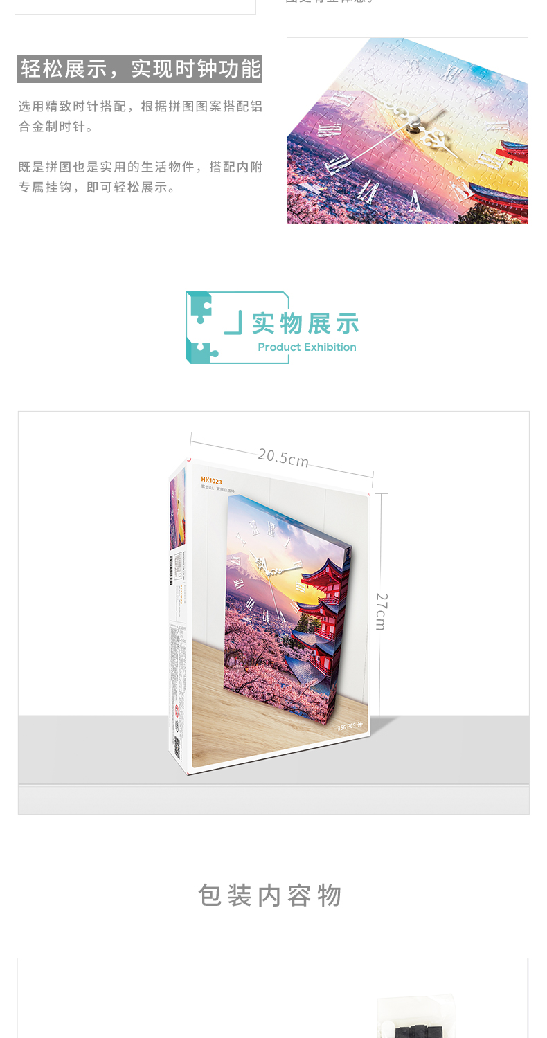 366片无框时钟拼图 平面拼图 HK1023 富士山, 宝塔日落时