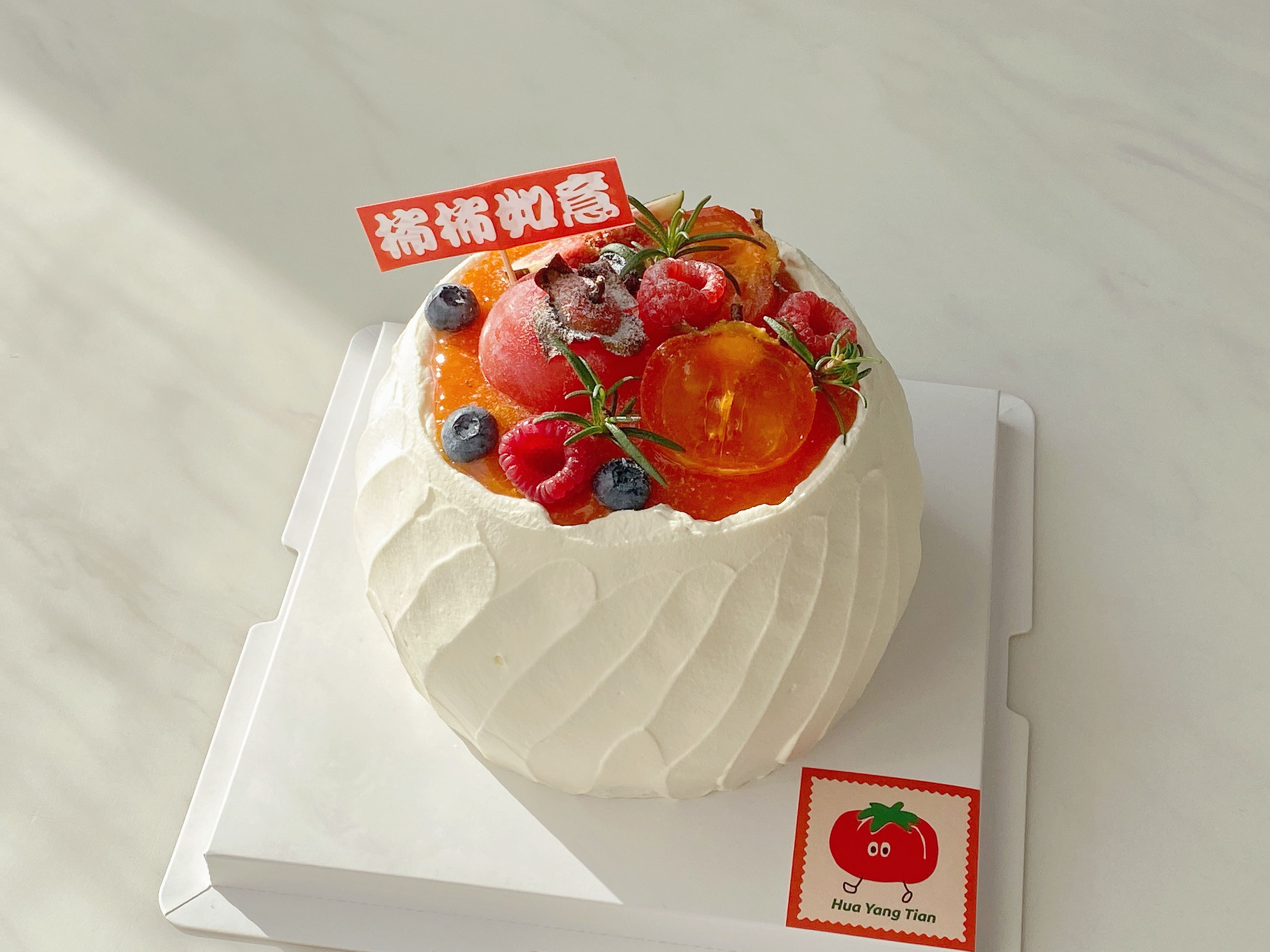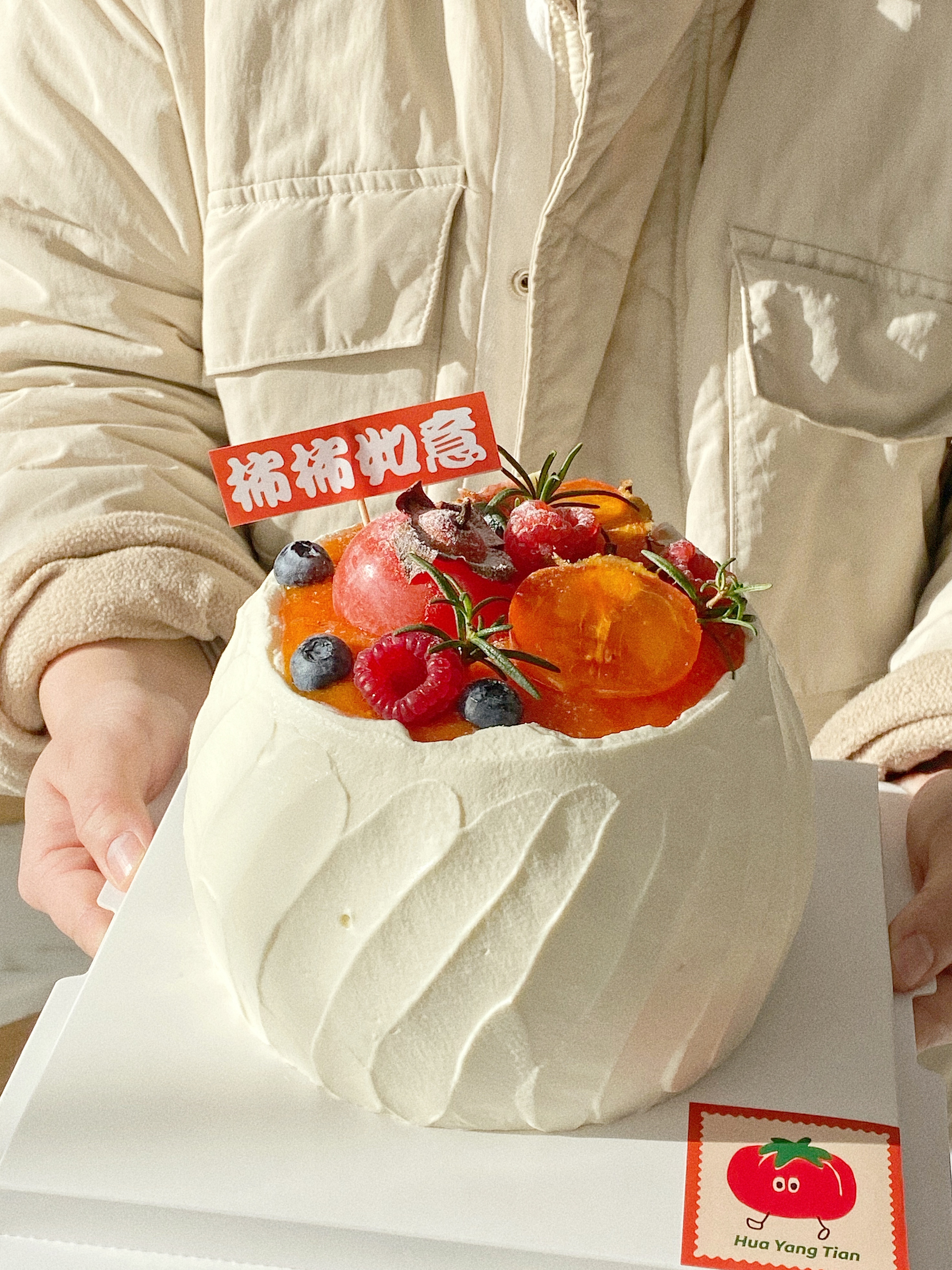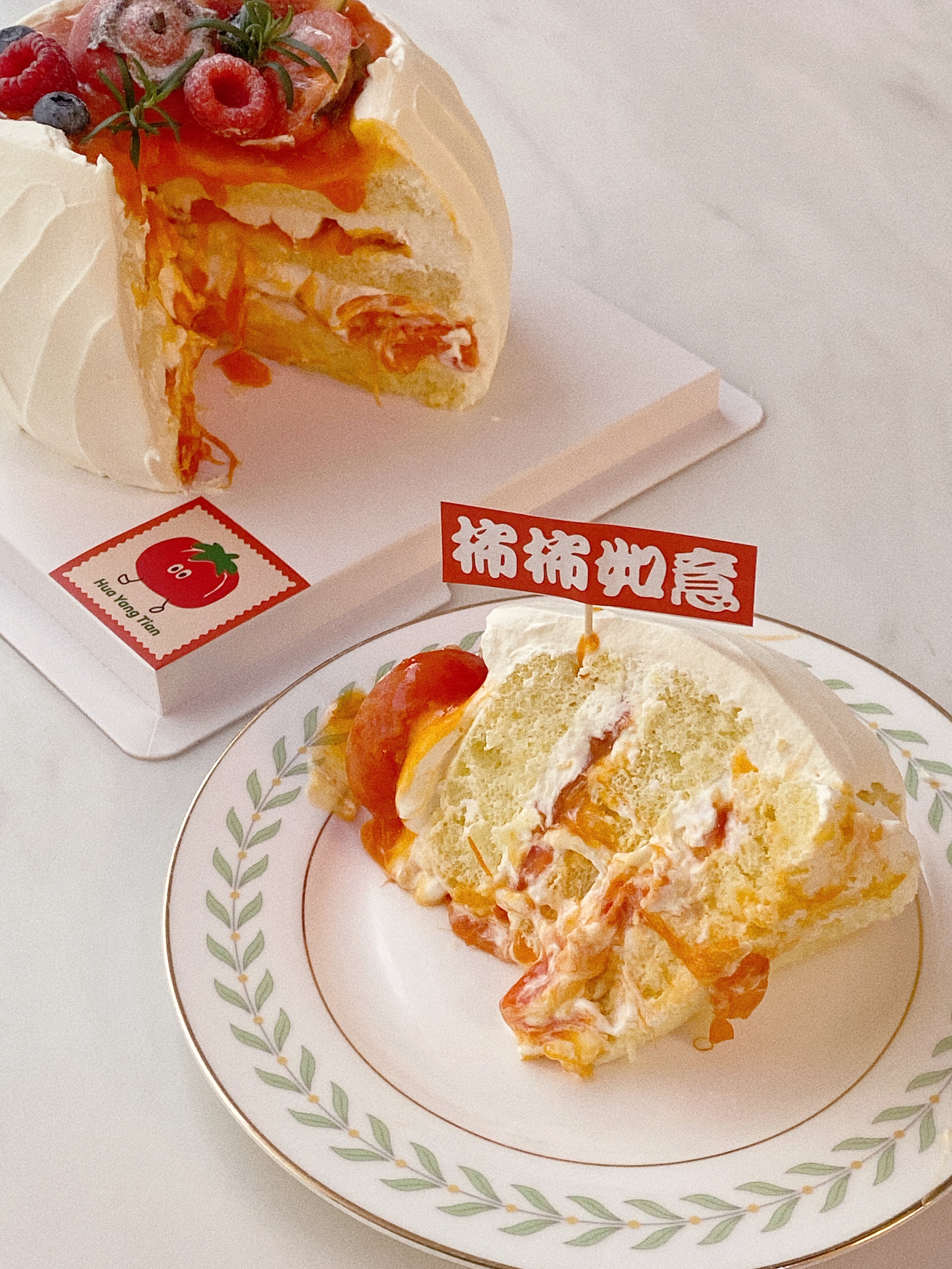 *此款蛋糕含丰富的柿子鲜果肉,果胶纤维含量丰富,会有一定的润肠功效,肠胃功能弱的客人,建议谨慎食用此款。