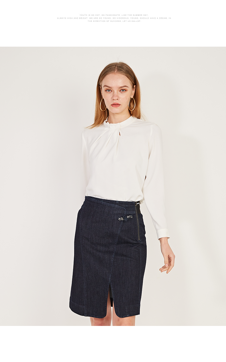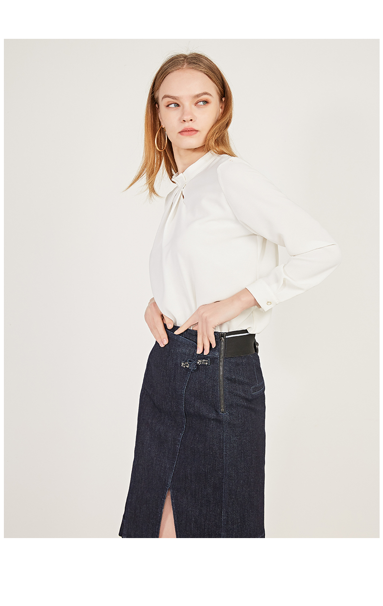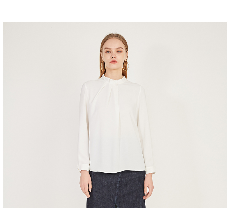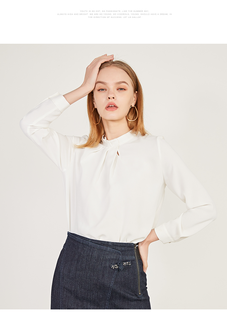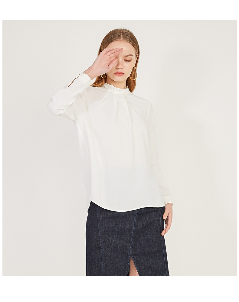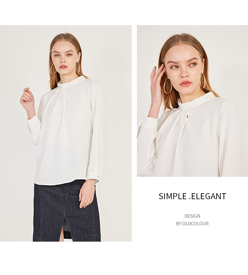 oldcolour春季新款纯色设计感领子雪纺套头长袖衬衫女N11013149