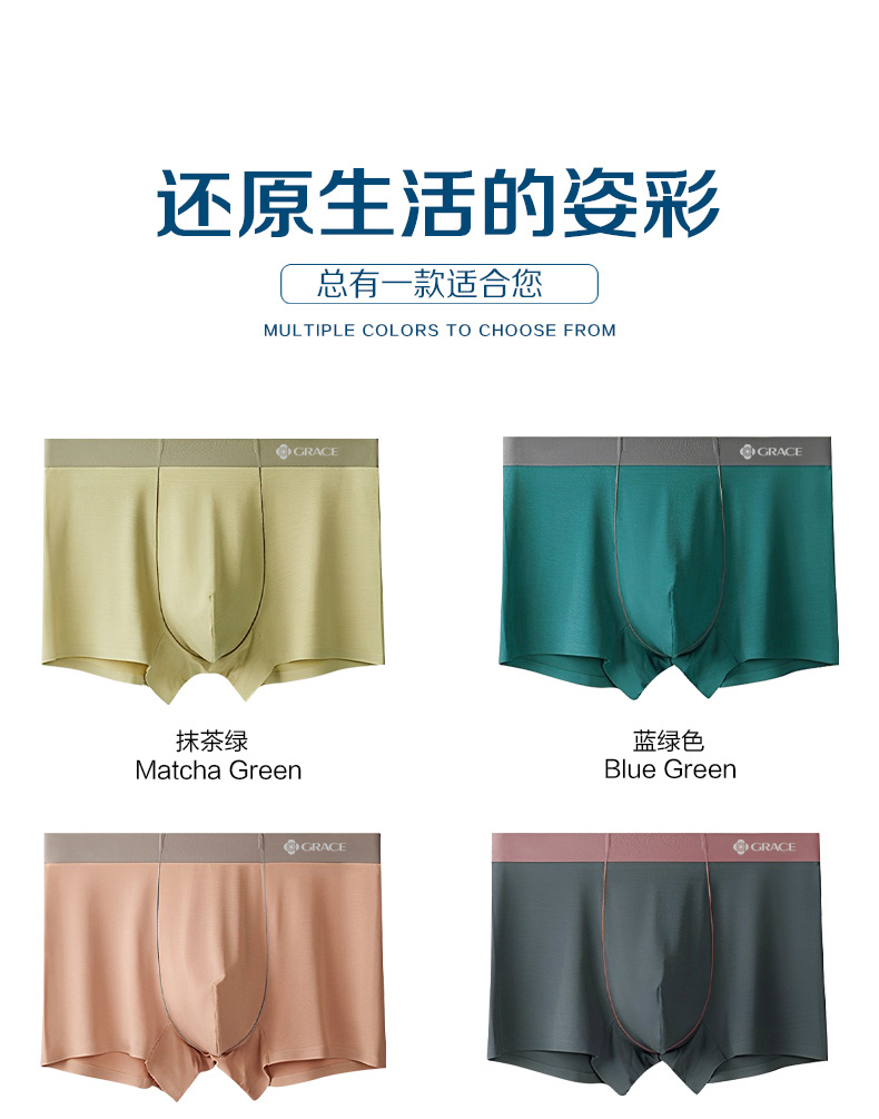 洁丽雅3条装中腰男士内裤舒适透气石墨烯抑菌内裆裸感平角裤