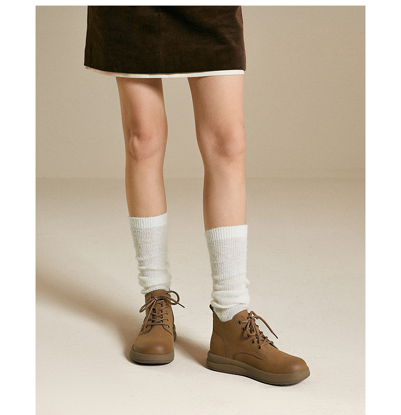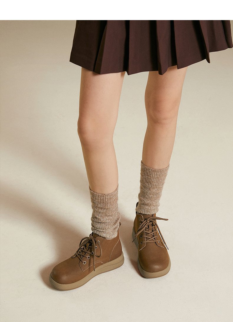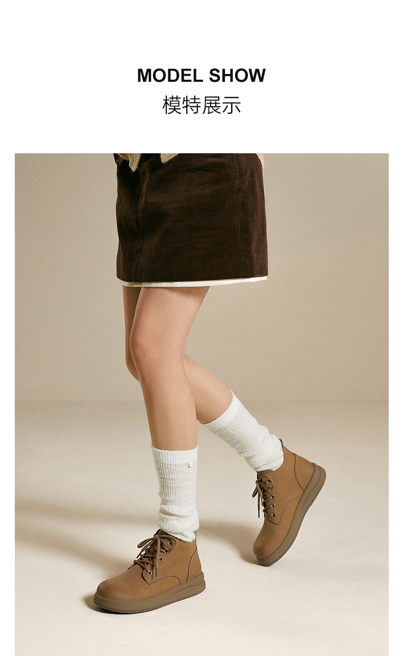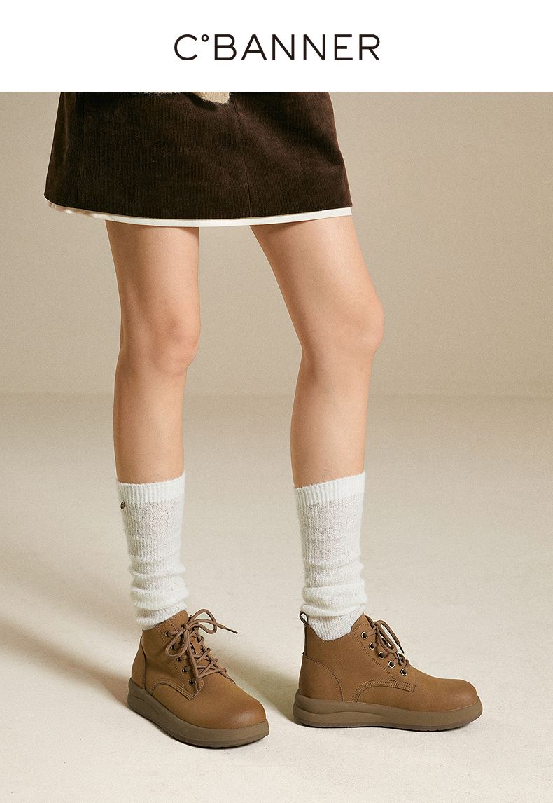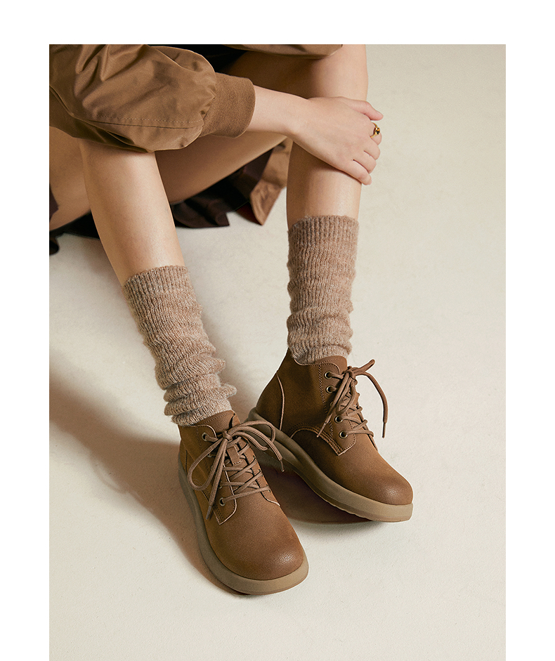 千百度复古马丁靴女款秋冬新款厚底美拉德增高短靴A25513107